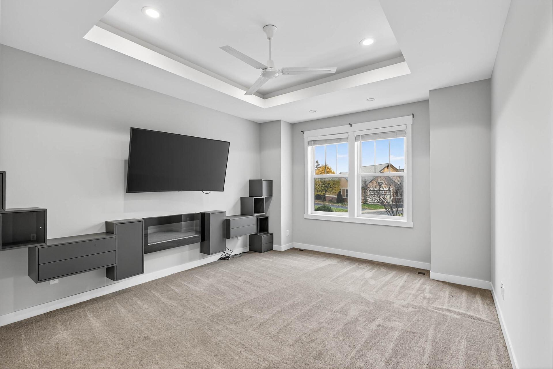 Welcome to this beautifully designed home offering effortless one-level living in the sought-after Cobblestone Lake community. As you step through the front door, you're greeted by an impressive great room with soaring ceilings and expansive windows that flood the space with natural light. The open-concept design flows gracefully into the dining area and a stunning kitchen showcasing built-in stainless steel appliances, quartz countertops, and timeless finishes that combine style and functionality. Also on the main level, enjoy the inviting sunroom with paneled walls-perfect for relaxing with a book or morning coffee. The spacious primary suite offers a walk-in closet with custom organizers, a luxurious soaking tub, and a separate shower. Step out to the back patio for a quiet retreat or evening unwind. The lower level extends your living space with two additional bedrooms, a workout room with a new sauna, and plenty of room for guests or hobbies. You'll love the lifestyle that Cobblestone Lake offers, walking trails, many parks and playgrounds, access to a 36-acre lake with a fishing dock, private community pool. Be within walking distance to Target, restaurants, coffee shops etc.