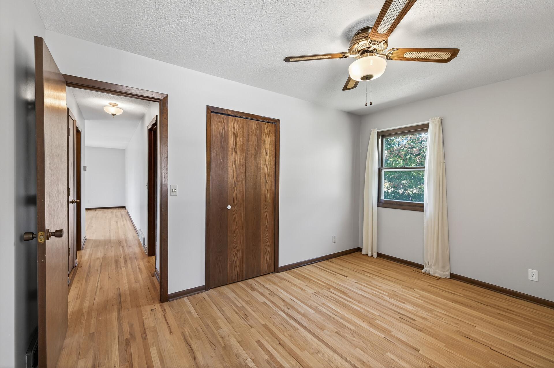 Step inside this charming walkout rambler, lovingly maintained by the same owner for over 40 years. Sunlight pours through large windows, highlighting the beauty of original hardwood floors and fresh paint throughout. Three inviting bedrooms on the main level create the perfect retreat, while the lower level offers cozy evenings by the gas fireplace on brand-new carpet. Enjoy peaceful mornings on the deck, summer gatherings on the patio, and a spacious backyard framed by mature trees and thoughtful landscaping. With a two-car garage, modern touches, and a true sense of home, this property is ready to welcome its next chapter. This home is conveniently located near Happy Acres Park, shopping and restaurants. Schedule your showing today!