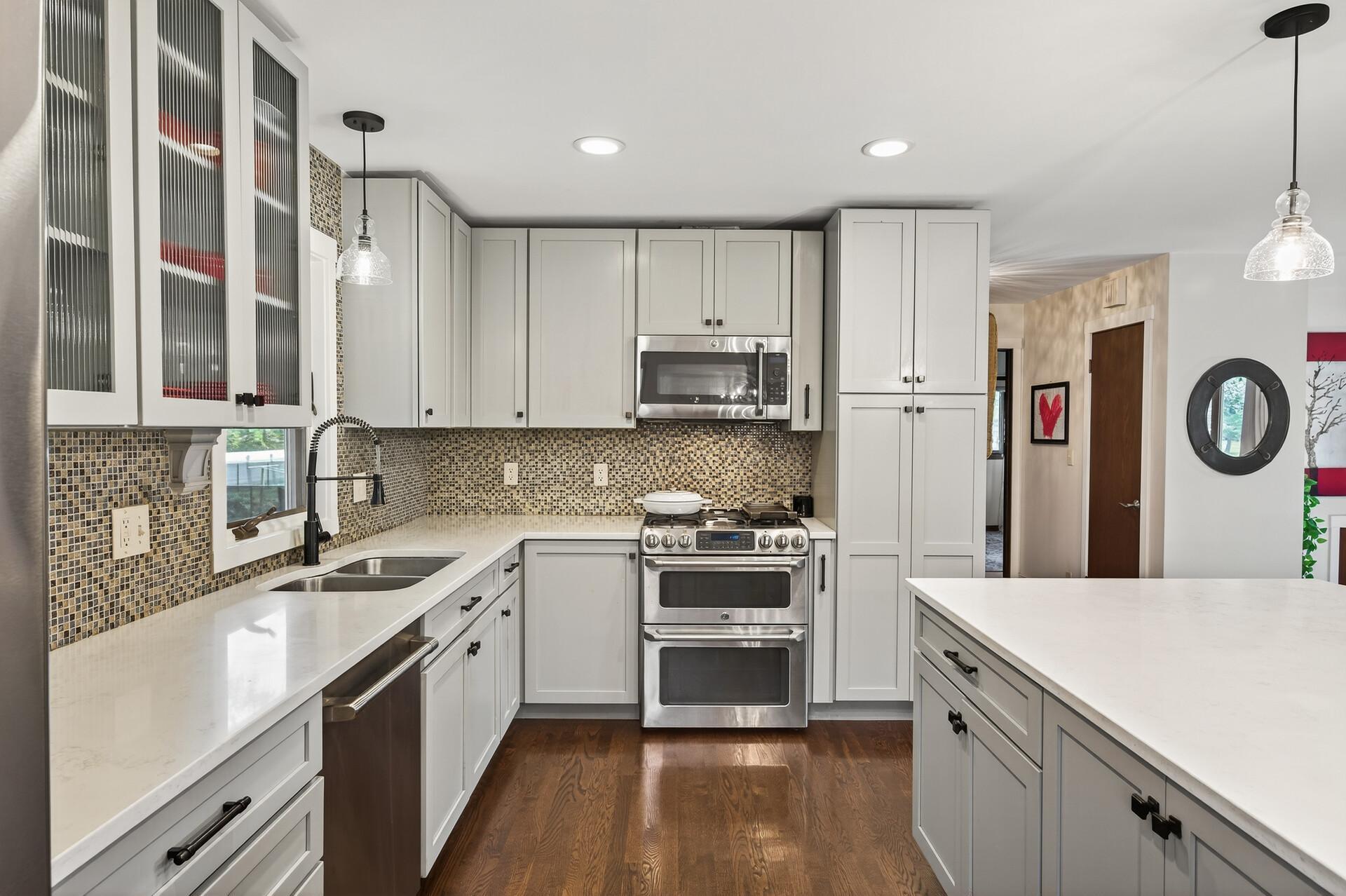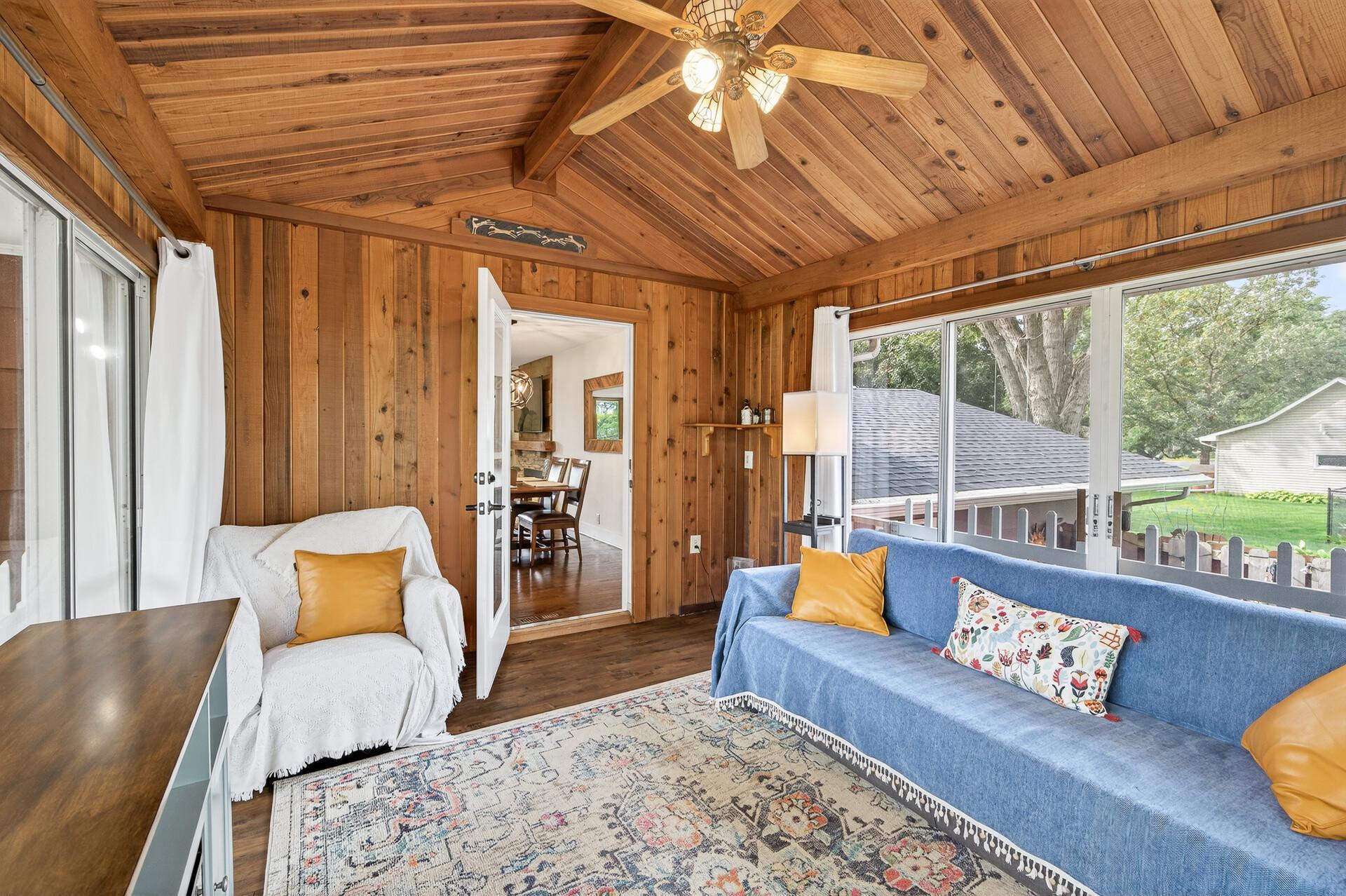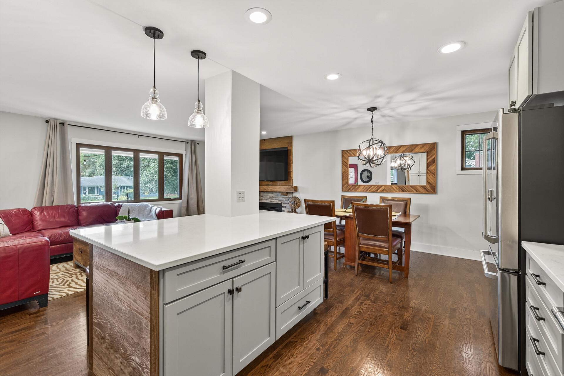 Welcome to your own slice of paradise! Nestled on a quiet, tree-lined street just minutes from schools, this beautifully updated and meticulously maintained home is filled with charm! You will love the remodeled kitchen featuring quartz countertops and eating bar, stunning backsplash, upgraded cabinets and top of the line stainless steel appliances. Fresh paint, gleaming hardwood floors and new carpet on the stairs make this home move-in ready! The cozy living room offers a brick hearth fireplace and lovely windows that frame peaceful views to the outdoors! Curl up with a good book or just watch the seasons change from the 3- season porch with floor-to-ceiling surround windows, this will be your favorite spot to relax! The lower-level family room with its own fireplace offers even more space to hang out. Wonderful laundry/mud room with new flooring, utility sink and lots of storage! Outdoor living shines here with so many options – grill on the deck, entertain under the pergola or gather around the firepit to stargaze! Plenty of room for your Thanksgiving day flag football game or host a fierce game of neighborhood tag! Raised garden beds, a storage shed and a half acre of gorgeous landscape complete this amazing property! New roof in 2024! All this in a prime Eden Prairie location near shopping, restaurants and entertainment!