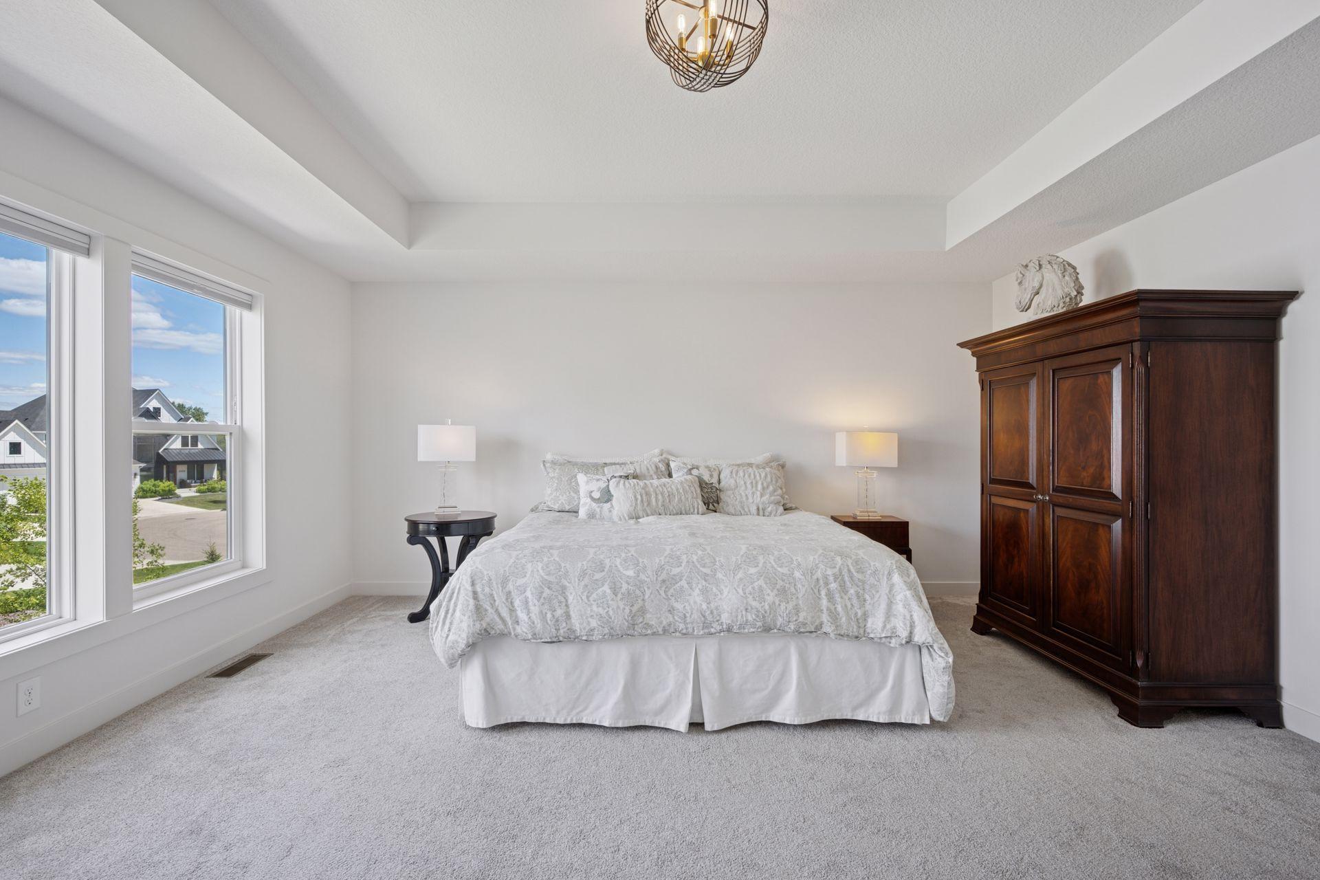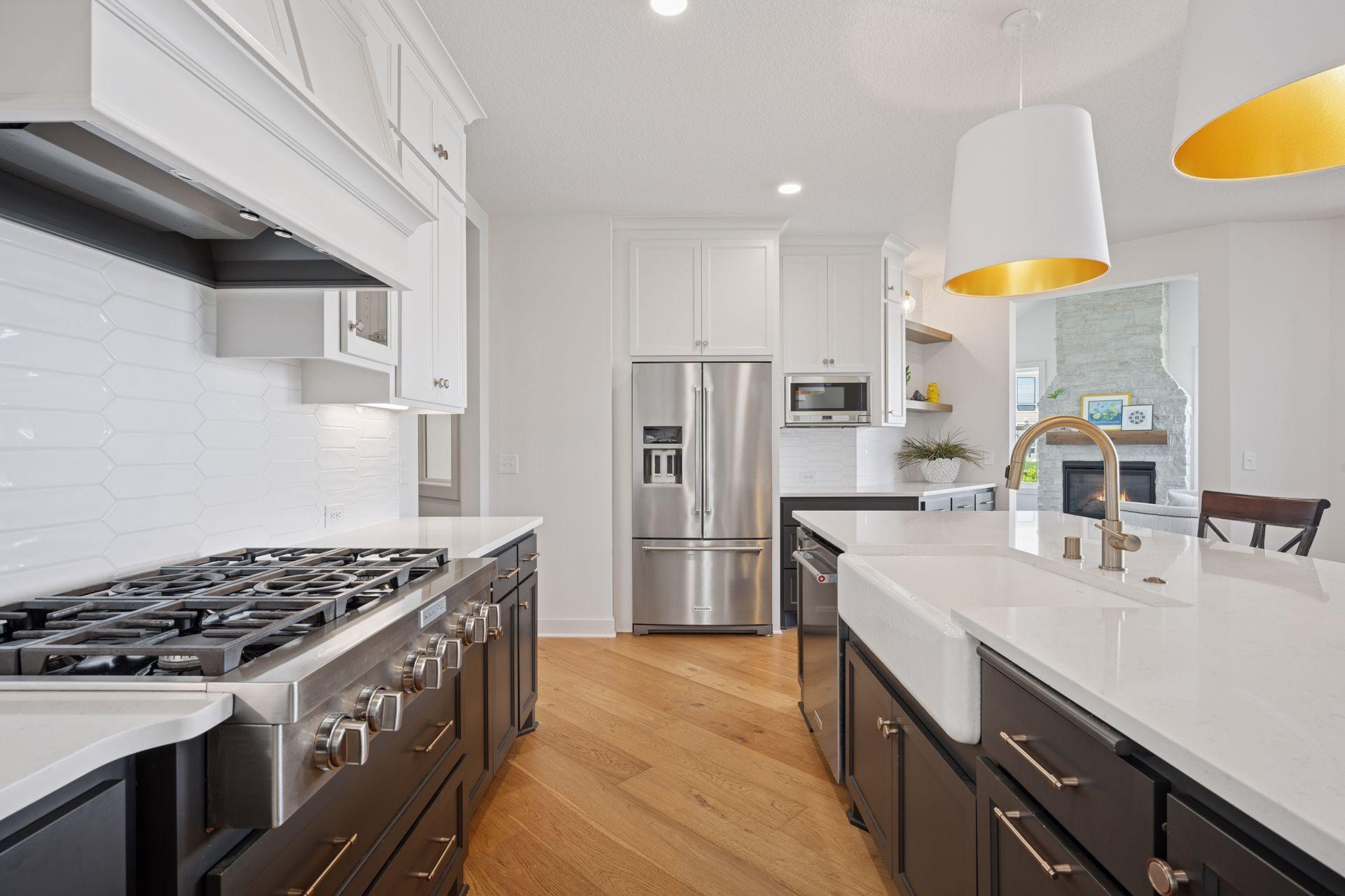 Exceptional home located in The Ridge at Elm Creek. This truly impressive Hanson custom built home has all the amenities you would expect from this custom builder and offers an open and spacious layout with an abundance of natural light. Well-appointed spaces with great attention to detail and high end finishes throughout. The Pennington floor plan features 5 spacious bedrooms, 5 baths and a 3-car garage with 5,344 finished sq ft. The main level is designed for both entertaining and comfortable living, featuring front porch, a private office, large mudroom with built in bench, open foyer, formal dining room, sunroom with floor to ceiling stone fireplace, maintenance free deck that walks out to back patio. At the heart of the home, the gourmet kitchen impresses with custom cabinetry, huge center island, walk in pantry, and spacious dining that flows perfectly into the sun-drenched living room with a stunning fireplace and built ins. Upstairs discover four generously sized bedrooms and three bathrooms. The primary bedroom offers a large walk-in closet and a luxurious bathroom with separate tub and walk-in shower. A full laundry room rounds out this great space. The lower level is perfect for entertaining or relaxing and overlooks a spacious backyard. Expansive lower level features a large family room with fireplace, game room, wet bar, exercise space, 2-story indoor sport court, 5th bedroom, and ample storage in the utility room. Don’t miss the community pool, clubhouse & neighborhood playground. Located in the award-winning Wayzata School District. Centrally-located and close to parks, lakes, trails, shopping, and dining. Welcome home.