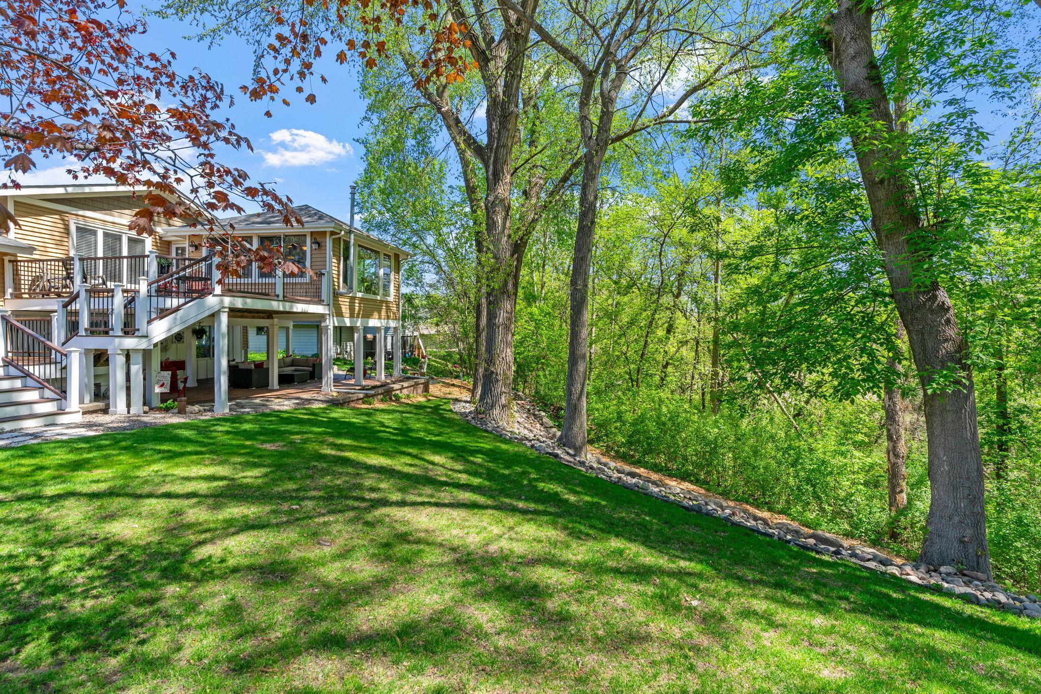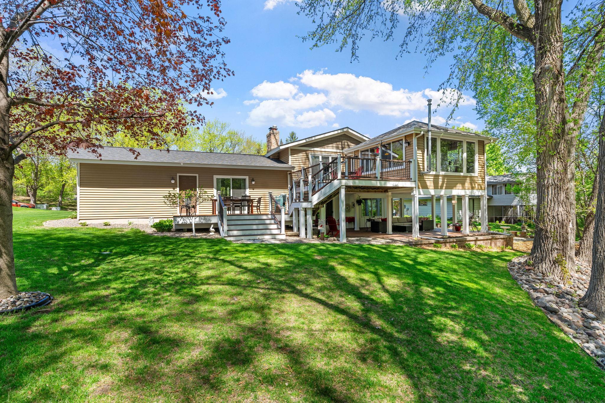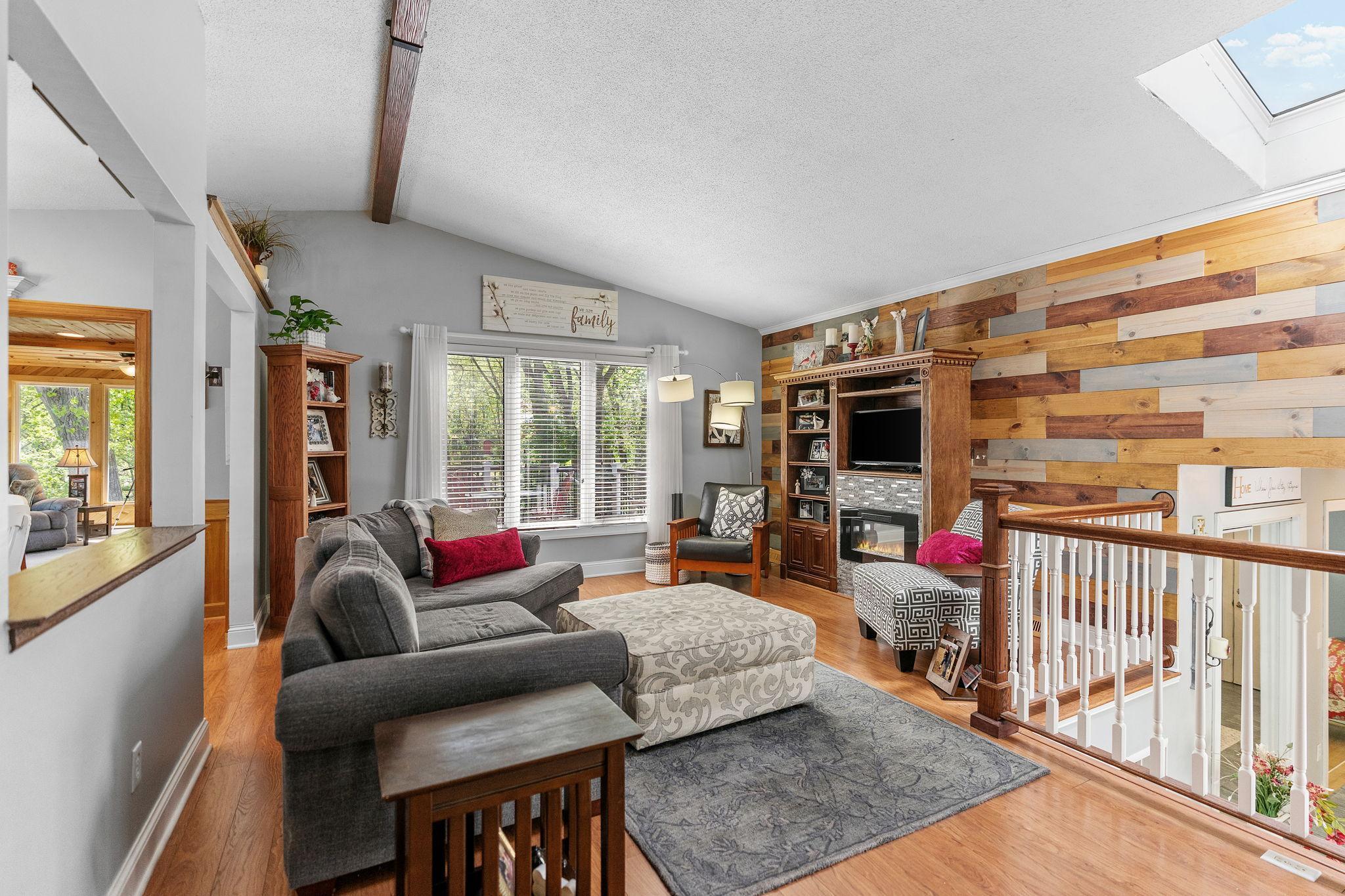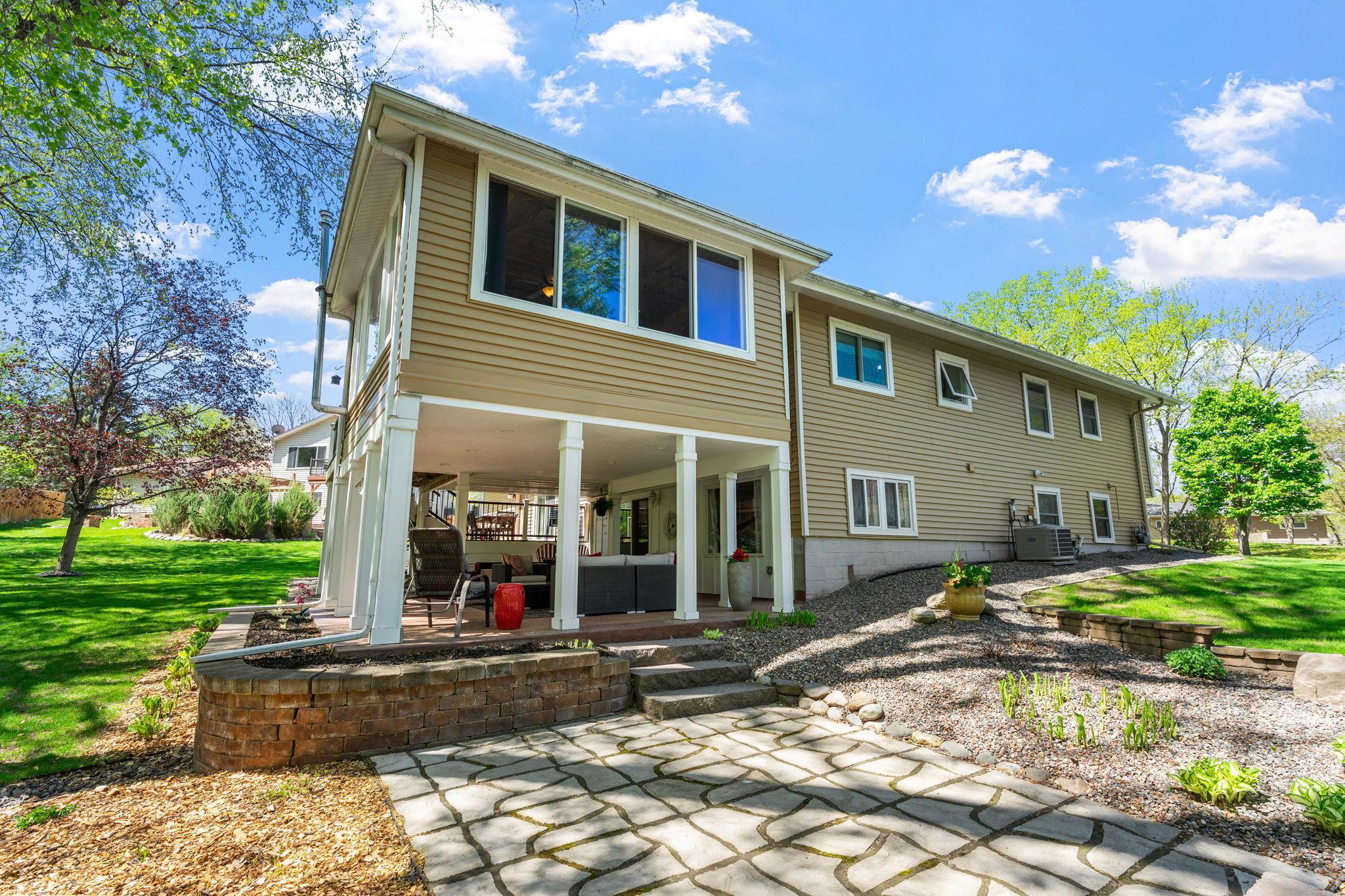 Welcome to this extended split-level home! Walk upstairs to a newly remodeled kitchen with views stretching through the four-season porch and out over acres of serene woods. The upper level features three bedrooms, including a primary suite with en-suite bath. A private office opens directly onto a two-level deck. The spacious 4-stall (2x2) garage comes with epoxy floors, and the basement has been completely remodeled for modern comfort. Watch a movie in the converted movie theater with mounted screen. Lay by either of the two fireplaces. Walk out downstairs to a stamped patio covered by under-decking. Beautifully positioned along the edge of Weaver Lake Knolls Nature Preserve, this home offers rare backyard privacy and daily access to scenic natural beauty.