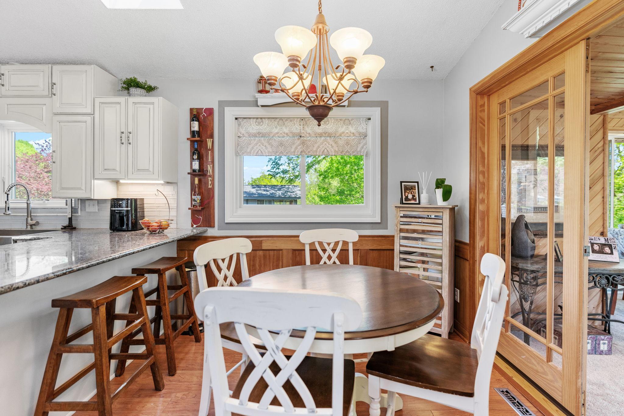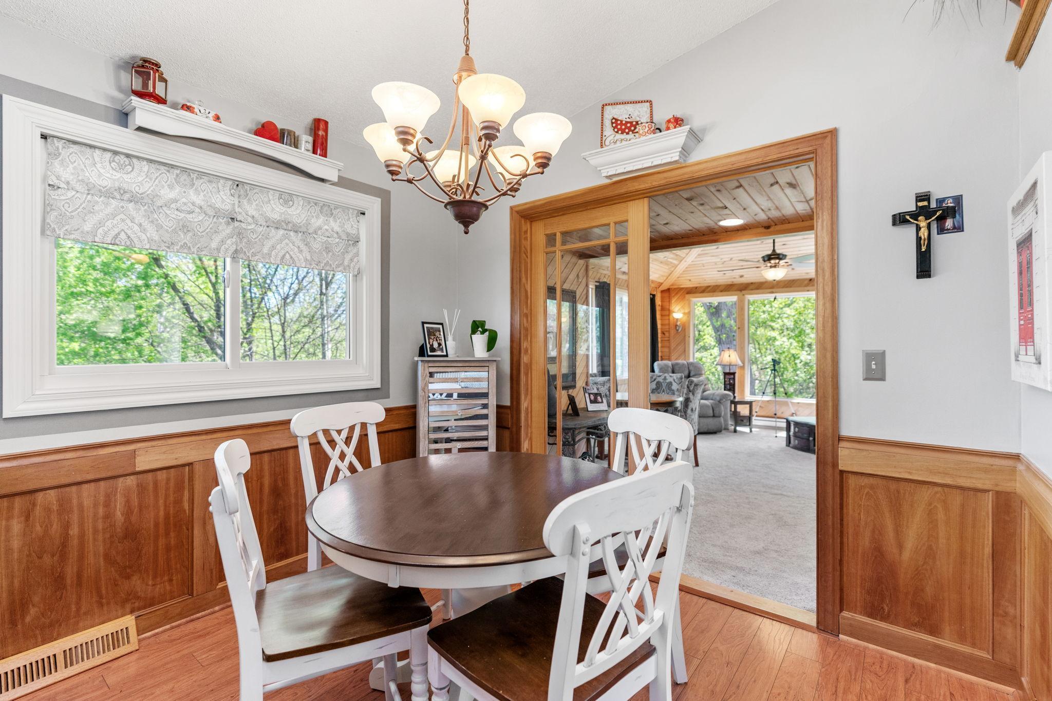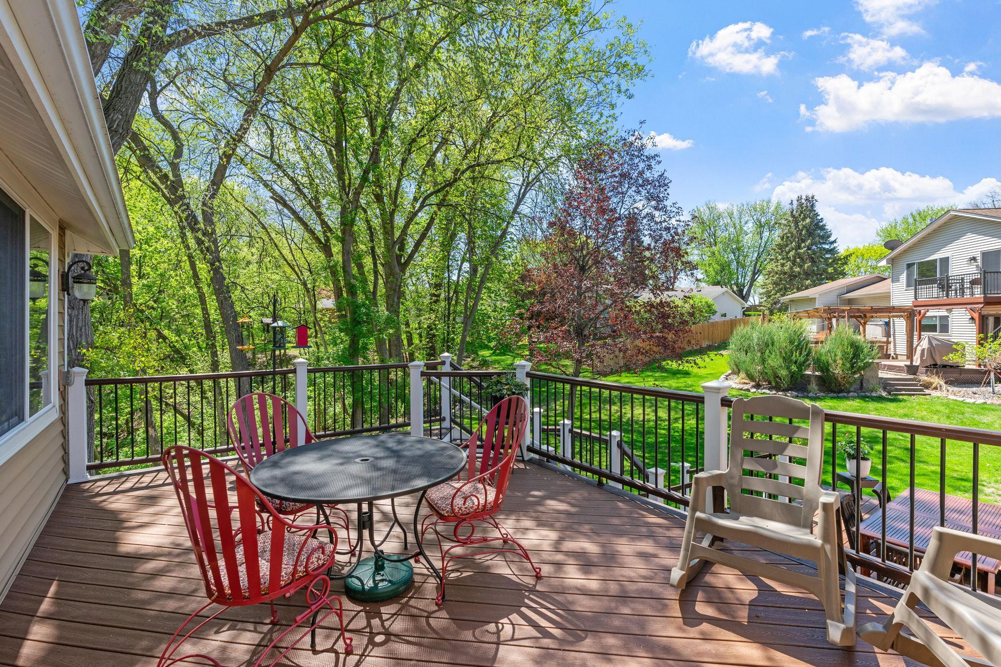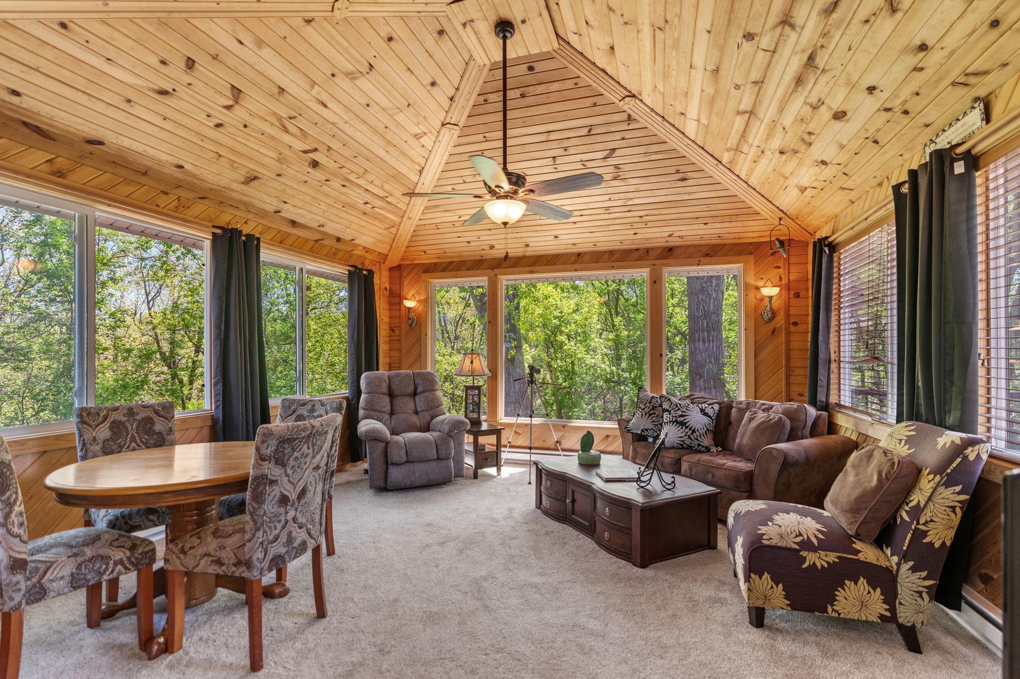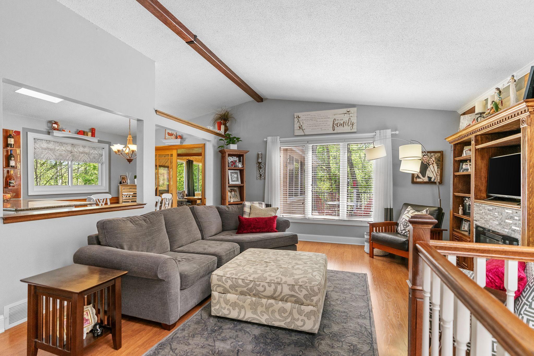 Welcome to this extended split-level home! Walk upstairs to a newly remodeled kitchen with views stretching through the four-season porch and out over acres of serene woods. The upper level features three bedrooms, including a primary suite with en-suite bath. A private office opens directly onto a two-level deck. The spacious 4-stall (2x2) garage comes with epoxy floors, and the basement has been completely remodeled for modern comfort. Watch a movie in the converted movie theater with mounted screen. Lay by either of the two fireplaces. Walk out downstairs to a stamped patio covered by under-decking. Beautifully positioned along the edge of Weaver Lake Knolls Nature Preserve, this home offers rare backyard privacy and daily access to scenic natural beauty.