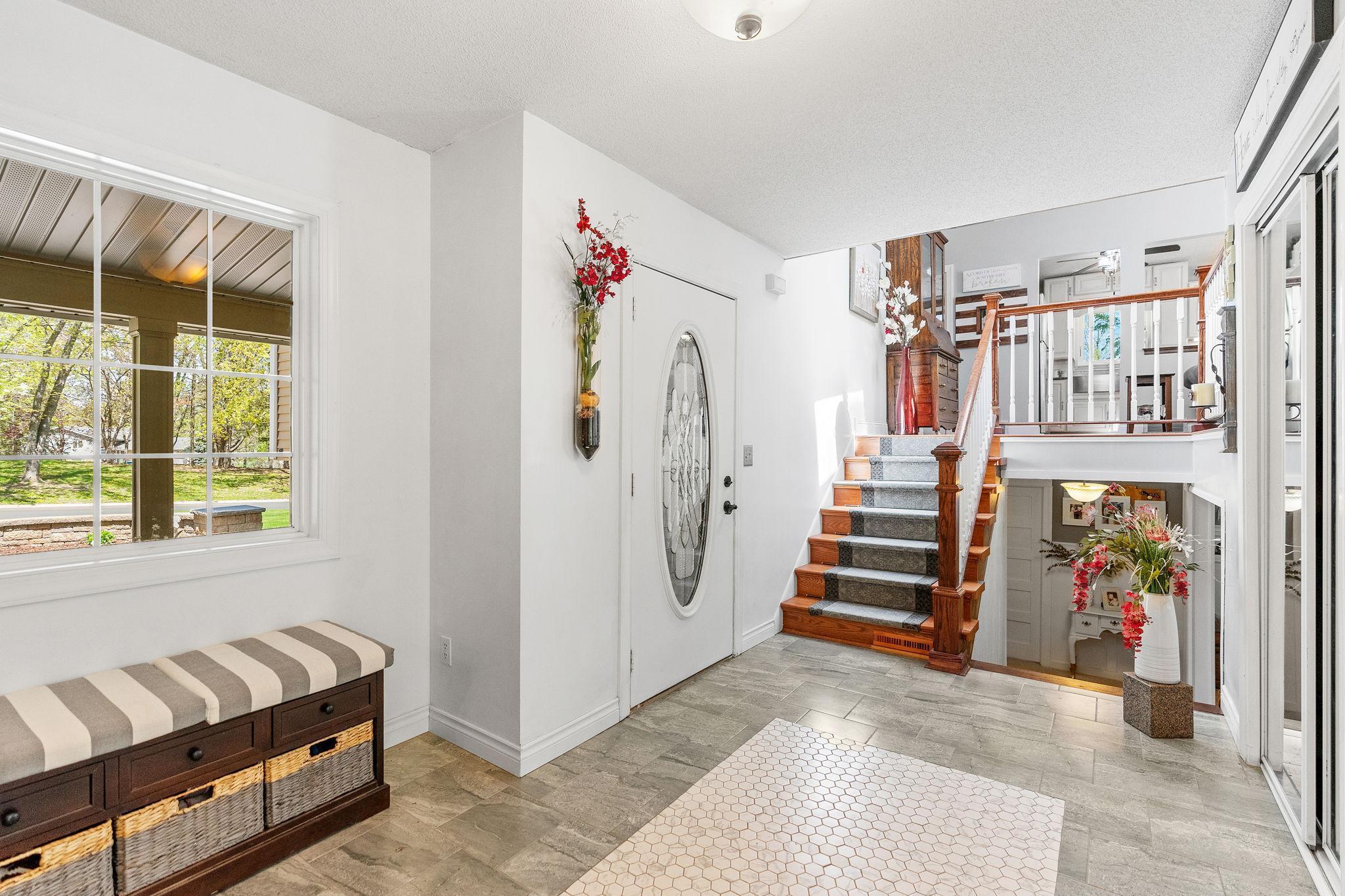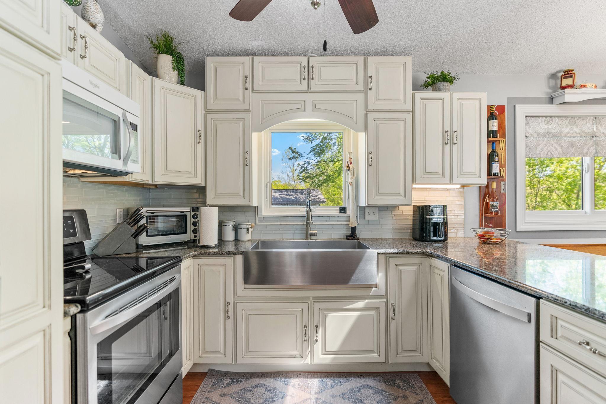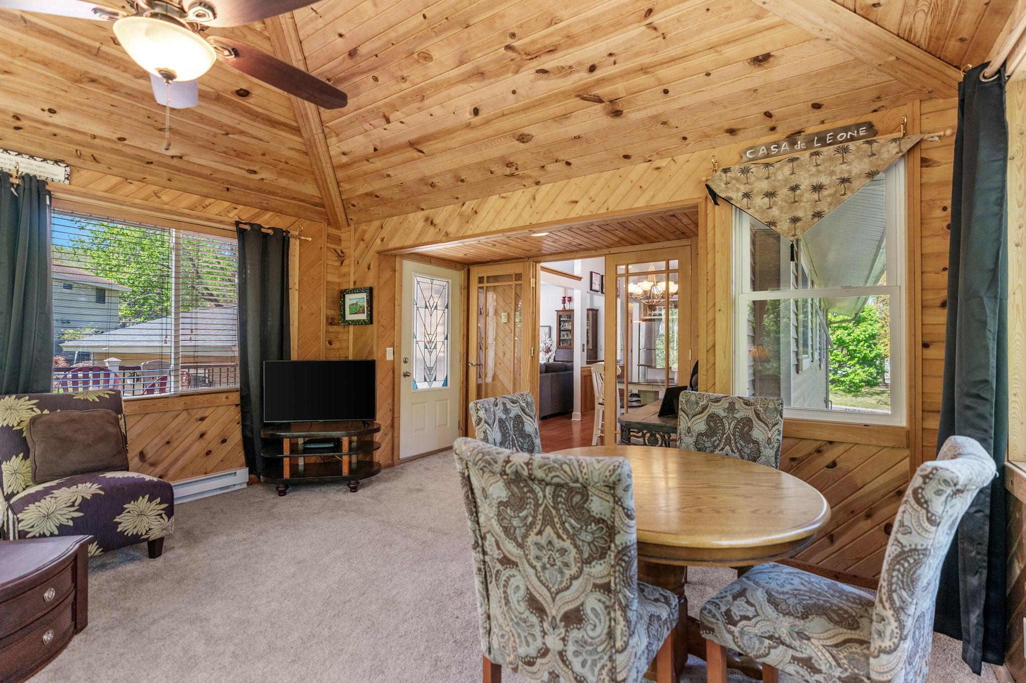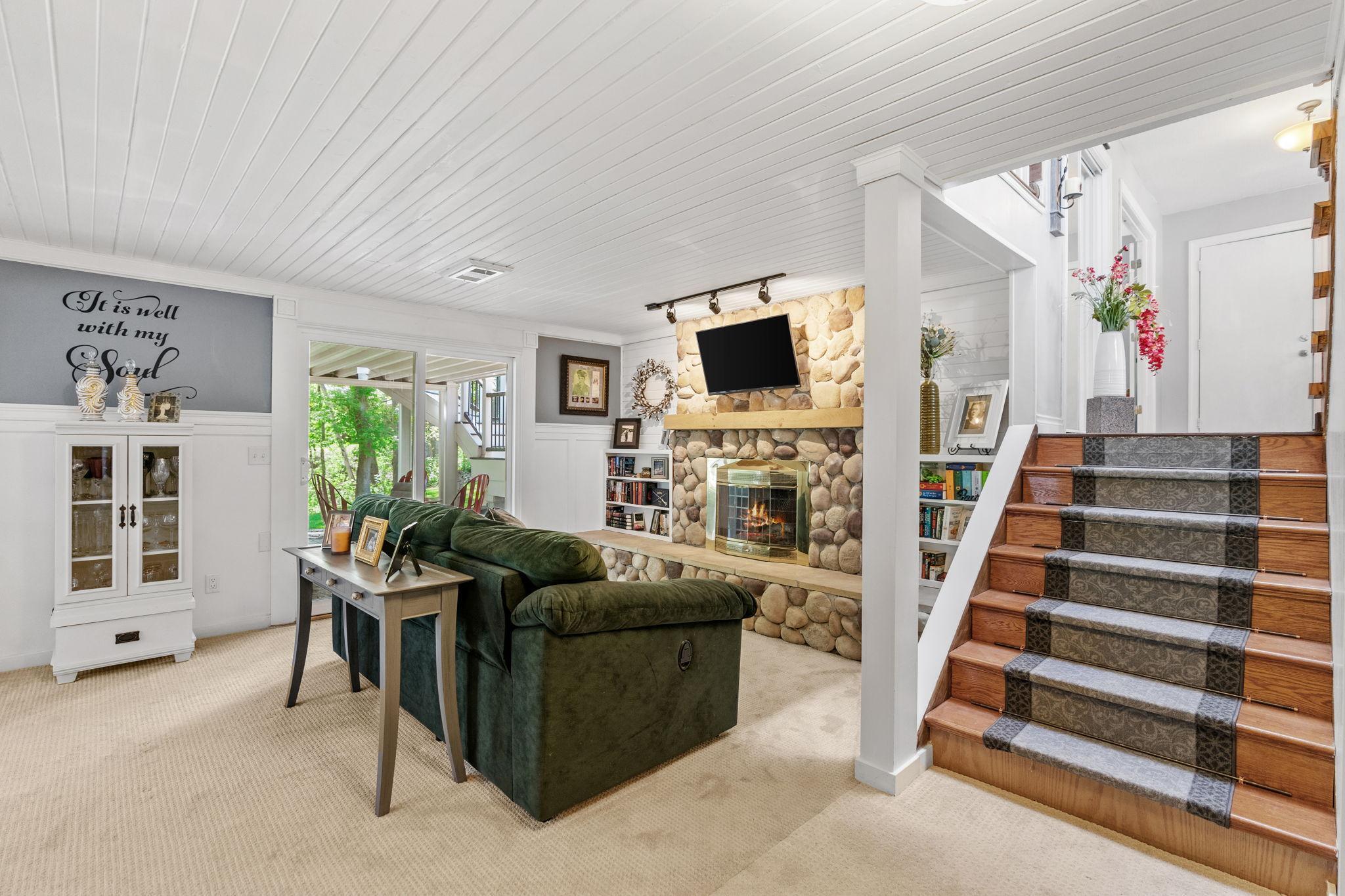 Welcome to this extended split-level home! Walk upstairs to a newly remodeled kitchen with views stretching through the four-season porch and out over acres of serene woods. The upper level features three bedrooms, including a primary suite with en-suite bath. A private office opens directly onto a two-level deck. The spacious 4-stall (2x2) garage comes with epoxy floors, and the basement has been completely remodeled for modern comfort. Watch a movie in the converted movie theater with mounted screen. Lay by either of the two fireplaces. Walk out downstairs to a stamped patio covered by under-decking. Beautifully positioned along the edge of Weaver Lake Knolls Nature Preserve, this home offers rare backyard privacy and daily access to scenic natural beauty.
