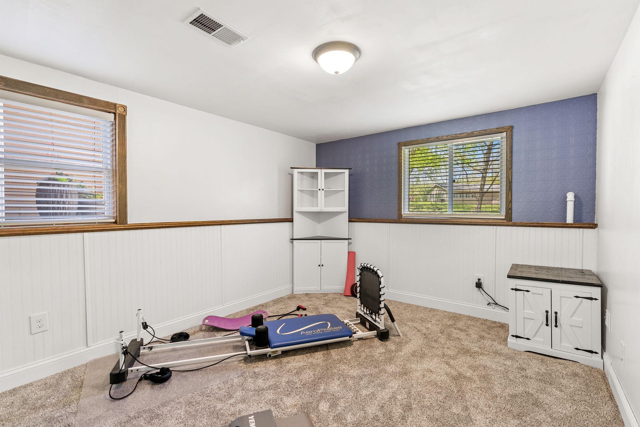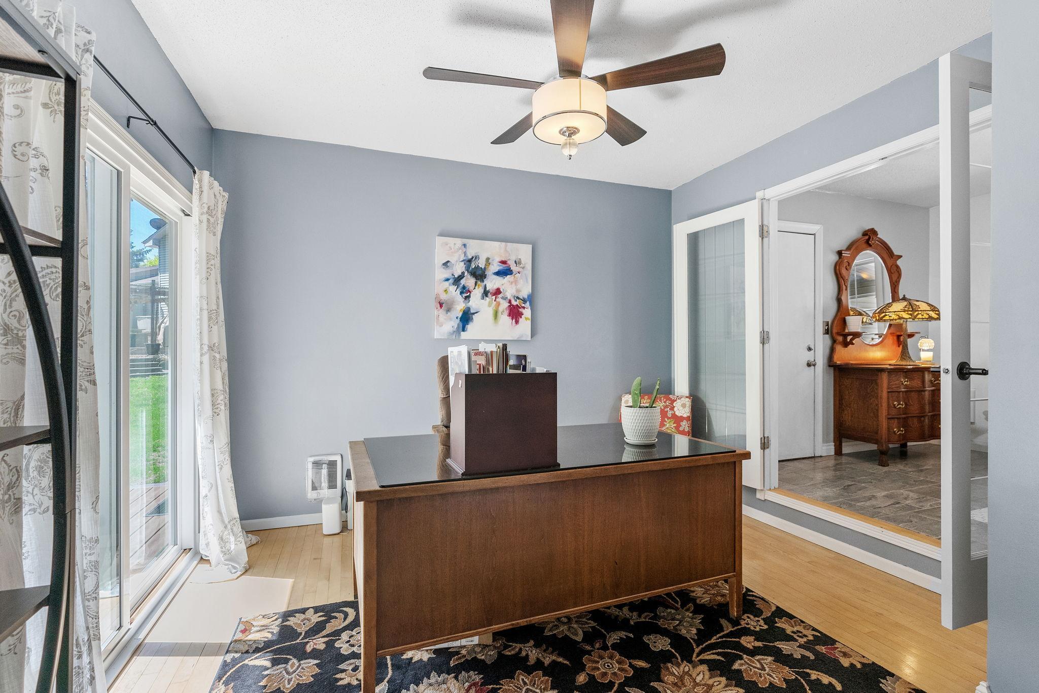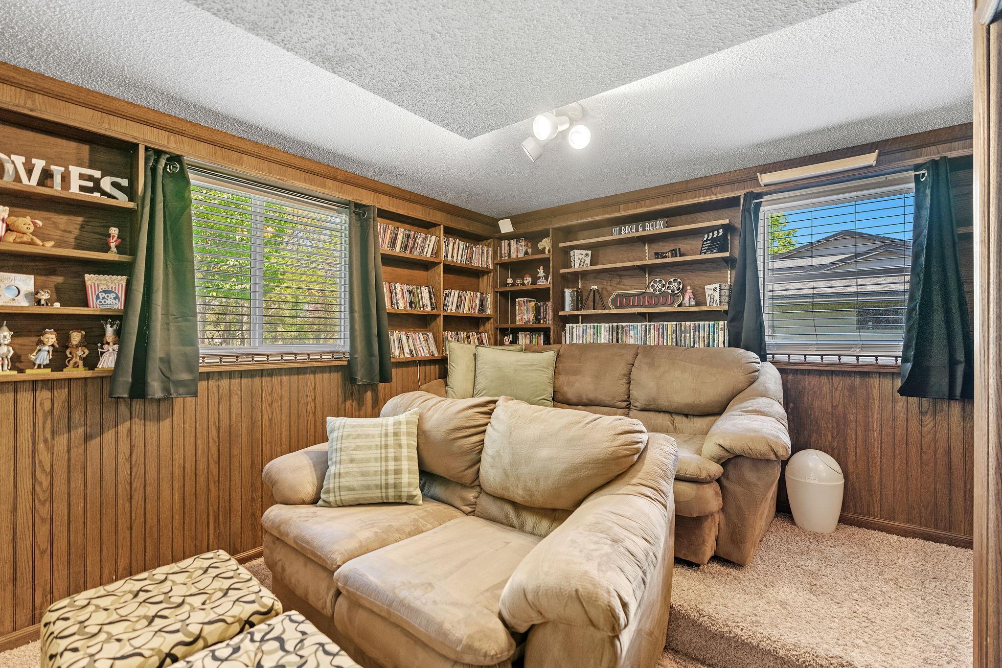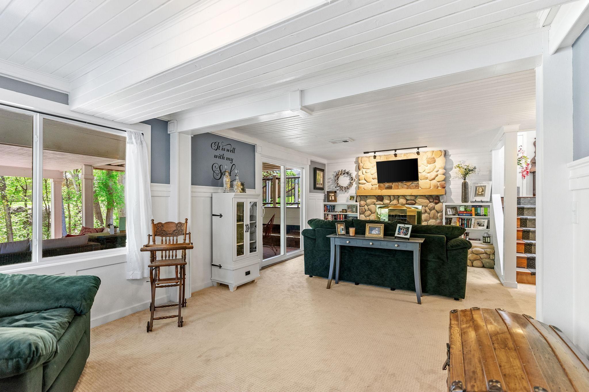 Welcome to this extended split-level home! Walk upstairs to a newly remodeled kitchen with views stretching through the four-season porch and out over acres of serene woods. The upper level features three bedrooms, including a primary suite with en-suite bath. A private office opens directly onto a two-level deck. The spacious 4-stall (2x2) garage comes with epoxy floors, and the basement has been completely remodeled for modern comfort. Watch a movie in the converted movie theater with mounted screen. Lay by either of the two fireplaces. Walk out downstairs to a stamped patio covered by under-decking. Beautifully positioned along the edge of Weaver Lake Knolls Nature Preserve, this home offers rare backyard privacy and daily access to scenic natural beauty.