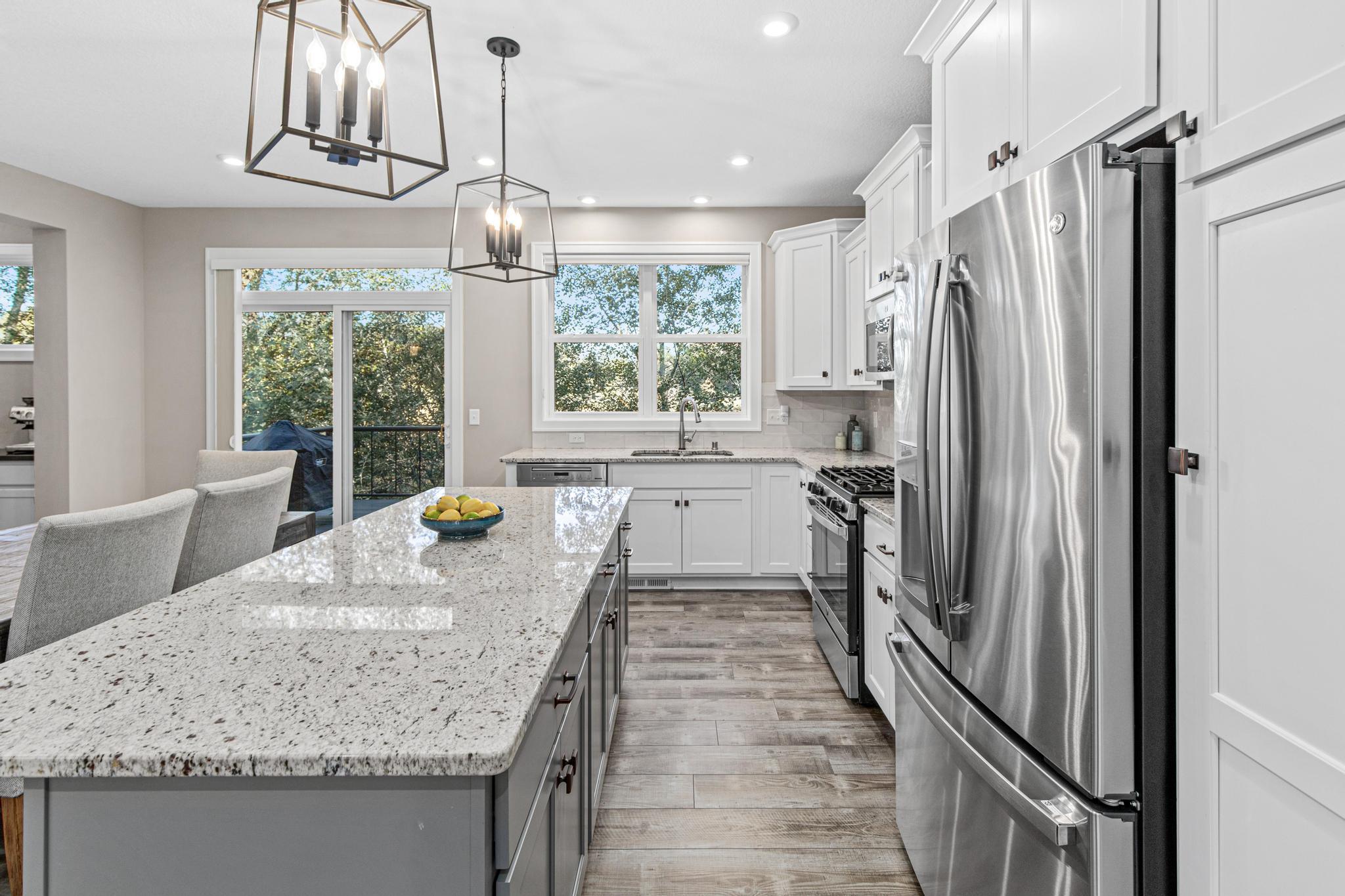 Step inside to a bright, inviting kitchen complete with a center island, granite countertops, tiled backsplash and stainless steel appliances. The open layout flows effortlessly into the living spaces, creating an ideal setting for both everyday living and entertaining. Living room has a cozy gas fireplace. 9' ceilings on the main floor, convenient main floor powder room and maintenance free deck grill and enjoy the amazing private views! The owner’s suite offers a private full bath and walk-in closet, perfectly positioned to capture serene wetland views. Upstairs, you’ll find an additional 3 spacious bedrooms, full hall bathroom and a conveniently located laundry room to simplify daily routines. Designed to live like a single-family home, this stately twin features no shared walls other than the garage. The extra-deep attached garage offers plenty of room for bikes, a boat, or additional storage and includes a practical mudroom entry. The finished walk-out basement is ideal for entertaining, movie nights and game day. With a wet bar and 3/4 bathroom with subway tiled shower! Enjoy peaceful backyard views and the benefit of being within the Clear Springs Elementary boundary, just one block from Scenic Heights Elementary. No HOA. Minutes to shopping restaurants, Lake Minnetonka and downtown Wayzata!
