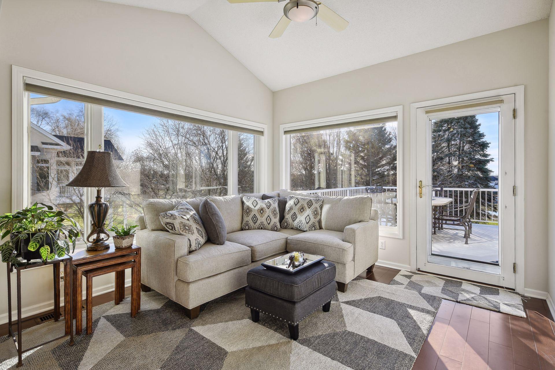 It is here! Don't miss a chance to see this rare and spectacular Nanterre townhome with exquisite finishes and south light. Nestled in a fabulous location, this home offers main-floor living with an owner’s suite and an open floor plan. The gourmet kitchen overlooks the family room, dining and sunroom areas. The wonderful deck overlooks the green space. The lower-level walkout offers two additional bedrooms and a recreational space with an outdoor patio space. A three-car garage is a huge bonus. This home is conveniently near shopping, restaurants, schools, and major freeways. Do not miss this amazing opportunity! Home recently mitigated for moisture intrusion - All is repaired properly.