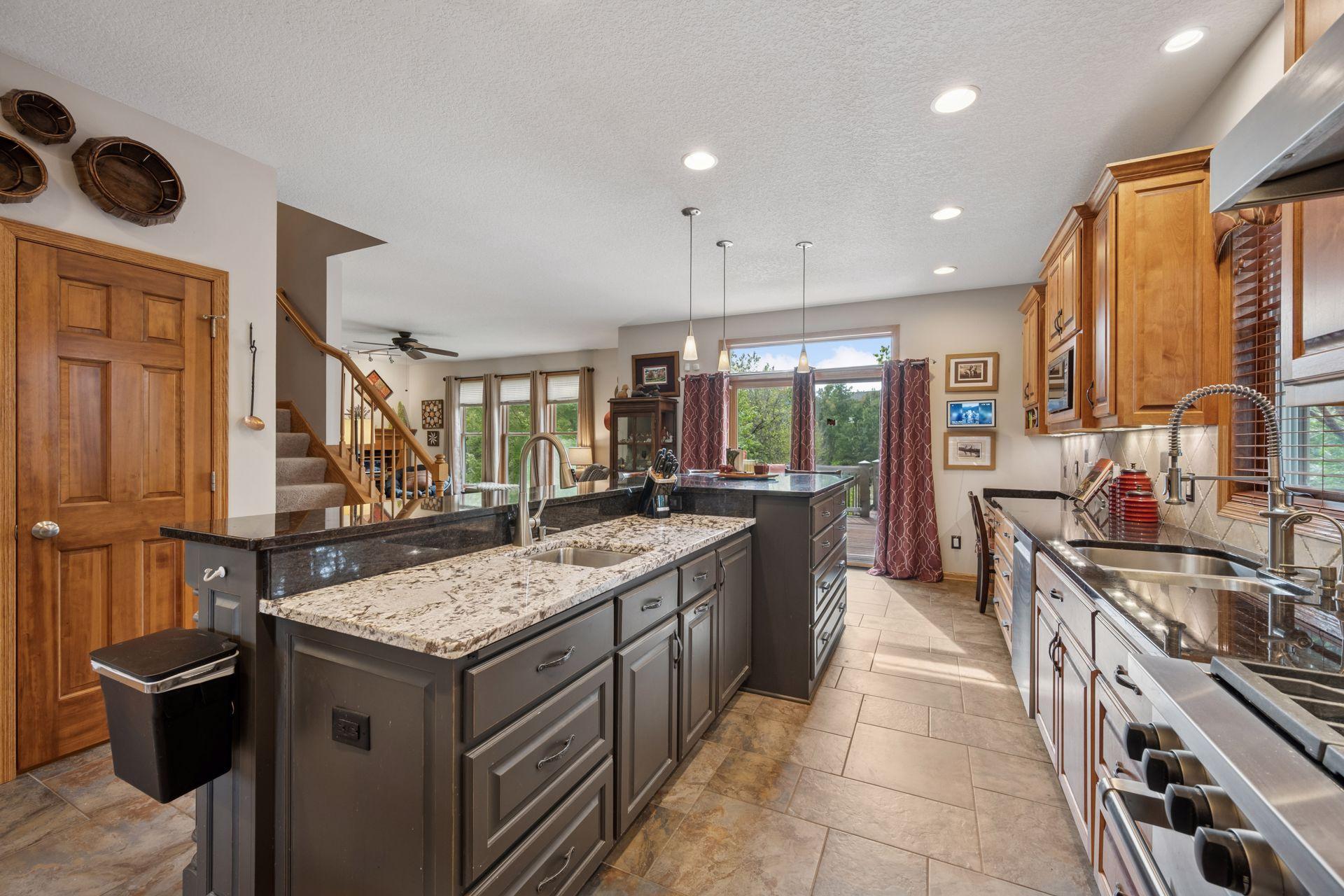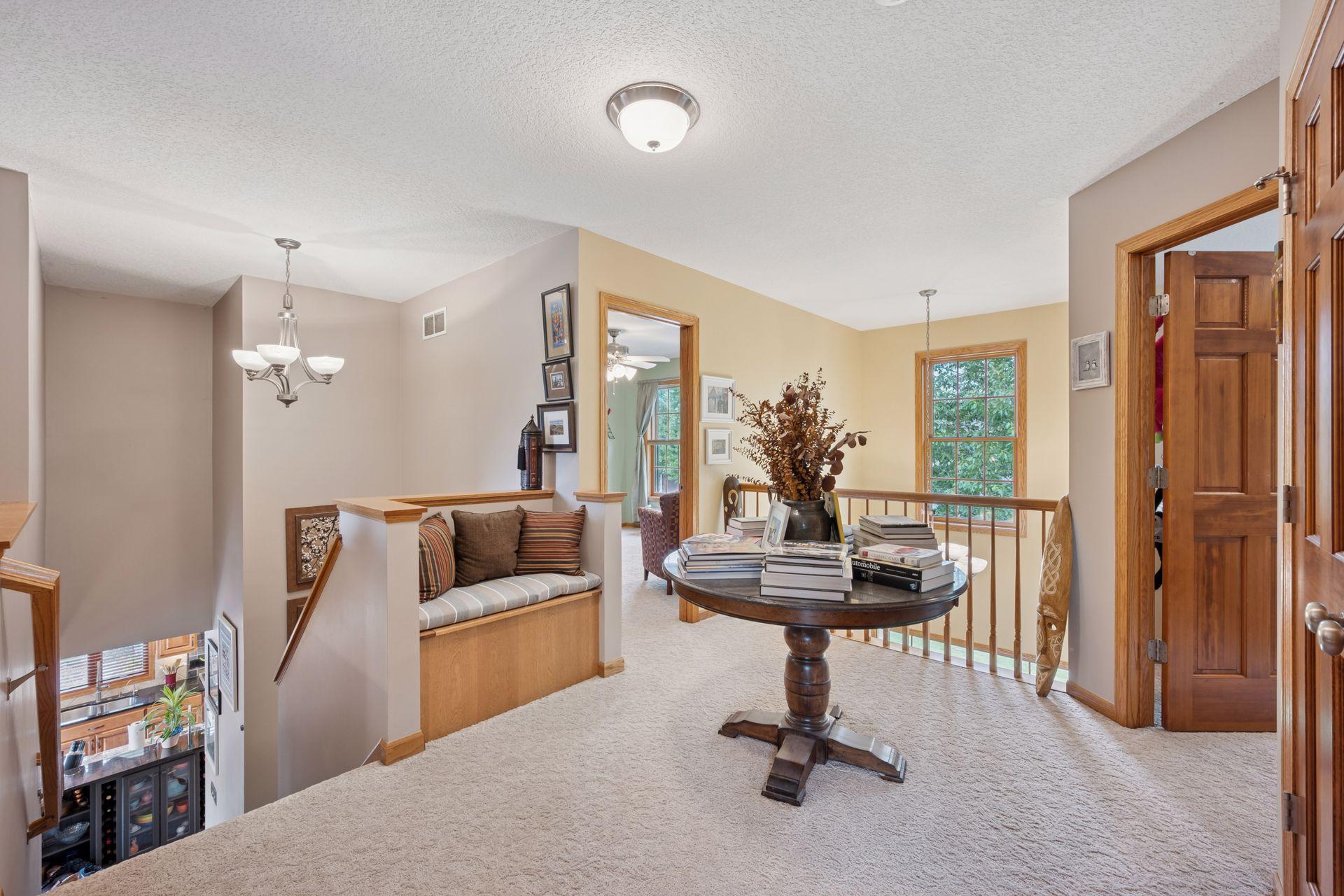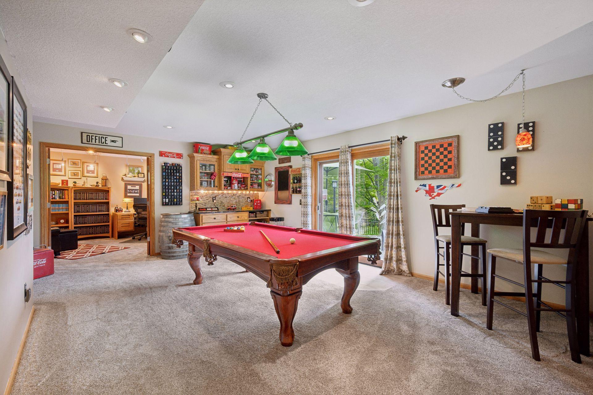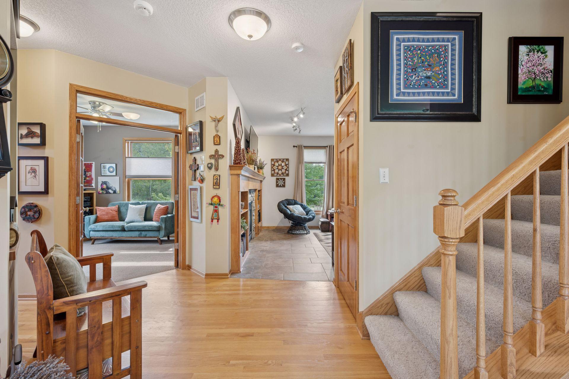Welcome to this stunning Lundgren Bros. custom-built home, located in the highly sought-after Preserve at Nottingham. With over 4,400 square feet of impeccably finished living space, this exceptional residence offers 5 spacious bedrooms, 4 bathrooms, and a 3 -car garage - all nestled on a serene, private, wooded 0.52-acre lot. Designed with elegance and superior craftsmanship, the home features an open and thoughtfully designed layout, showcasing elegant finishes and meticulous attention to detail throughout. Energy-efficient Pella windows and doors, along with a new HVAC system, offer year-round comfort and cost savings. The Main Level (1,5 63 sq ft) is Ideal for both entertaining and everyday living, the main floor features a private office, a spacious mudroom with built-in cabinetry, open foyer, and both formal and informal dining spaces. At the heart of the home is a gourmet kitchen, equipped with custom cabinetry, stainless steel appliances, a 60" Wolf six-burner range with dual ovens and a commercial-grade vent hood, a Liebherr refrigerator, granite countertops, heated tile floors, a walk-in pantry, a baker's station, and a large center island with prep sink. The kitchen flows seamlessly into the sun-drenched living room, highlighted by a beautiful fireplace and custom maple built-ins. Step outside to enjoy the peaceful setting from the maintenance-free 16xl8 deck overlooking the private backyard. The Upper Level (1,491 sq ft) you'll find four generously sized bedrooms and three bathrooms. The luxurious primary suite includes a sitting room with built-ins, a spacious walk-in closet, and a spa-inspired bathroom with a soaking tub and separate walk-in shower. The Lower Level (1,498 sq ft) is Perfectly designed for relaxation and entertaining, the walkout lower level features a large family room with fireplace, a game room, kitchen/bar, gym, and a fifth bedroom or office. Step outside to a large patio and a fenced-in backyard overlooking a tranquil pond-an ideal space for hosting or unwinding. Additional storage is available in the large utility room and storage room. Conveniently located near parks, lakes, trails, shopping, and dining, this extraordinary home offers a rare combination of privacy, luxury, and accessibility in one of the area's most desirable neighborhoods. Welcome home.