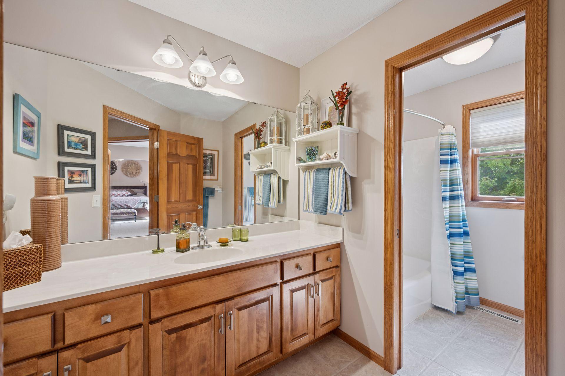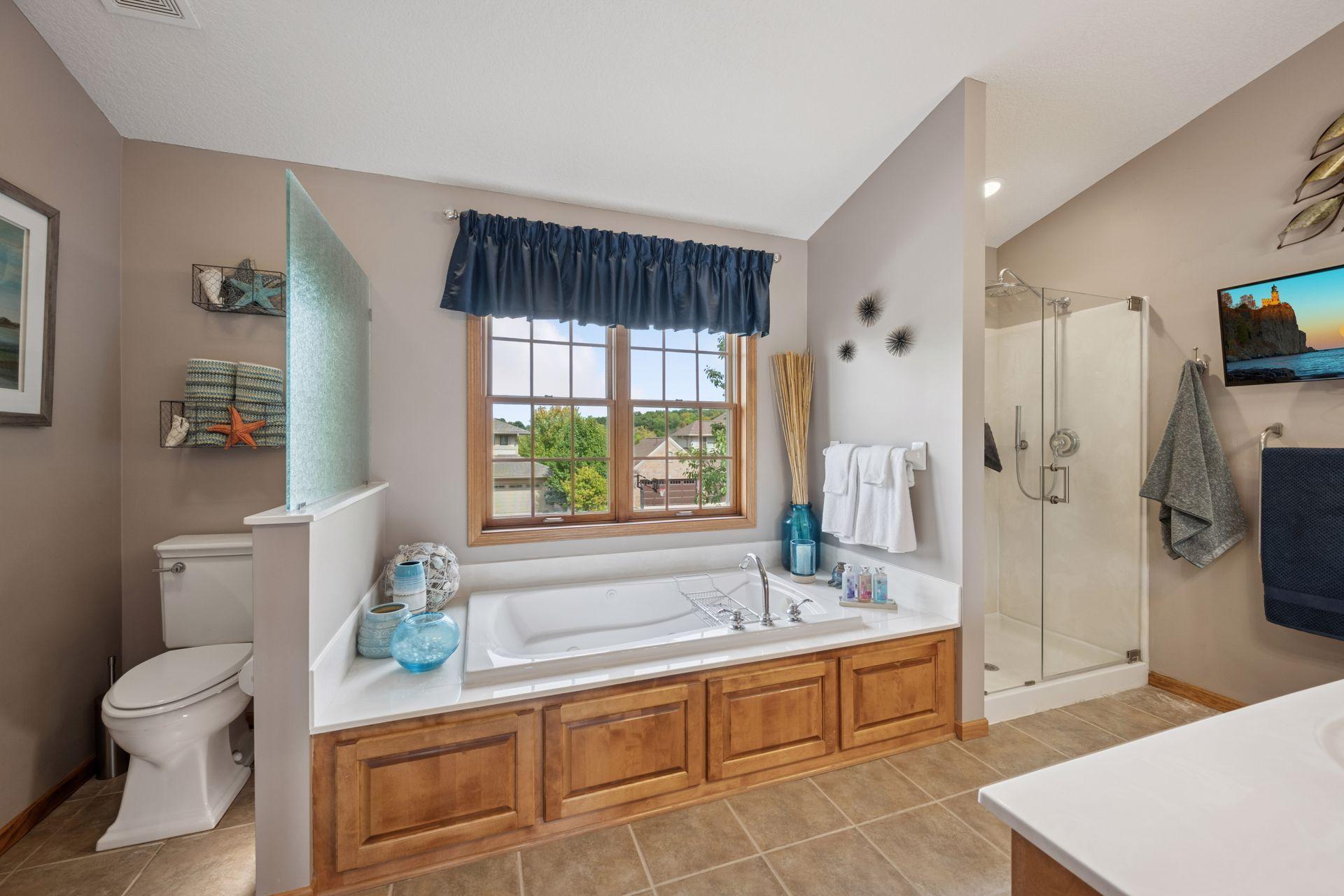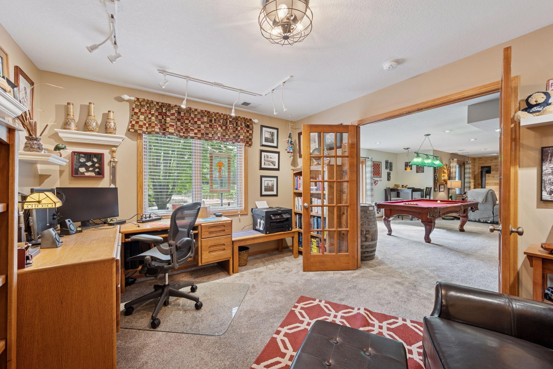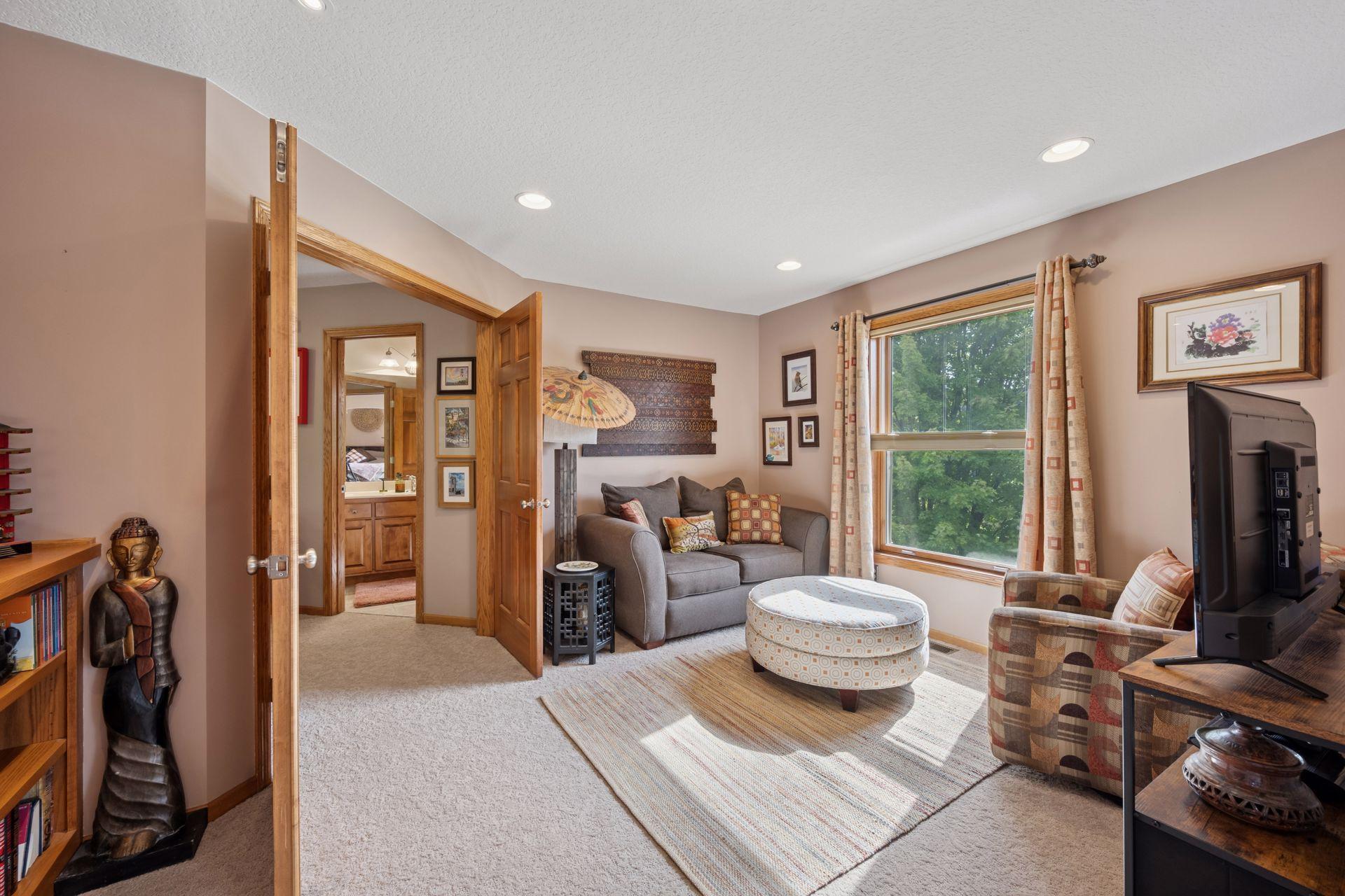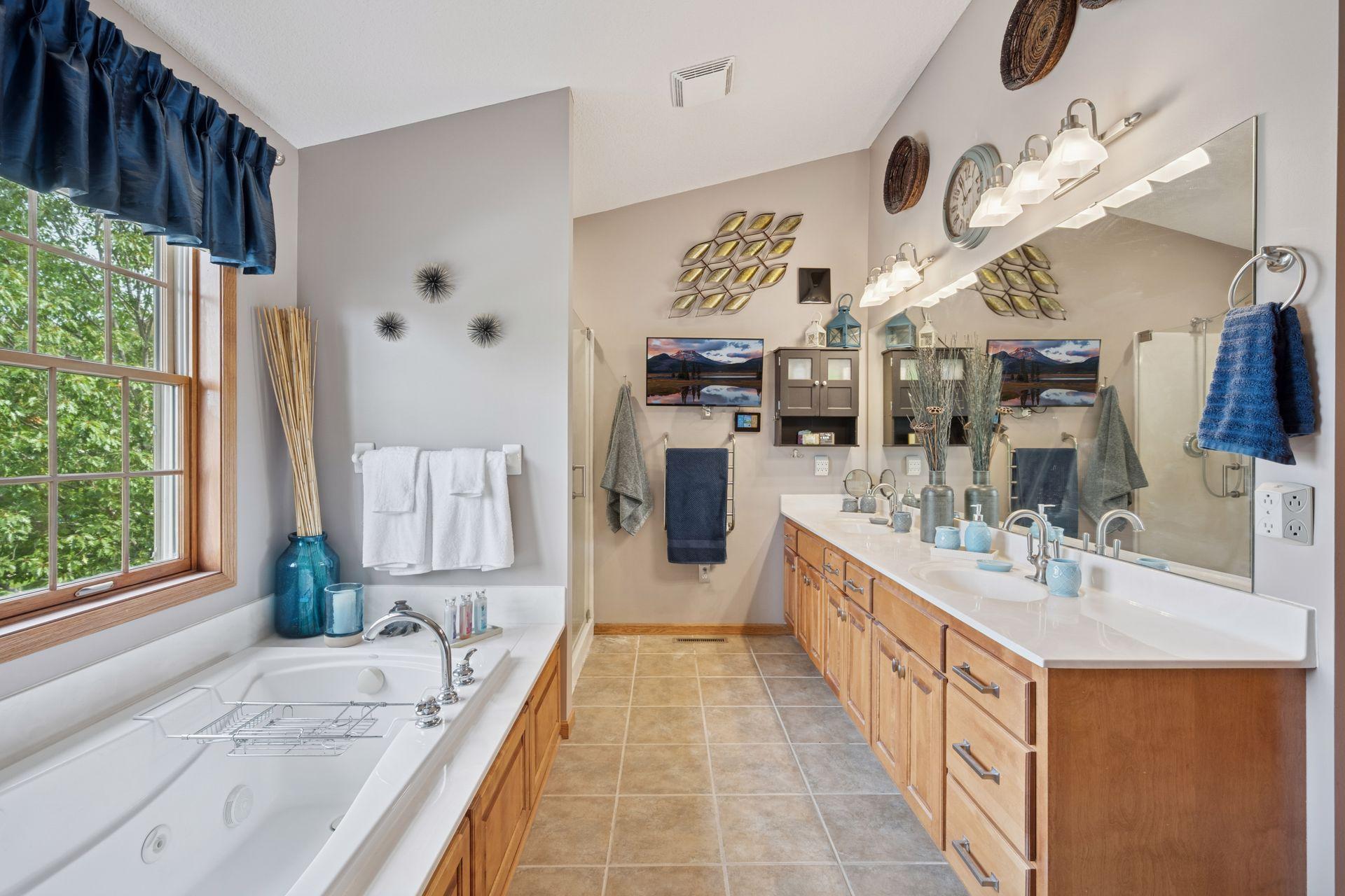 Welcome to this stunning Lundgren Bros. custom-built home, located in the highly sought-after Preserve at Nottingham. With over 4,400 square feet of impeccably finished living space, this exceptional residence offers 5 spacious bedrooms, 4 bathrooms, and a 3 -car garage - all nestled on a serene, private, wooded 0.52-acre lot. Designed with elegance and superior craftsmanship, the home features an open and thoughtfully designed layout, showcasing elegant finishes and meticulous attention to detail throughout. Energy-efficient Pella windows and doors, along with a new HVAC system, offer year-round comfort and cost savings. The Main Level (1,5 63 sq ft) is Ideal for both entertaining and everyday living, the main floor features a private office, a spacious mudroom with built-in cabinetry, open foyer, and both formal and informal dining spaces. At the heart of the home is a gourmet kitchen, equipped with custom cabinetry, stainless steel appliances, a 60" Wolf six-burner range with dual ovens and a commercial-grade vent hood, a Liebherr refrigerator, granite countertops, heated tile floors, a walk-in pantry, a baker's station, and a large center island with prep sink. The kitchen flows seamlessly into the sun-drenched living room, highlighted by a beautiful fireplace and custom maple built-ins. Step outside to enjoy the peaceful setting from the maintenance-free 16xl8 deck overlooking the private backyard. The Upper Level (1,491 sq ft) you'll find four generously sized bedrooms and three bathrooms. The luxurious primary suite includes a sitting room with built-ins, a spacious walk-in closet, and a spa-inspired bathroom with a soaking tub and separate walk-in shower. The Lower Level (1,498 sq ft) is Perfectly designed for relaxation and entertaining, the walkout lower level features a large family room with fireplace, a game room, kitchen/bar, gym, and a fifth bedroom or office. Step outside to a large patio and a fenced-in backyard overlooking a tranquil pond-an ideal space for hosting or unwinding. Additional storage is available in the large utility room and storage room. Conveniently located near parks, lakes, trails, shopping, and dining, this extraordinary home offers a rare combination of privacy, luxury, and accessibility in one of the area's most desirable neighborhoods. Welcome home.