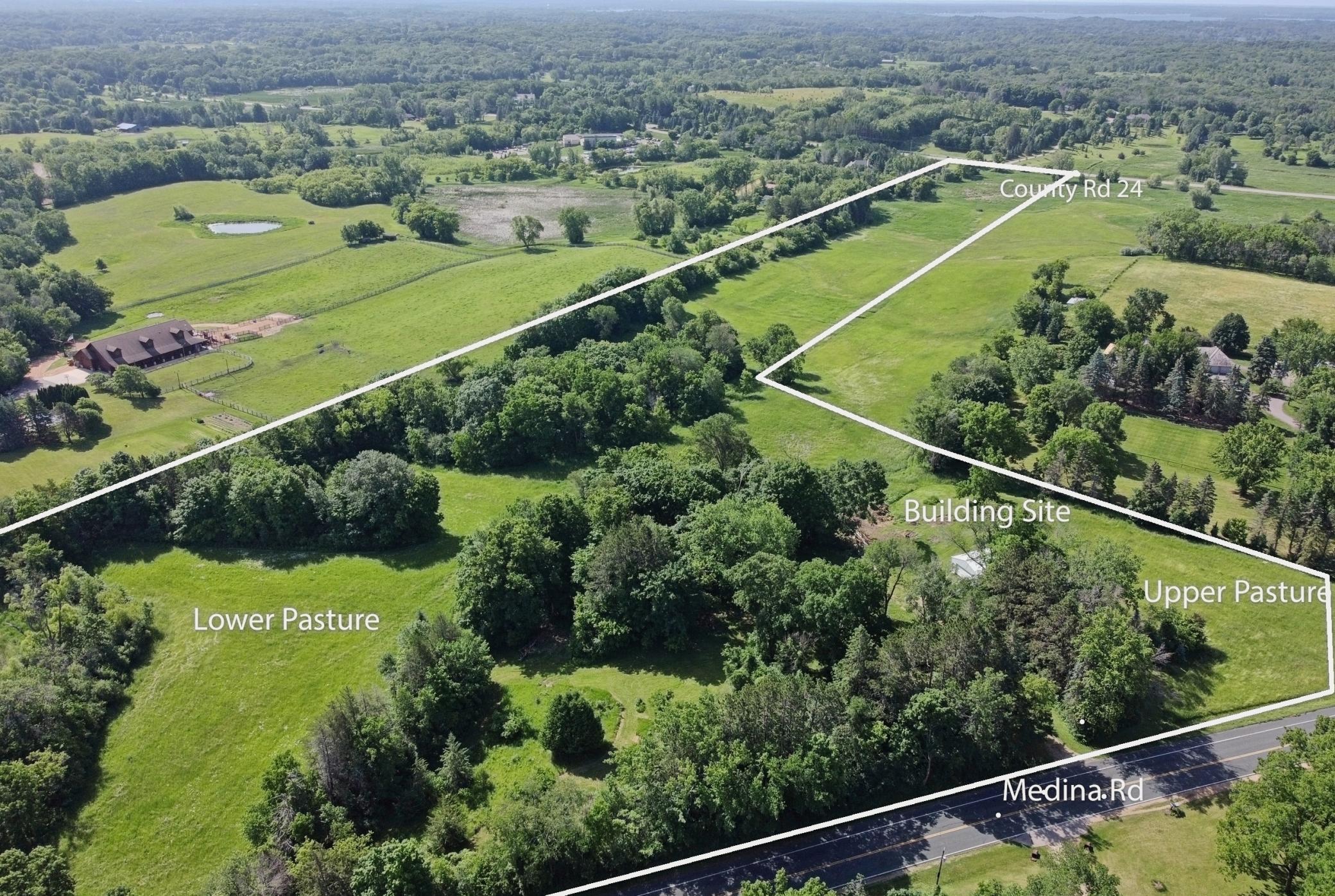 Prime Medina location in Orono Schools. Stunning hillside walkout setting with south and east facing exposure and spectacular unobstructed views overlooking the rolling countryside. Completely private. Fabulous estate property! Almost 15 acres of usable land. Would be suitable for horses and pastures.