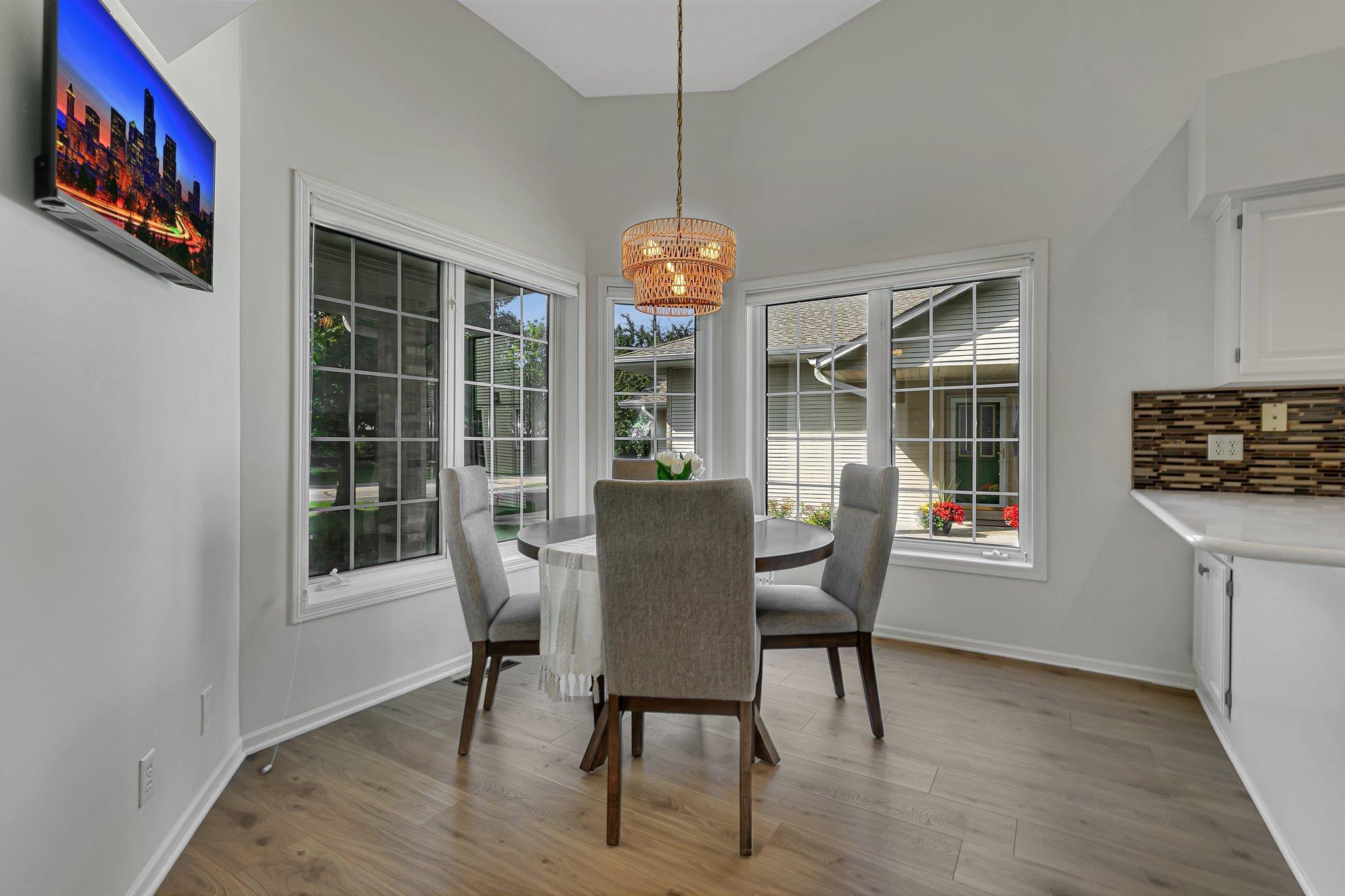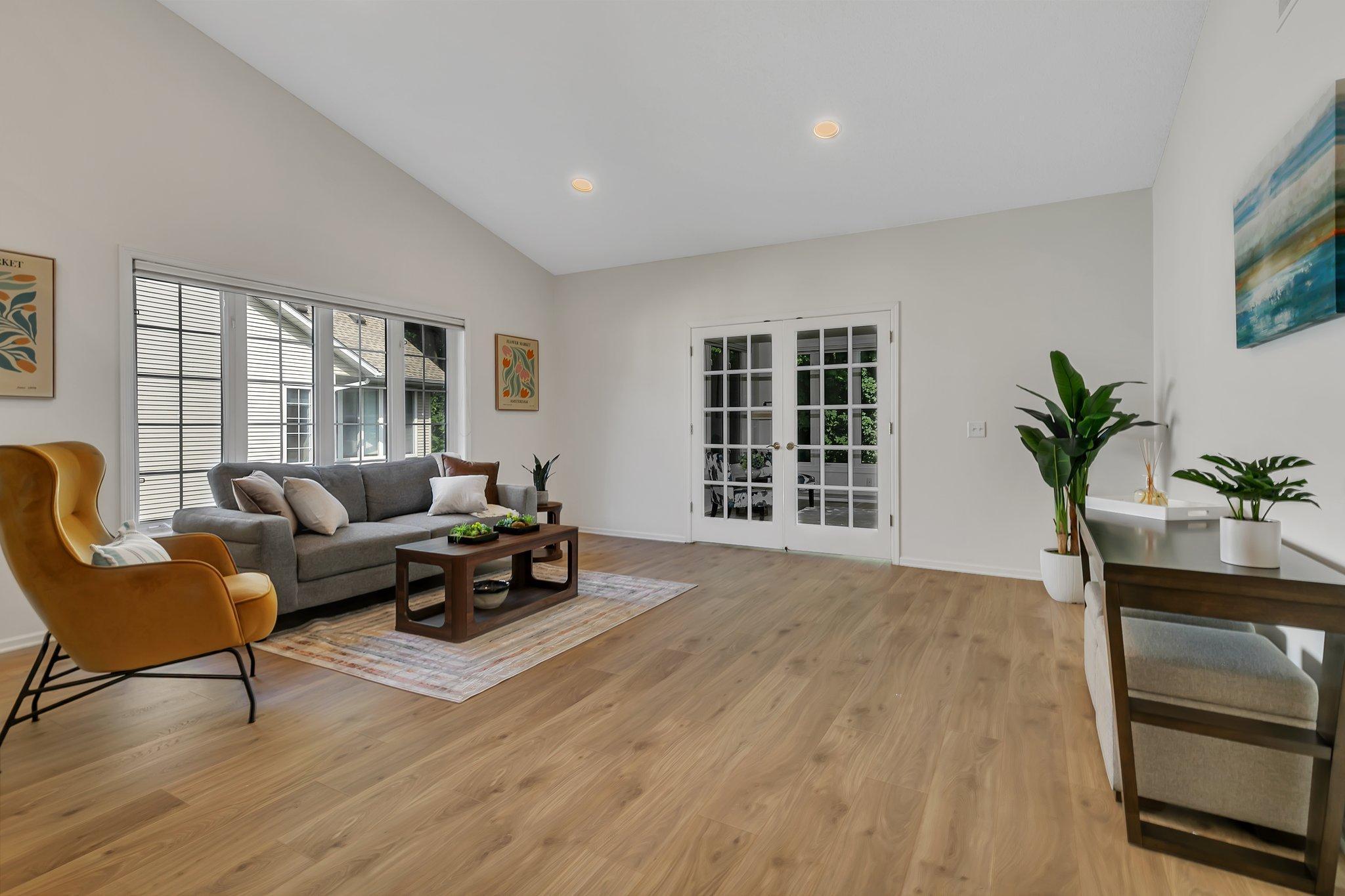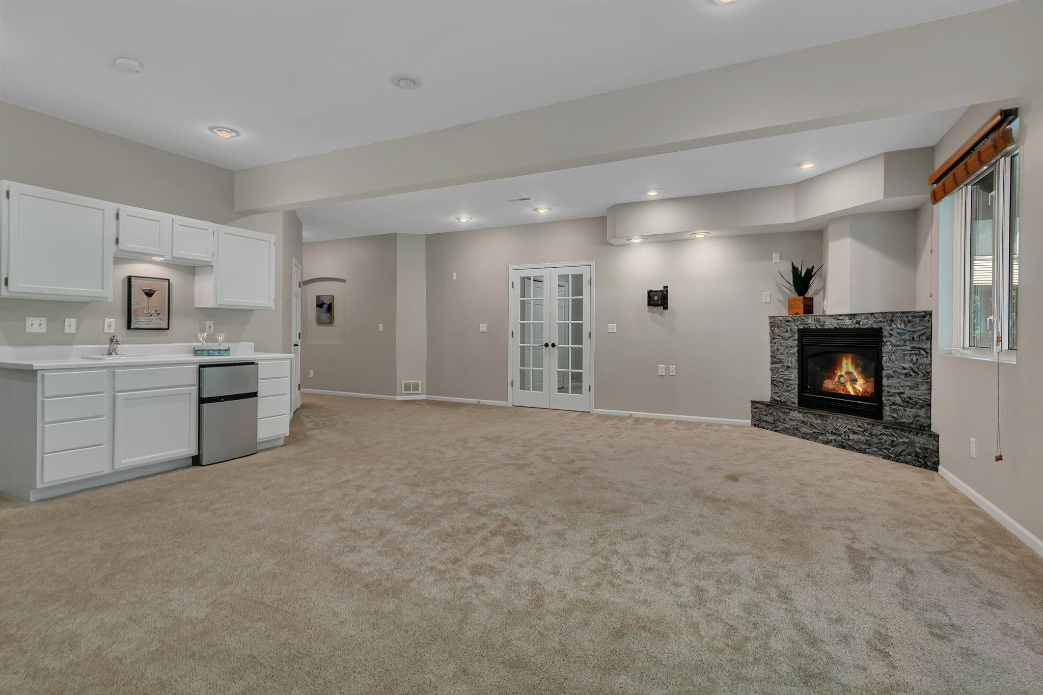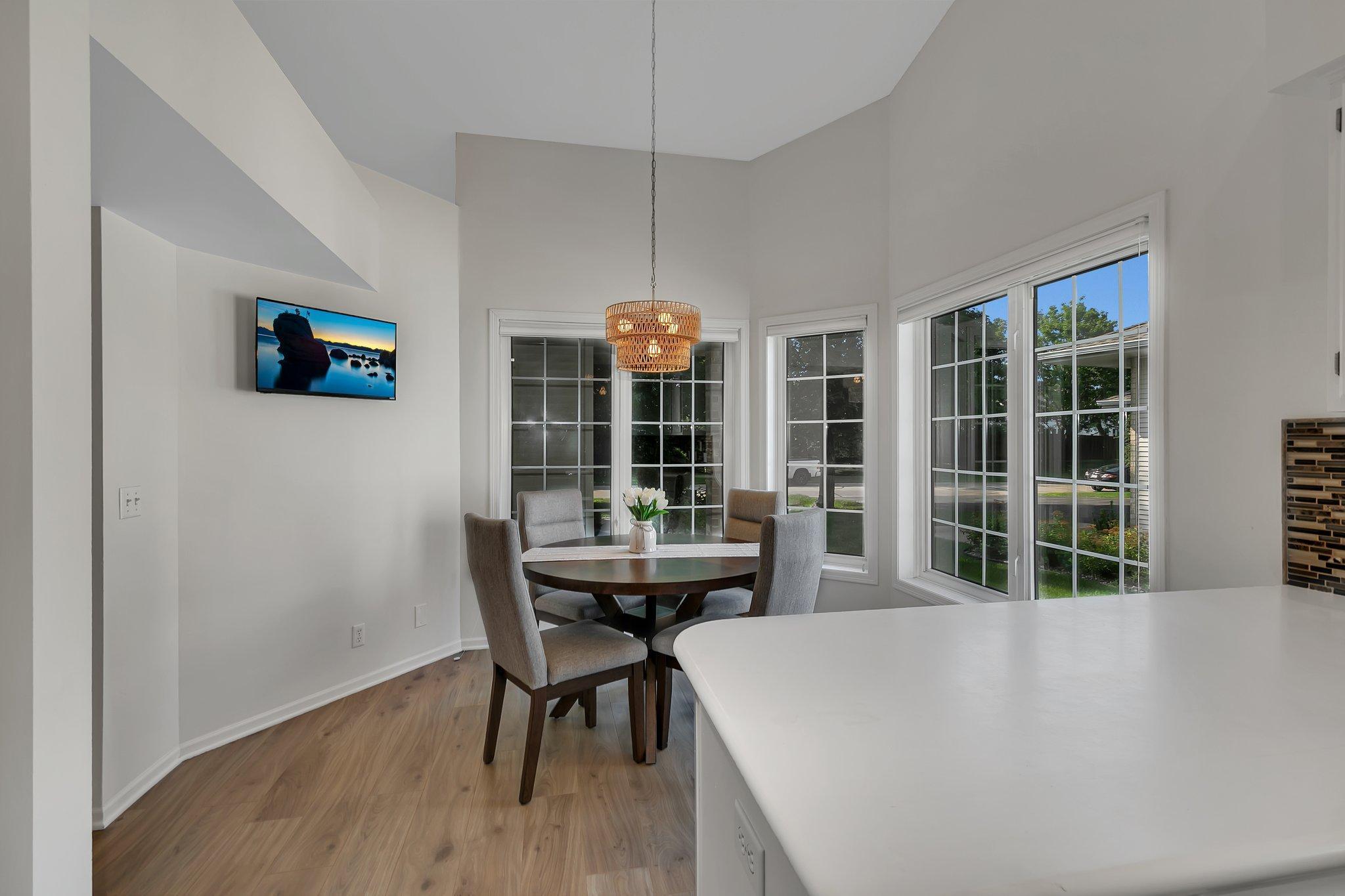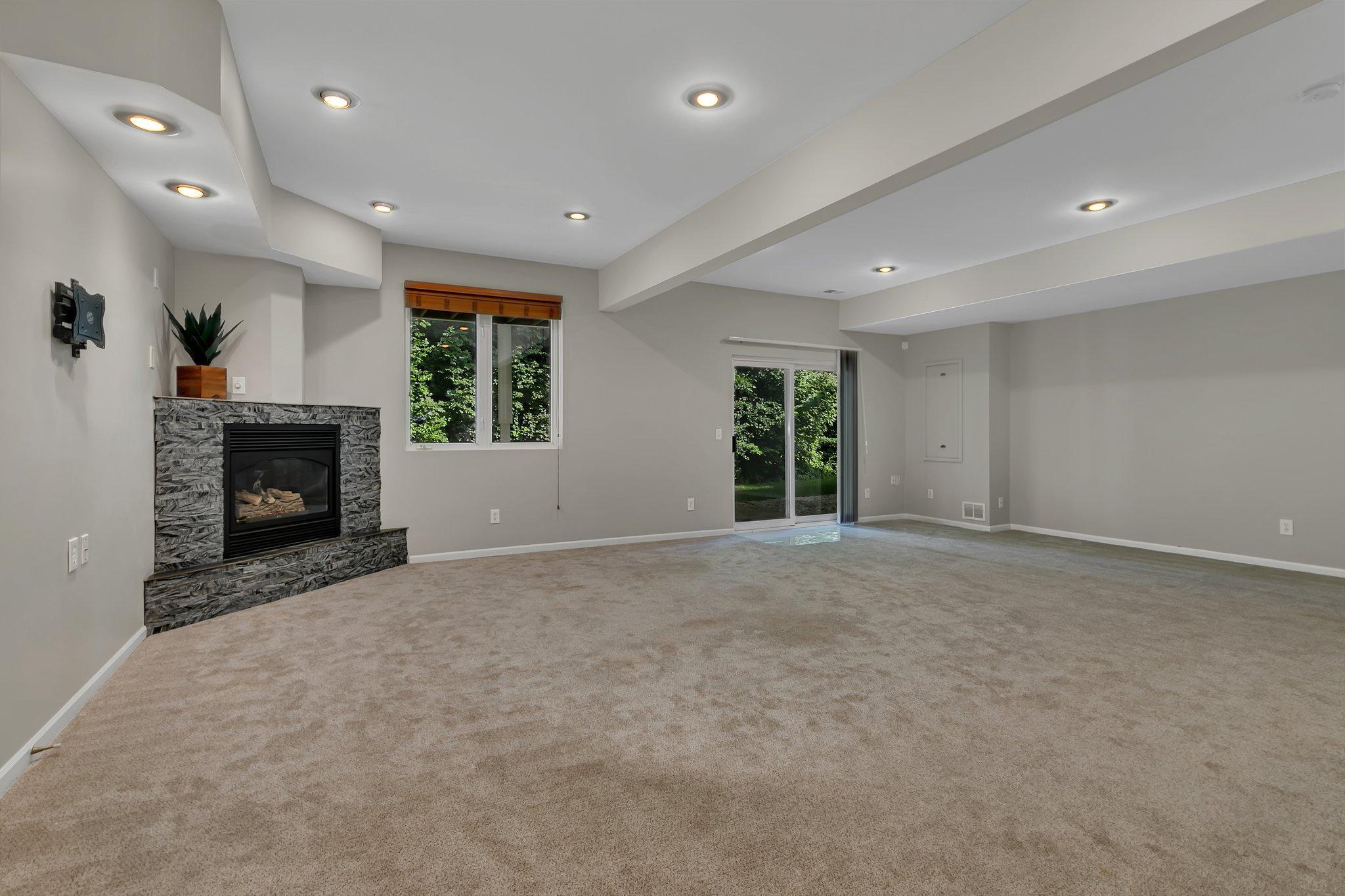Welcome to this one level living end unit townhome in great location. Home features updated kitchen and dinette and a separate formal dining room for the special gatherings, living room and 4 season porch that overlooks private wooded backyard. The main level primary bedroom comes with a complete remodeled in suite with new spacious walk-in tile shower with large vanity with double bowls, elegant soaking tub to relax your stress away and walk-in closet. Main floor laundry. Entertain in the lower level with a large family room with cozy fireplace and wet bar, 2 more bedrooms, 3/4 bathroom and plenty of storage. Many updates throughout including new hardwood floors throughout main level, cement patio that could be easily turned into a screened porch. New garage floor paint. Located minutes/walking distance from Cedar Ridge Elementary and Riley Lake, Crestwood and Pioneer Parks with their trails, beaches and outdoor activities.