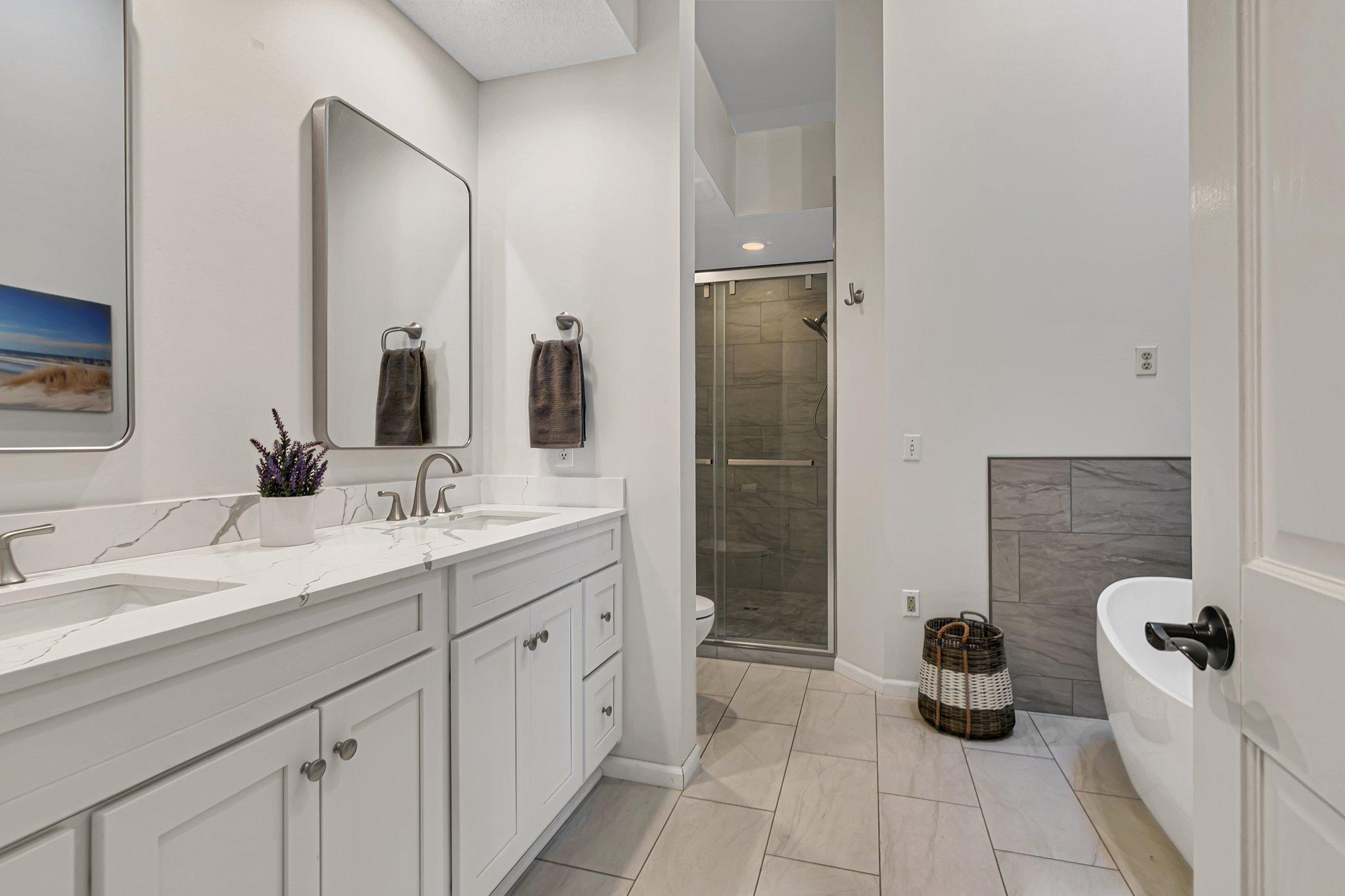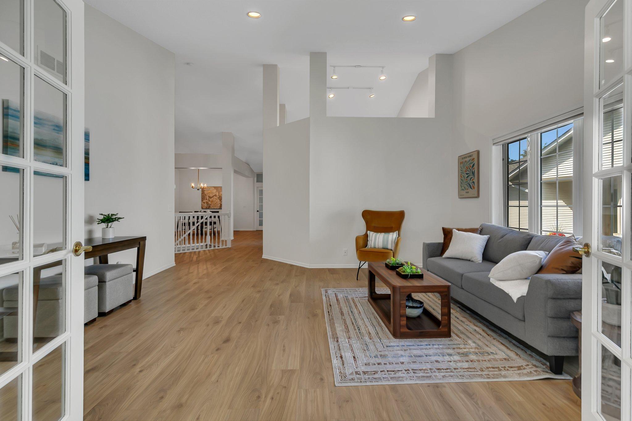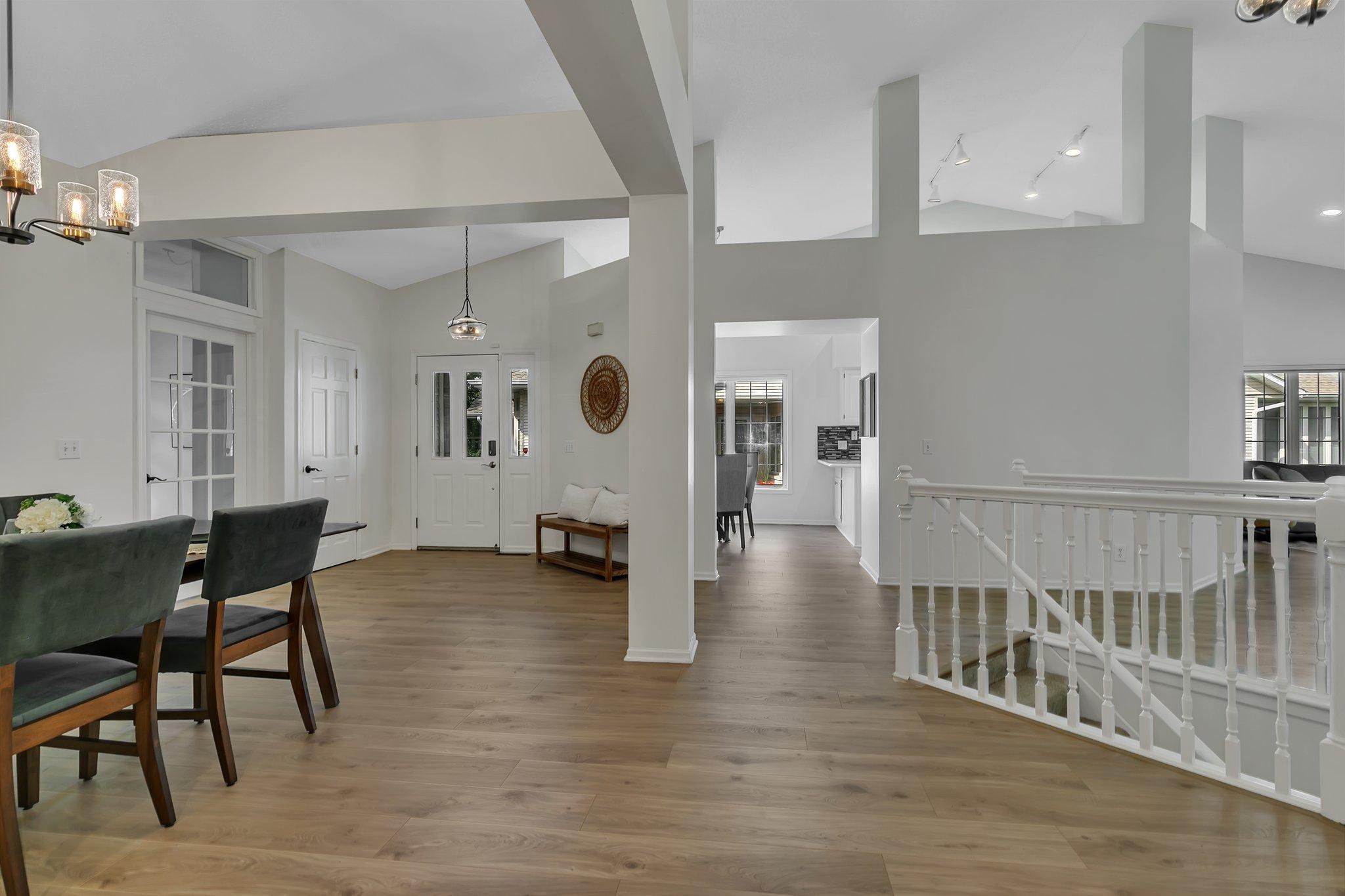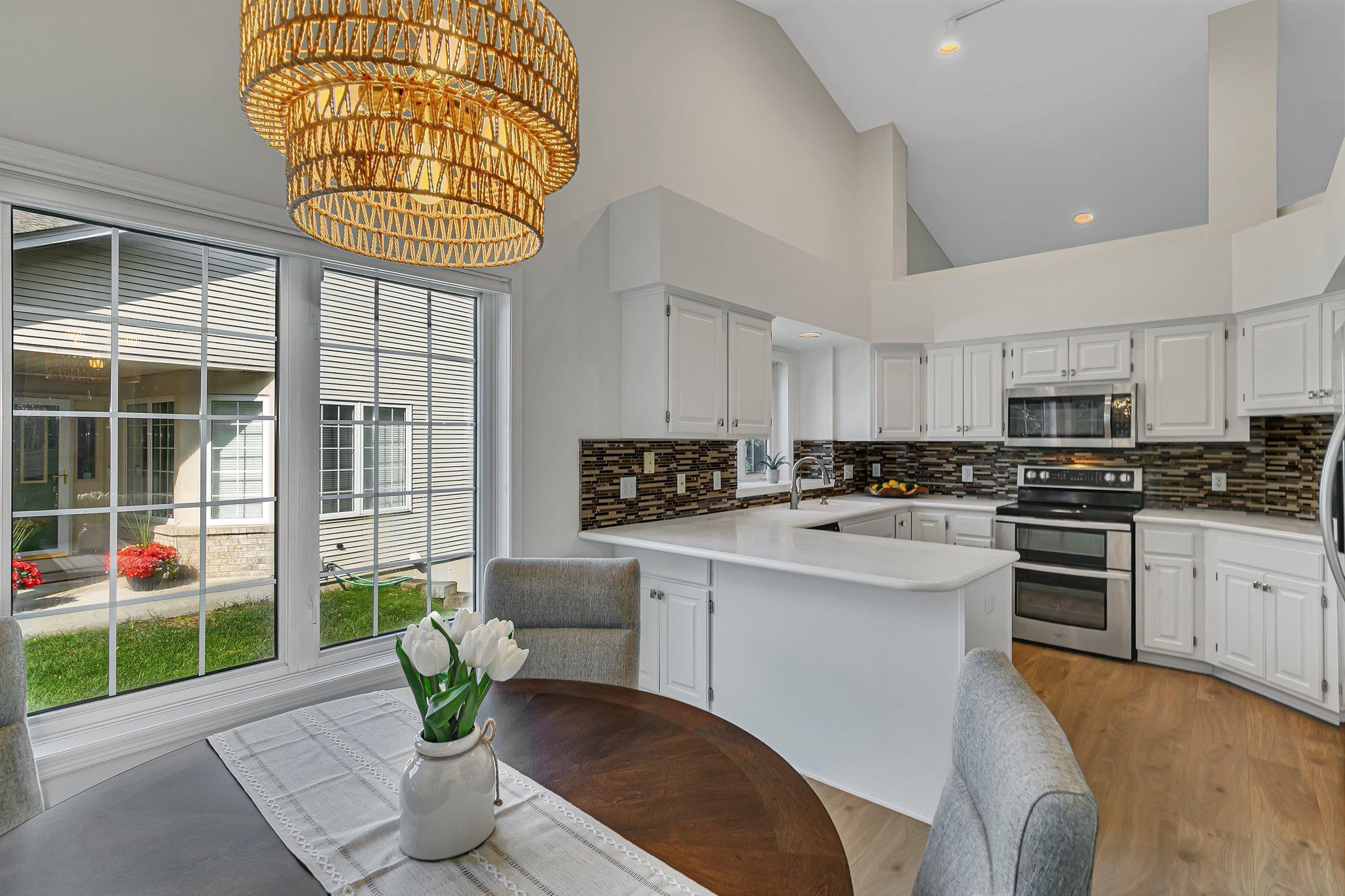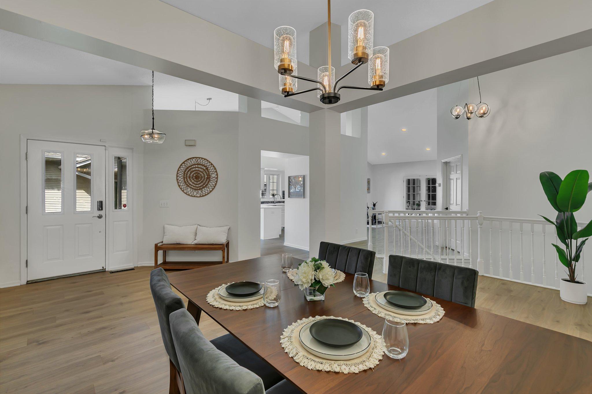 Welcome to this one level living end unit townhome in great location. Home features updated kitchen and dinette and a separate formal dining room for the special gatherings, living room and 4 season porch that overlooks private wooded backyard. The main level primary bedroom comes with a complete remodeled in suite with new spacious walk-in tile shower with large vanity with double bowls, elegant soaking tub to relax your stress away and walk-in closet. Main floor laundry. Entertain in the lower level with a large family room with cozy fireplace and wet bar, 2 more bedrooms, 3/4 bathroom and plenty of storage. Many updates throughout including new hardwood floors throughout main level, cement patio that could be easily turned into a screened porch. New garage floor paint. Located minutes/walking distance from Cedar Ridge Elementary and Riley Lake, Crestwood and Pioneer Parks with their trails, beaches and outdoor activities.