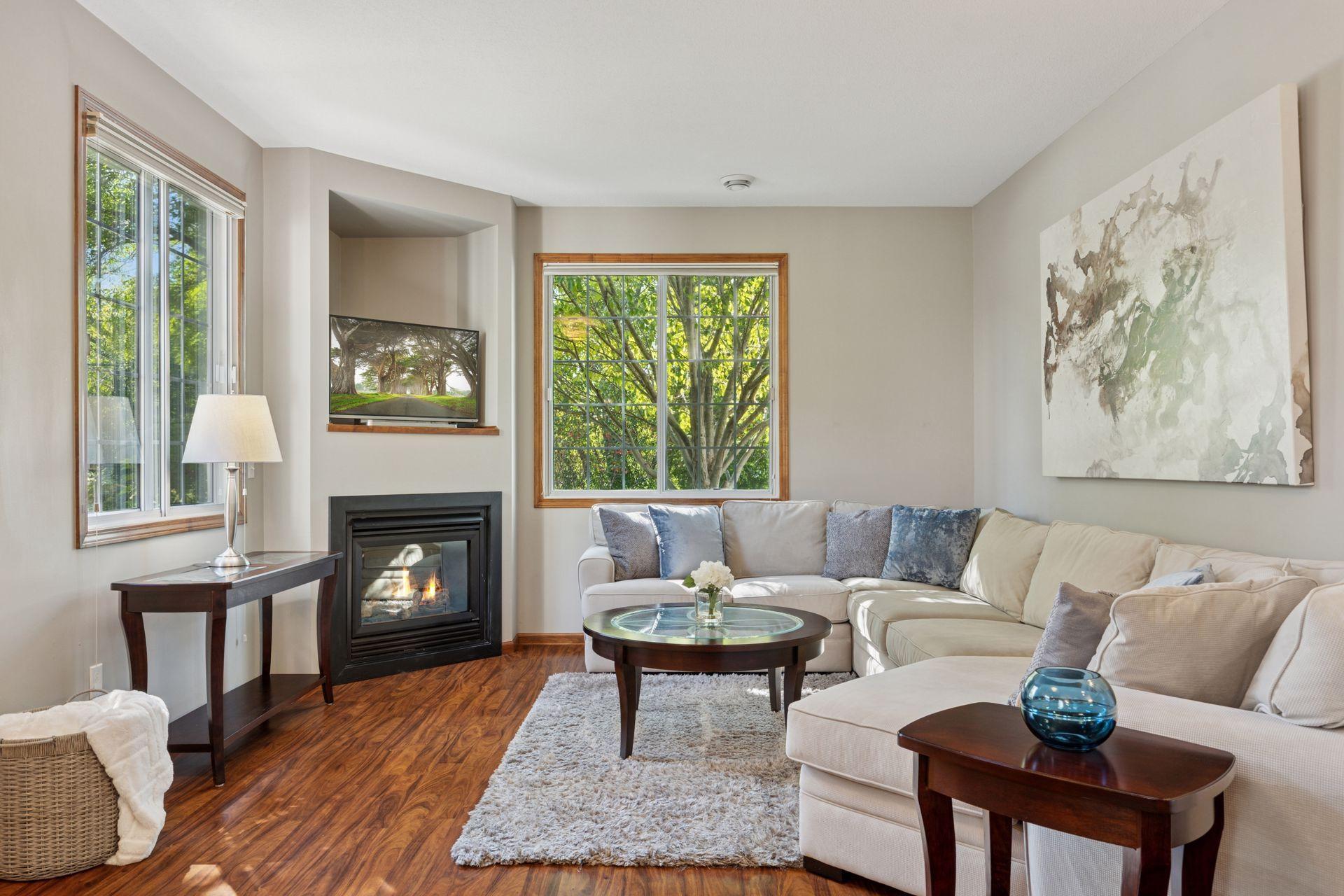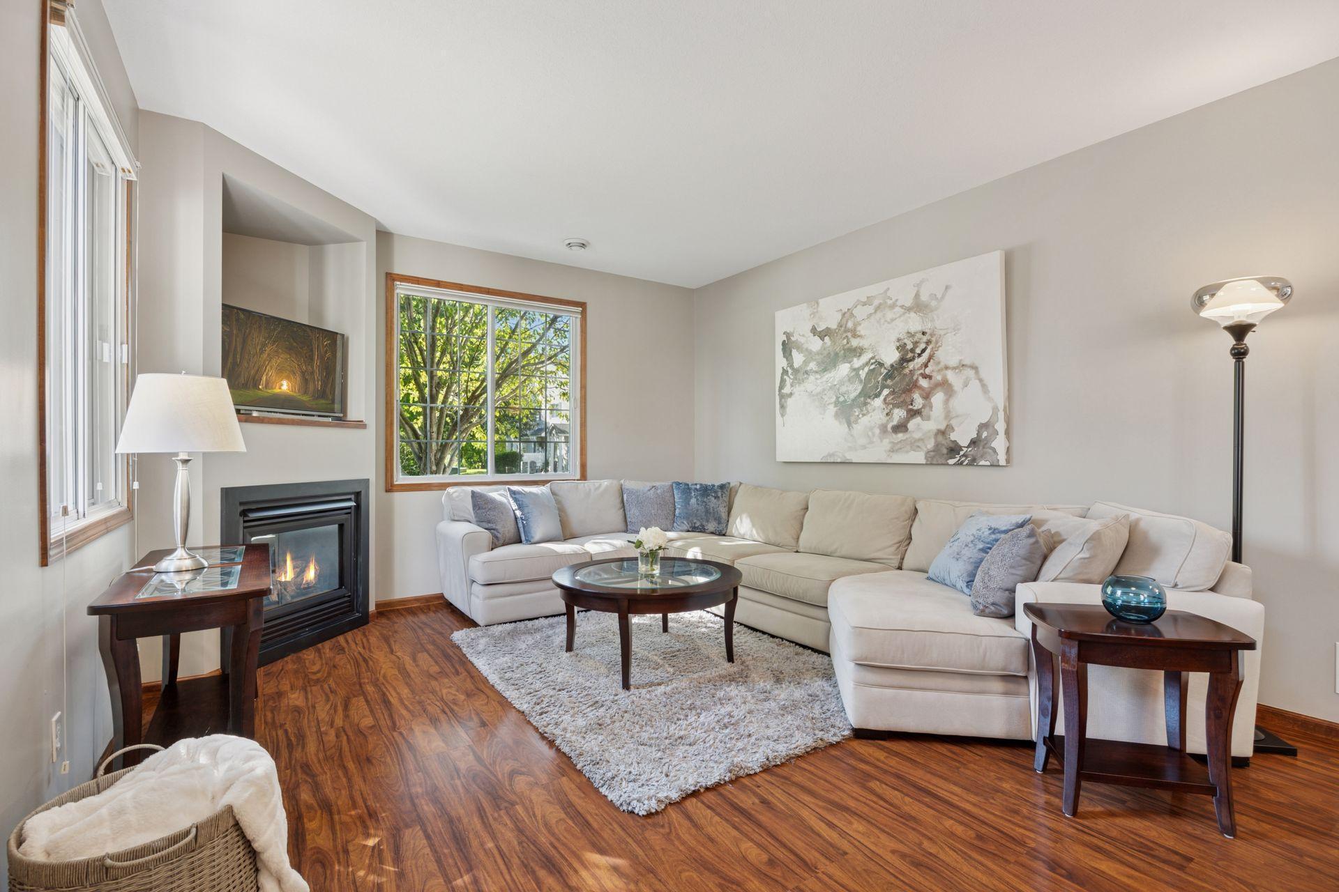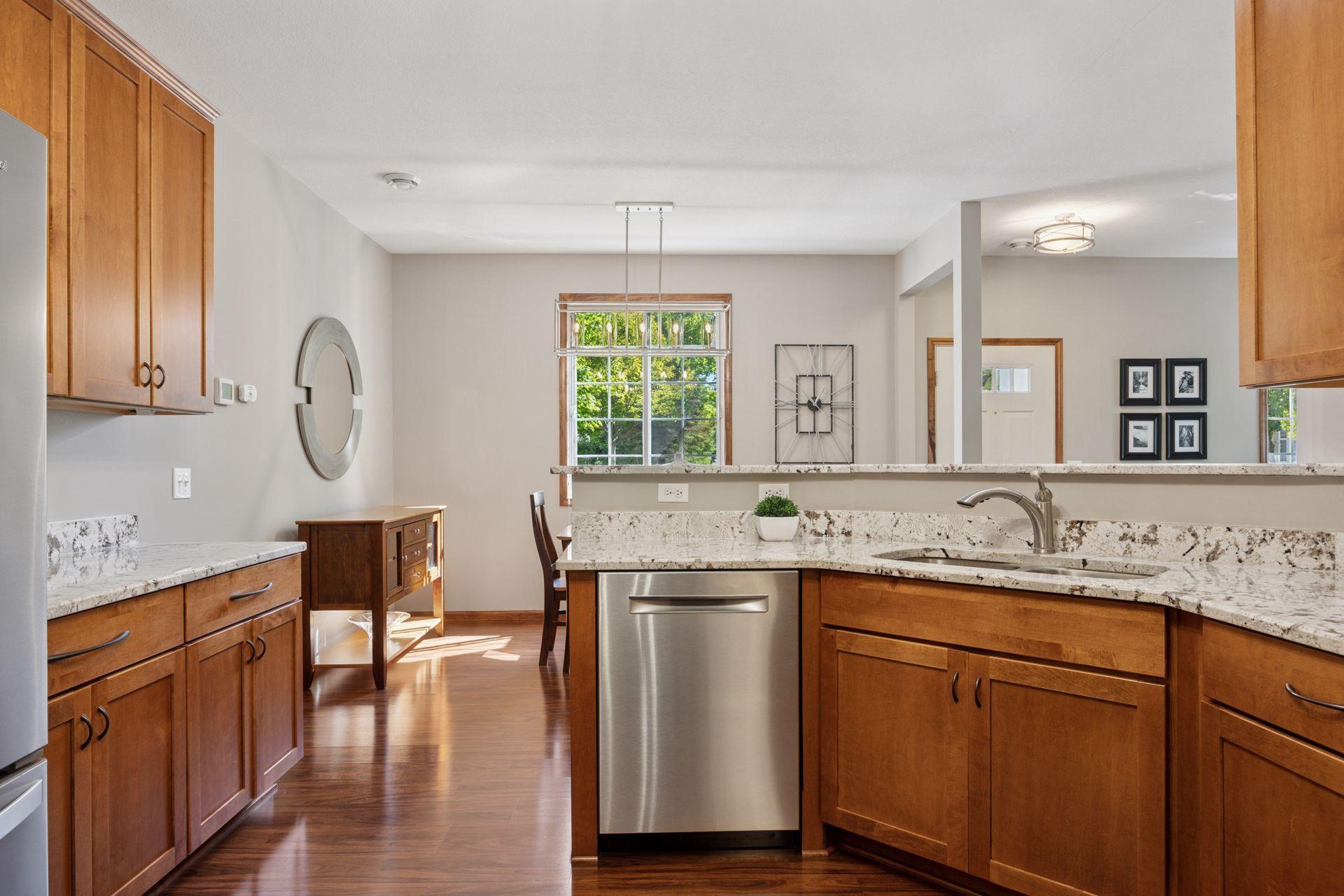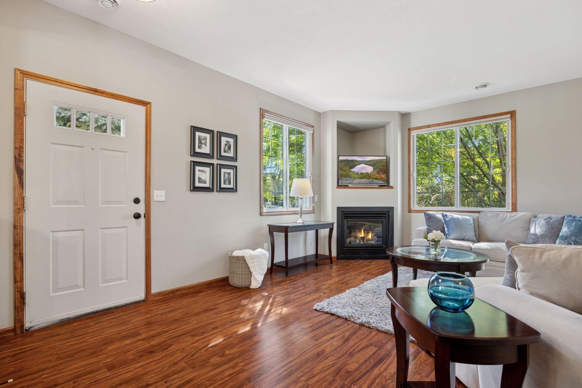 Impeccably maintained end-unit townhome that is sure to impress even the most particular buyers. The kitchen has been beautifully updated with craftsman cabinetry, granite countertops, and stainless steel appliances including a 5-burner gas range. The open-concept main level features laminate wood flooring, updated lighting, and a cozy gas fireplace, creating a warm and inviting space for everyday living and entertaining. A versatile loft offers the perfect bonus area for a home office or media room. The spacious primary walkthrough includes a custom closet and a fully remodeled bathroom designed from top to bottom with modern finishes. Enjoy the privacy of your own patio with views of the surrounding green space, along with the convenience of a large driveway for extra parking. With thoughtful updates throughout—including doors, fixtures, and finishes—this home combines low-maintenance living with stylish upgrades in a desirable end-unit setting with wooded views across the street.
