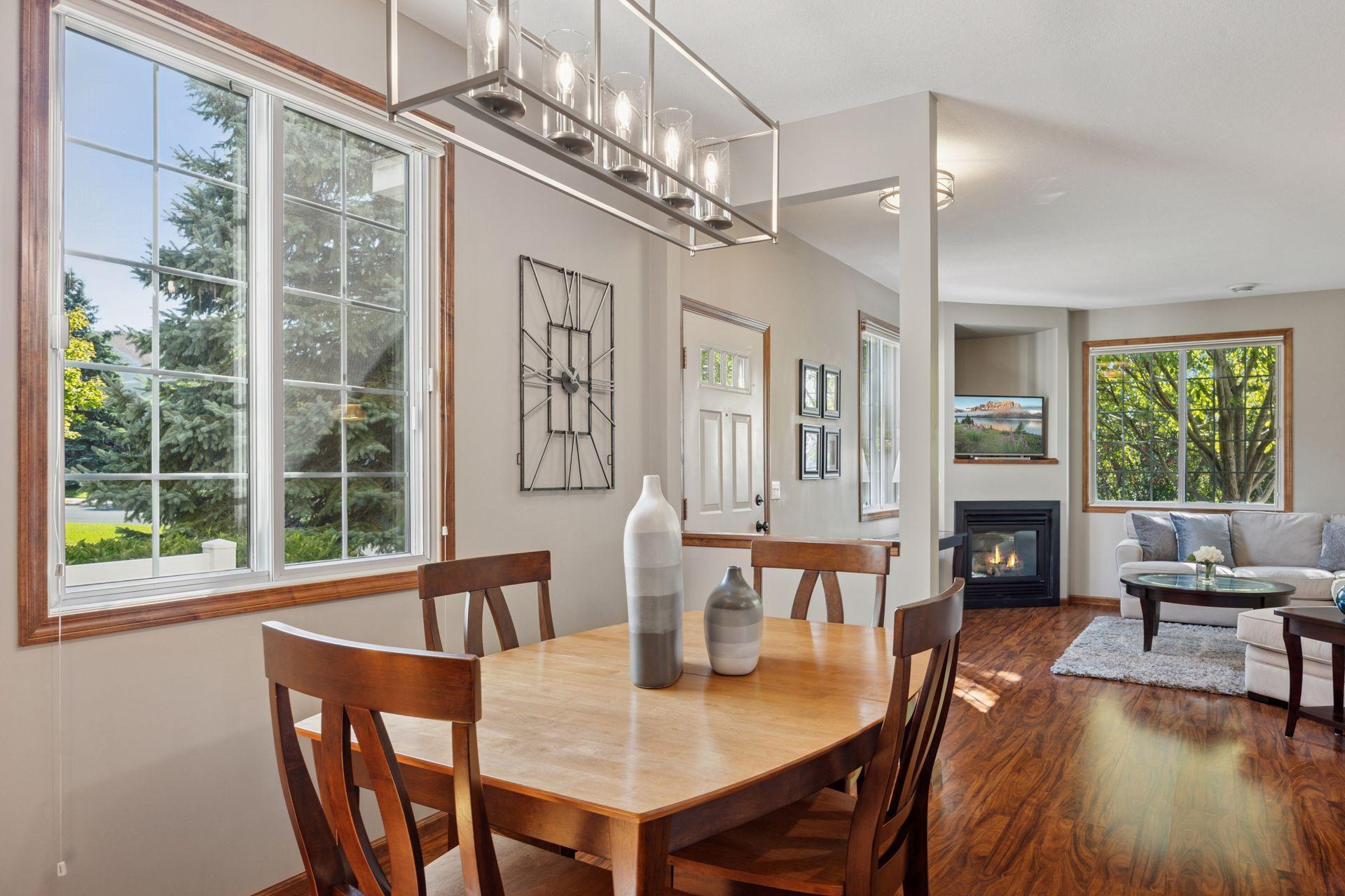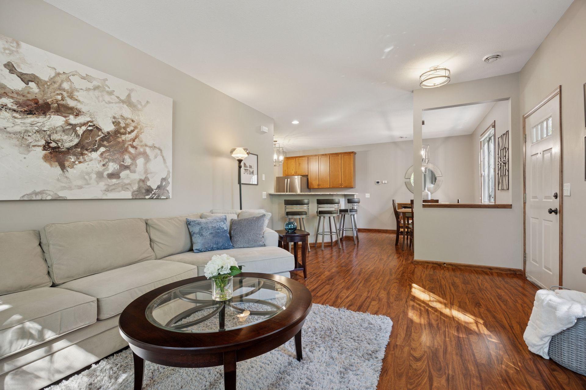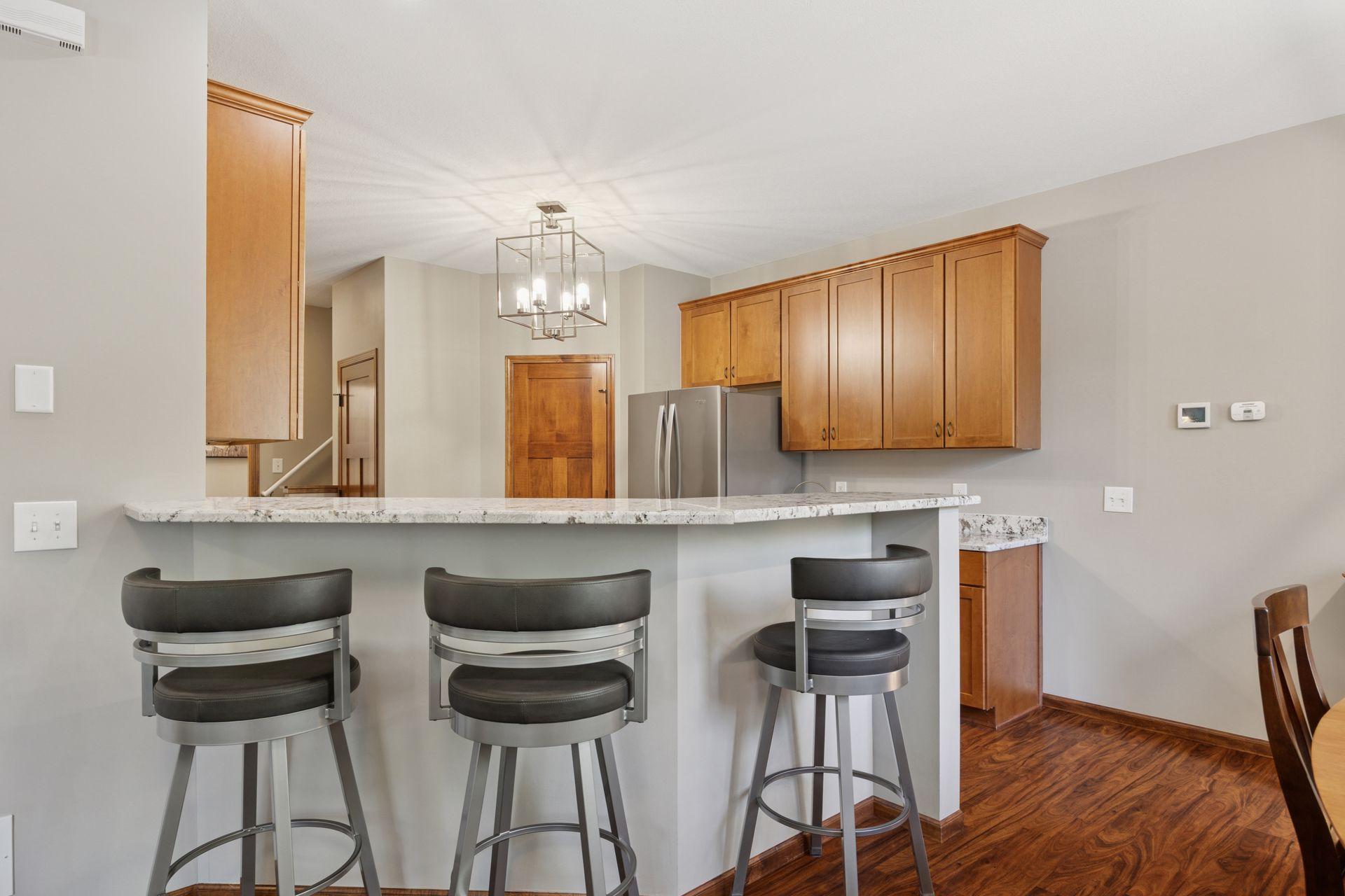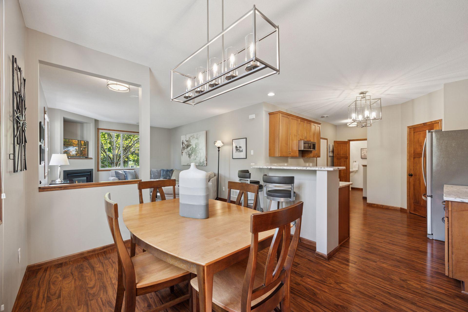 Impeccably maintained end-unit townhome that is sure to impress even the most particular buyers. The kitchen has been beautifully updated with craftsman cabinetry, granite countertops, and stainless steel appliances including a 5-burner gas range. The open-concept main level features laminate wood flooring, updated lighting, and a cozy gas fireplace, creating a warm and inviting space for everyday living and entertaining. A versatile loft offers the perfect bonus area for a home office or media room. The spacious primary walkthrough includes a custom closet and a fully remodeled bathroom designed from top to bottom with modern finishes. Enjoy the privacy of your own patio with views of the surrounding green space, along with the convenience of a large driveway for extra parking. With thoughtful updates throughout—including doors, fixtures, and finishes—this home combines low-maintenance living with stylish upgrades in a desirable end-unit setting with wooded views across the street.