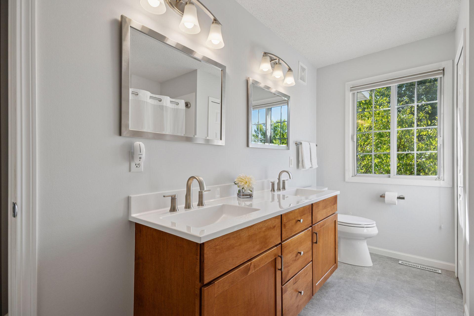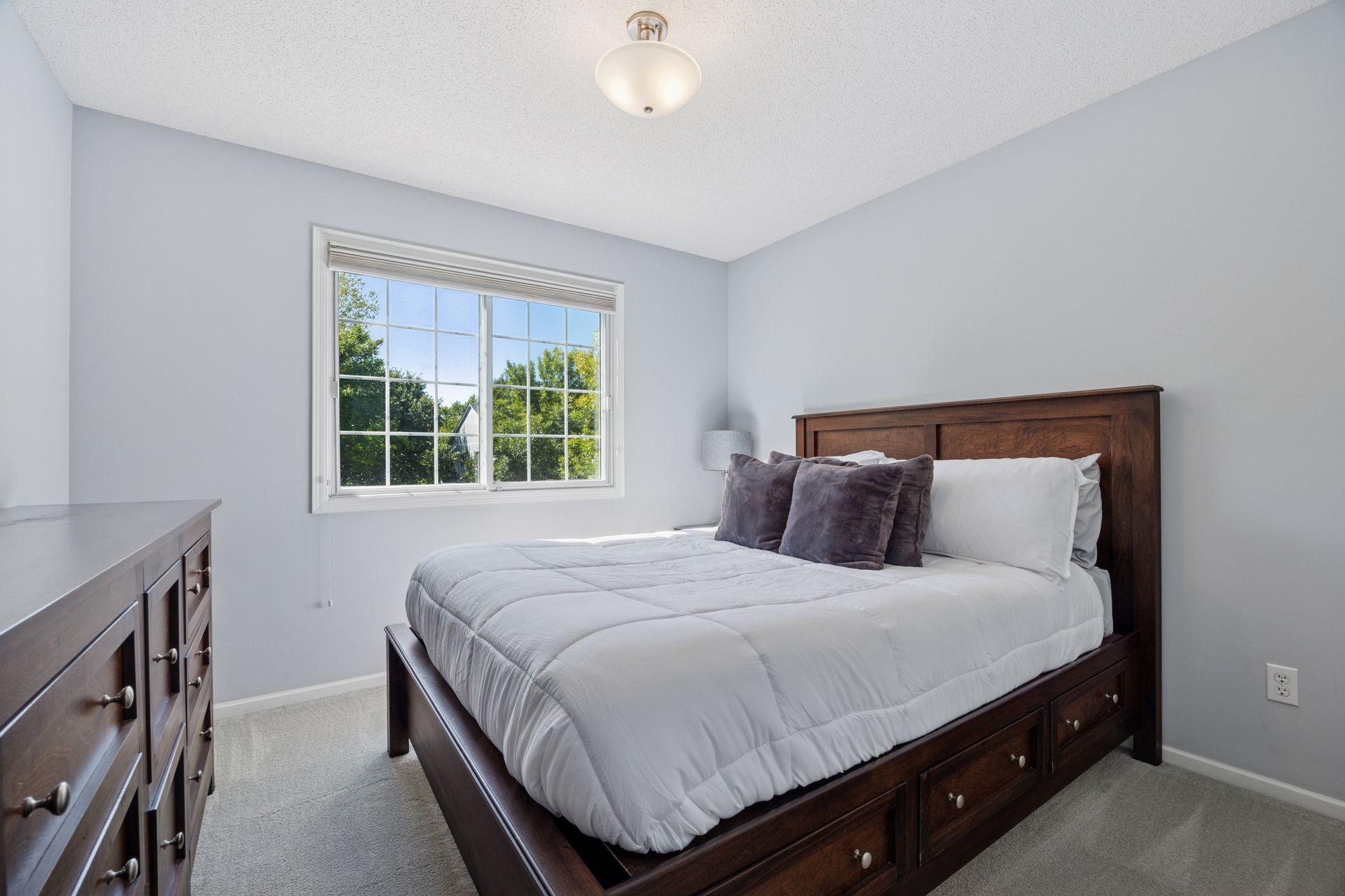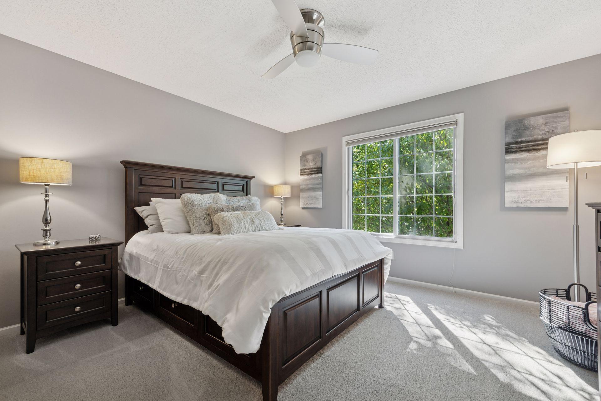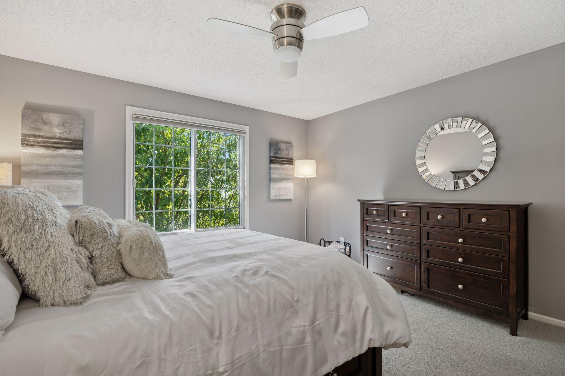 Impeccably maintained end-unit townhome that is sure to impress even the most particular buyers. The kitchen has been beautifully updated with craftsman cabinetry, granite countertops, and stainless steel appliances including a 5-burner gas range. The open-concept main level features laminate wood flooring, updated lighting, and a cozy gas fireplace, creating a warm and inviting space for everyday living and entertaining. A versatile loft offers the perfect bonus area for a home office or media room. The spacious primary walkthrough includes a custom closet and a fully remodeled bathroom designed from top to bottom with modern finishes. Enjoy the privacy of your own patio with views of the surrounding green space, along with the convenience of a large driveway for extra parking. With thoughtful updates throughout—including doors, fixtures, and finishes—this home combines low-maintenance living with stylish upgrades in a desirable end-unit setting with wooded views across the street.