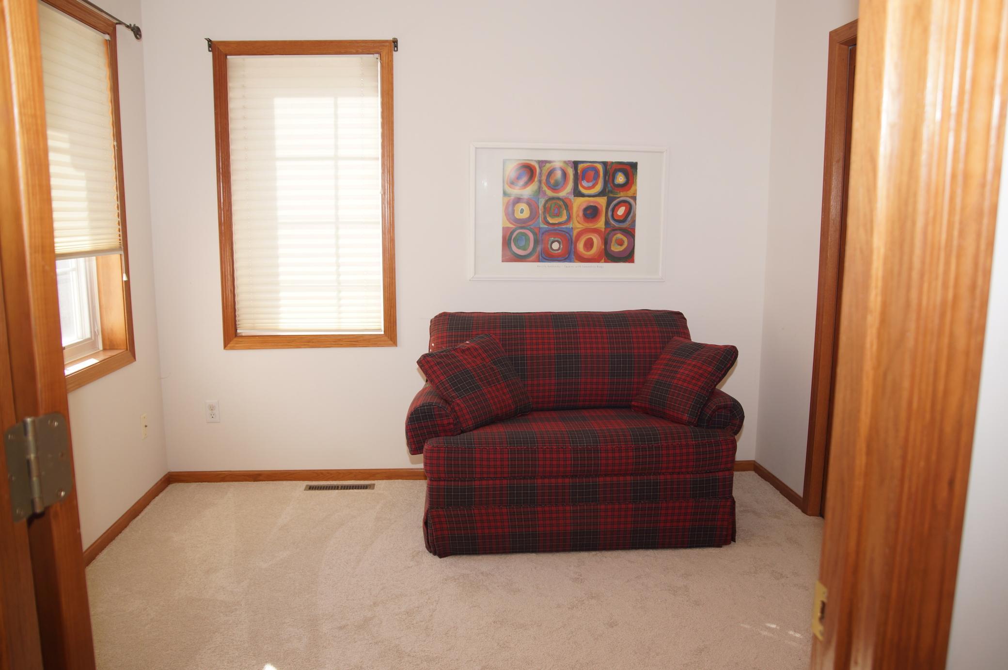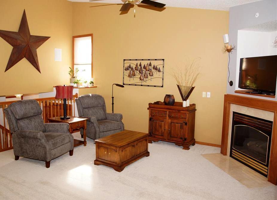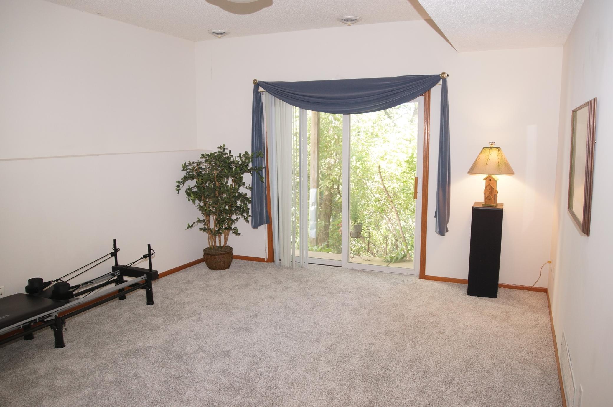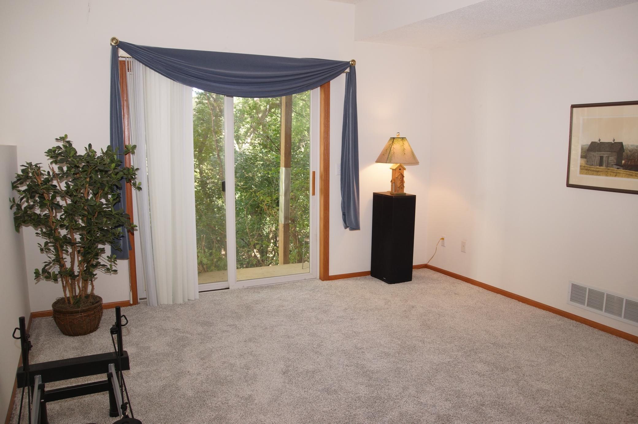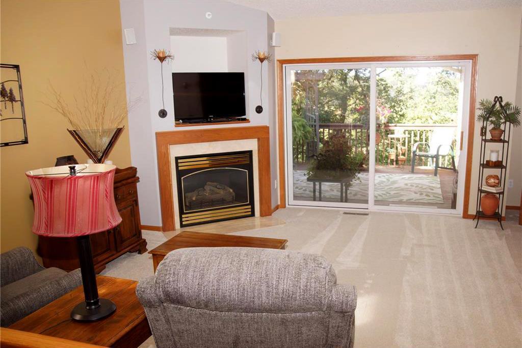 Beautiful end-unit townhome in mint condition with views of Purgatory Creek, Purgatory Park, and the wildlife preserve. Main and upper levels feature brand-new carpeting. The vaulted living room with gas fireplace opens to a formal dining area, four-season porch, and deck highlighting the natural setting. Kitchen includes quality updates, while surround sound, French doors, and security system add convenience. Upstairs offers a spacious primary suite with vaulted ceiling, large walk-in closet, and updated bath with dual vanities, soaking tub, and separate shower, plus a second bedroom. Walkout lower level includes a large amusement room, private guest bedroom, and full bath—ideal for visitors or office. Step outside to the patio for secluded spot. Newer mechanicals and thoughtful finishes make this move-in ready home a rare opportunity near Purgatory Park.