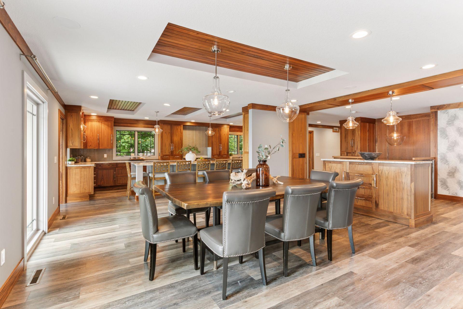 Commanding Views of Wayzata Bay! Discover this stunning Woodland walkout rambler, perfectly situated on over an acre of pristine land with 105 feet of hard-bottom lakeshore on Lake Minnetonka's coveted Wayzata Bay. You'll enjoy breathtaking views from every angle. The luxurious interiors feature rich walnut, intricate ceilings, and expansive stone, creating an elegant and welcoming ambiance throughout. The gourmet chef's kitchen comes complete with a 14-foot island, Viking appliances, and endless storage, while the primary suite retreat offers a private balcony with serene lake views. Practical upgrades include a handsome stone paver driveway and a 50-year roof, and the home was fully remodeled in 2018 for modern perfection. The lower level serves as an entertainment hub with a wet bar and stone fireplace, and a secondary laundry adds convenience, ideal for guests. Outside, a private swimming pool offers panoramic views of the lake, surrounded by vibrant mature landscaping, completing this ultimate lakeside living experience.
