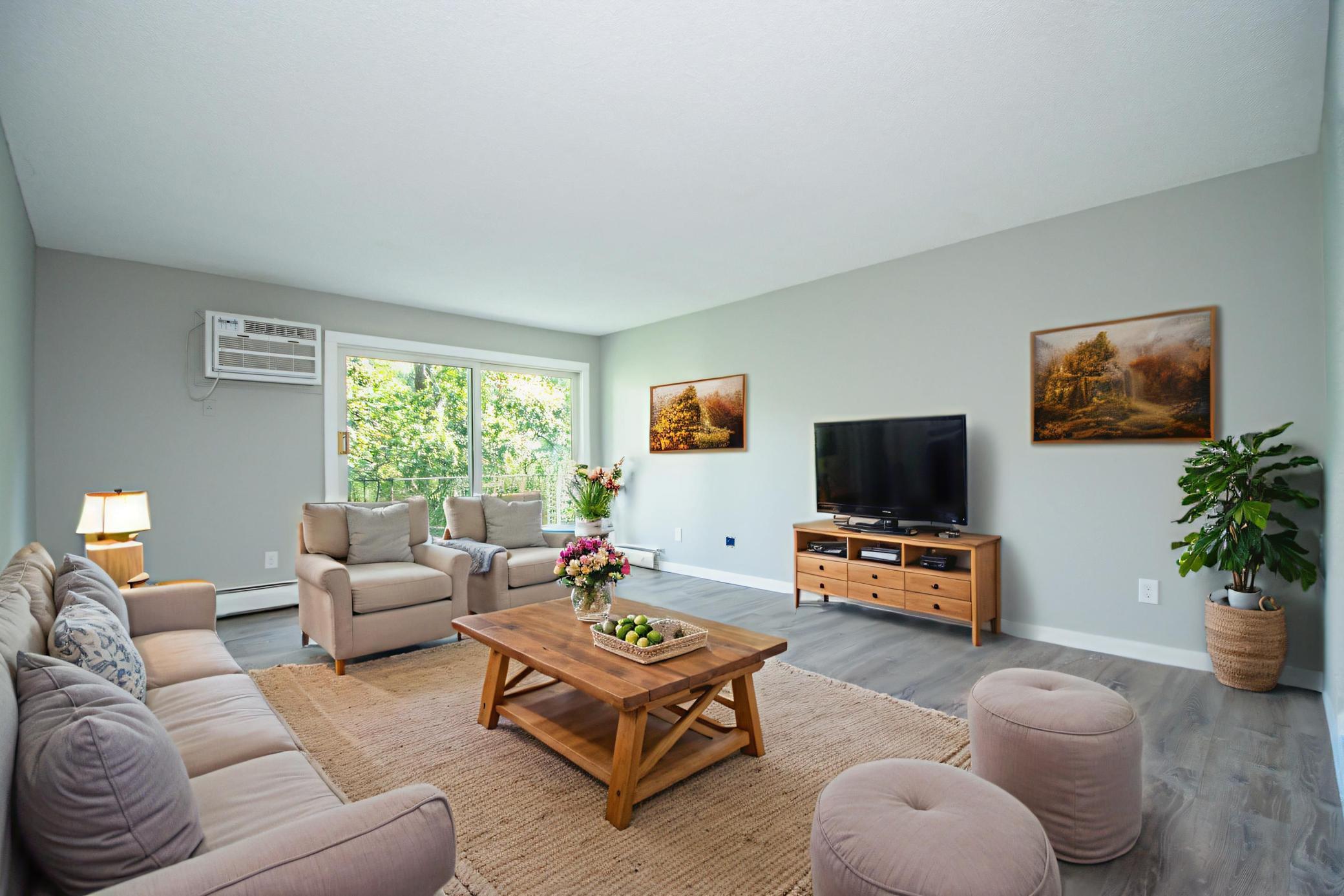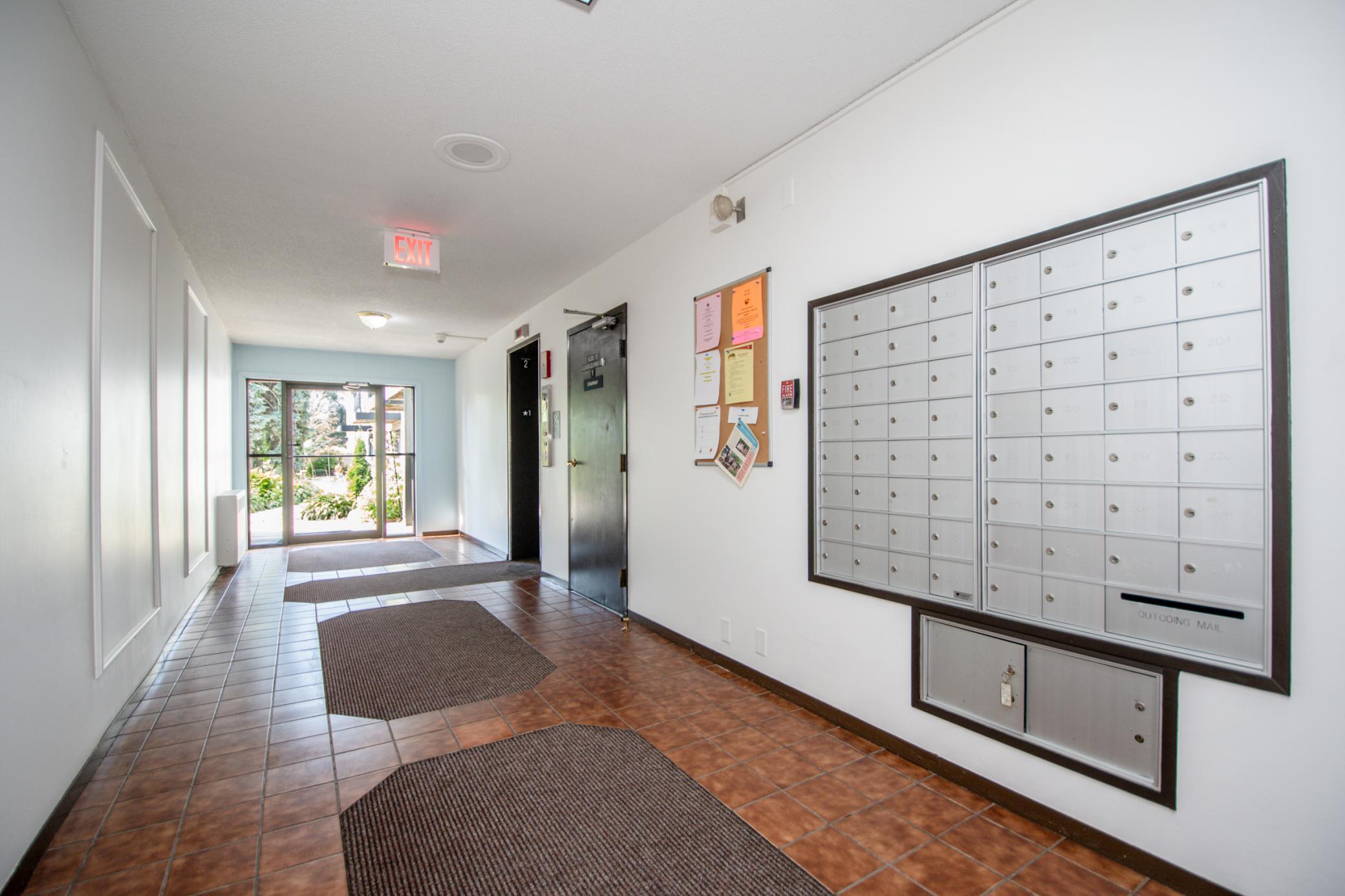 SHOWCASE END UNIT CONDO in Fleur Royale - TURNKEY! Discover this beautifully remodeled, main floor corner/end unit that has been thoughtfully transformed from top to bottom into a modern sanctuary that seamlessly blends indoor comfort with the beauty of the outdoors! Step inside to a crystal clean, warm, and inviting space featuring generous room sizes, a bright and airy floor plan, and oversized windows that flood the home with natural light. The modern kitchen features new stainless steel appliances, granite counters, sleek white cabinetry, and subway tile backsplash. Enjoy an adjacent dining area and expansive living room with walkout to the east facing balcony. The private, covered balcony offers breathtaking scenic views of the woods, wildlife, and treetops - a beautiful site to enjoy morning coffee or dine al fresco. Two spacious bedrooms and a newly renovated full bath complete the floor plan! All living facilities are on one level, with shared laundry in the hallway. Enjoy fantastic on-site amenities including an indoor heated pool, sauna, and hot tub in the unique pool house accessed by an underground tunnel! Plus, a party room, fitness center, workshop, and picnic areas. A underground heated garage stall can be purchased or use the free outdoor lot. Well-maintained grounds, secure building, and an established association. Rentals allowed. Cats only. NEW 2025: flooring, all paint, kitchen and bath remodels. Ultra-convenient location near walking trails, local eats/shops, with easy access to 35E/694/94. Enjoy the best of maintenance-free living in this exceptional home!