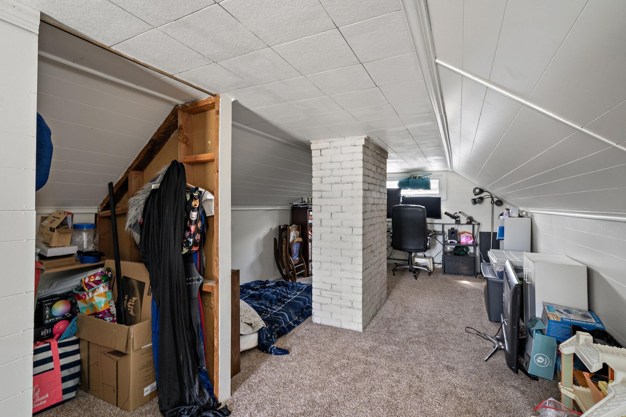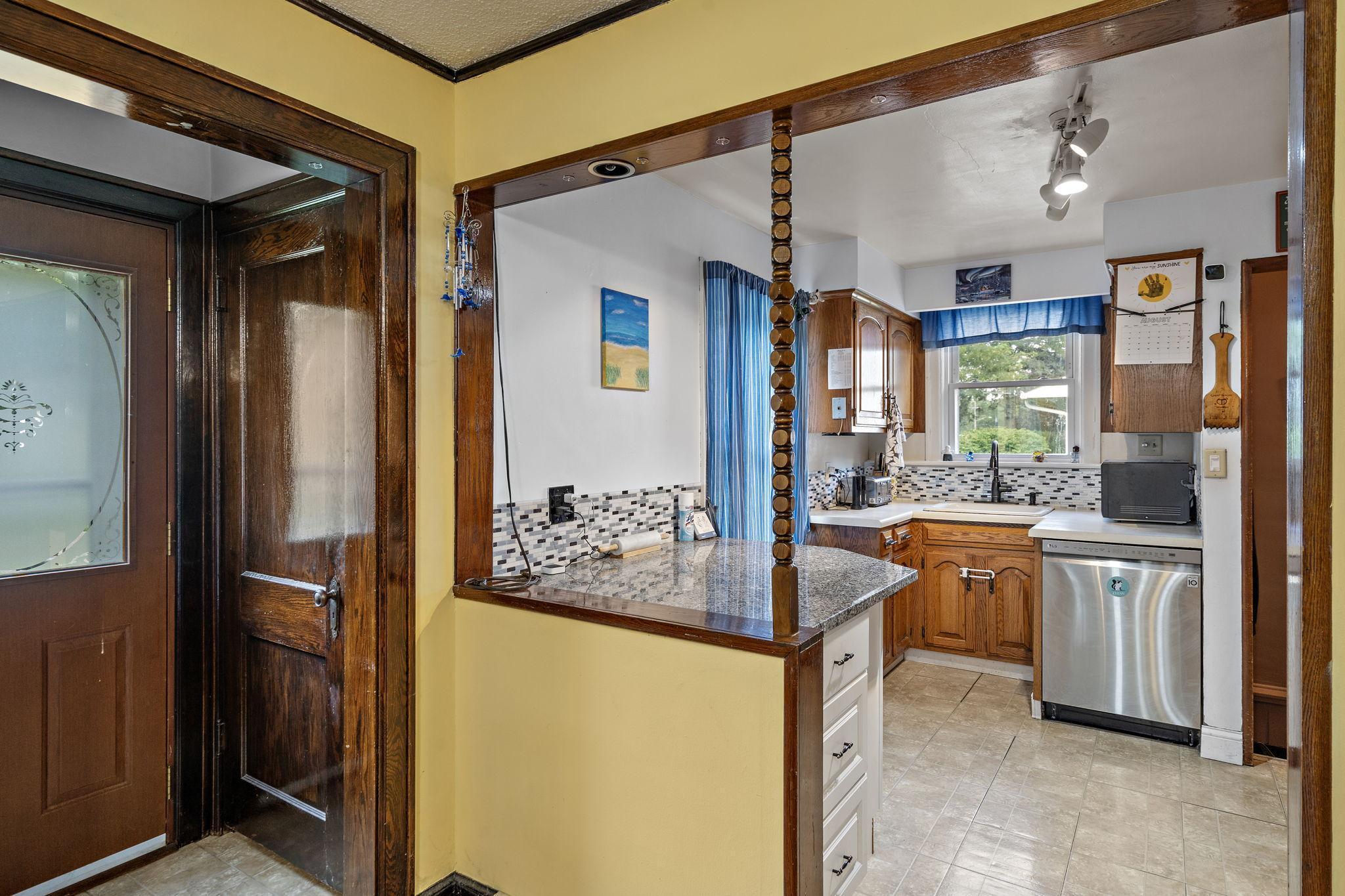 Super cute corner lot in quiet Maplewood neighborhood. This quaint house has charm galore! On the main level there's a nicely appointed kitchen with granite counters, surprising storage and great counter space. The adjoining room can either be a dining room or living room based upon your life style. Continuing on the main level is a huge family room! Two living spaces that can flow together or remain separate. There's a huge bedroom upstairs with loads of storage. The basement already complete with second bathroom and is waiting for your ideas to make it complete! Outside there's a huge back yard with patio, love-seat swing and a storage shed. This quiet, corner lot home has it all at an extremely affordable price!