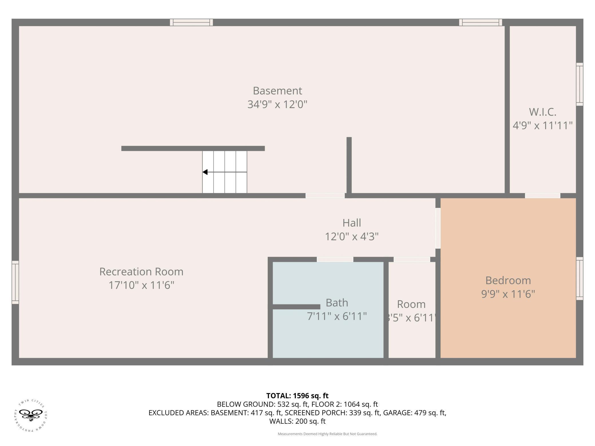 Below Ground Living: 722ft²