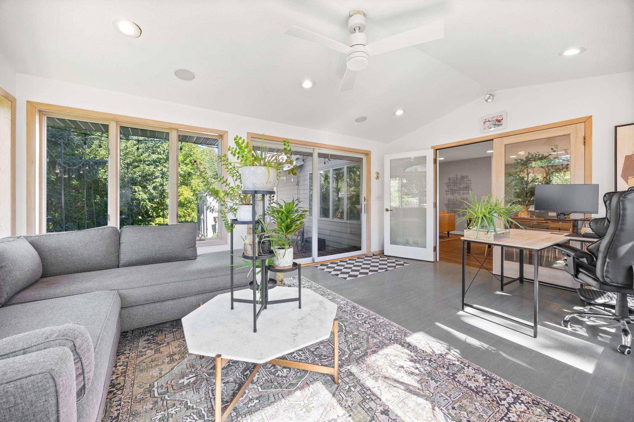 Modern comfort meets effortless convenience at 1925 Hythe Street. Thoughtfully updated and beautifully maintained, this Roseville gem offers the perfect blend of style, comfort, and connection. Nestled on a fully fenced corner lot just minutes from both downtown Minneapolis and St. Paul, with quick access to the airport, two nearby parks, and a dog park for your four-legged friend, this home makes everyday living easy and inspiring. The open kitchen with quartz countertops, large island, and wine bar flows seamlessly into bright, welcoming spaces ideal for entertaining. A stunning 4-season sun porch invites year-round relaxation, while the west-facing deck and mature trees create a private outdoor retreat. Enjoy main-floor living with spacious bedrooms, a serene primary suite, and a cozy gas fireplace surrounded by built-ins. Whether you’re downsizing, just starting out, or seeking a place to host and unwind, 1925 Hythe Street delivers a lifestyle you’ll love coming home to.