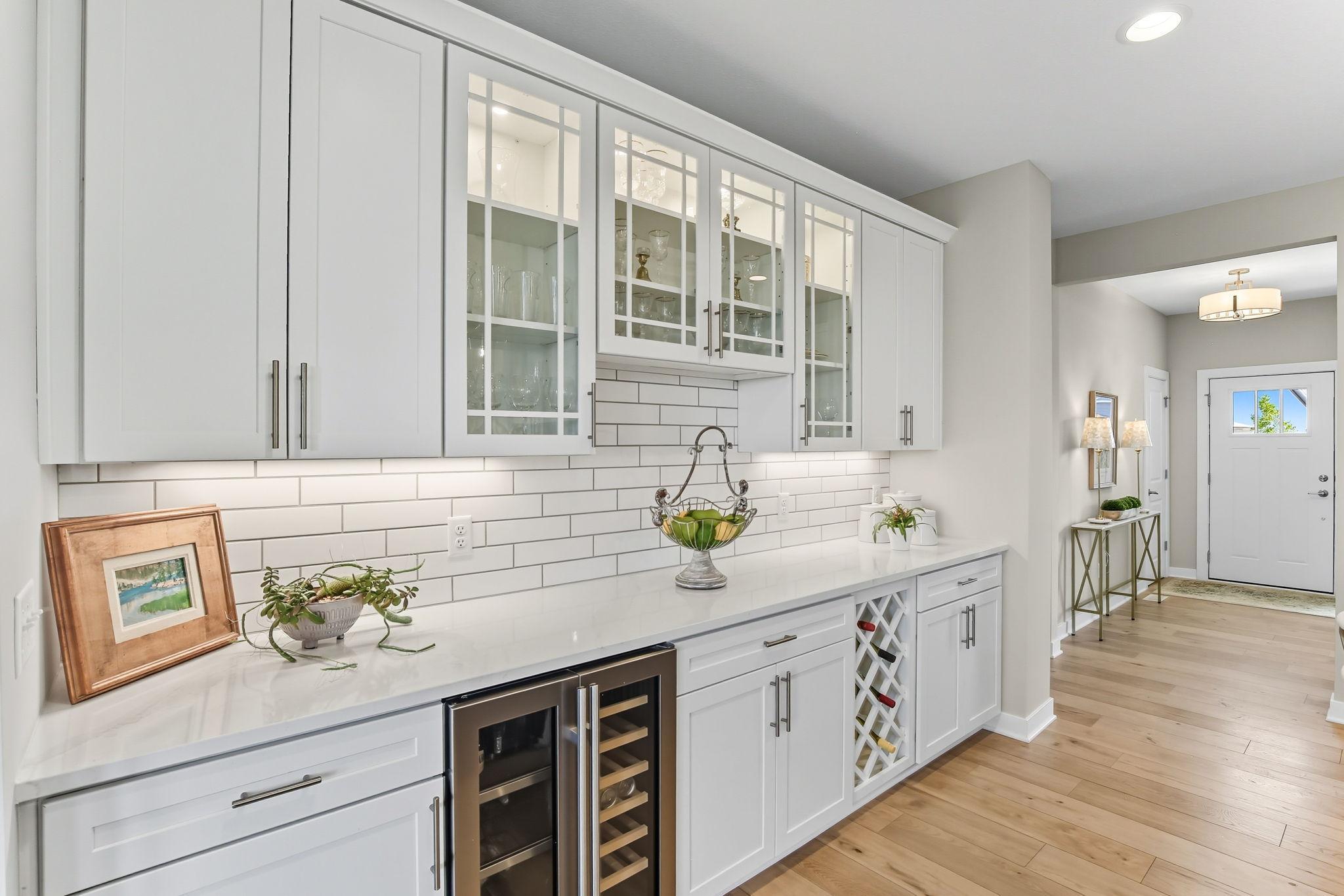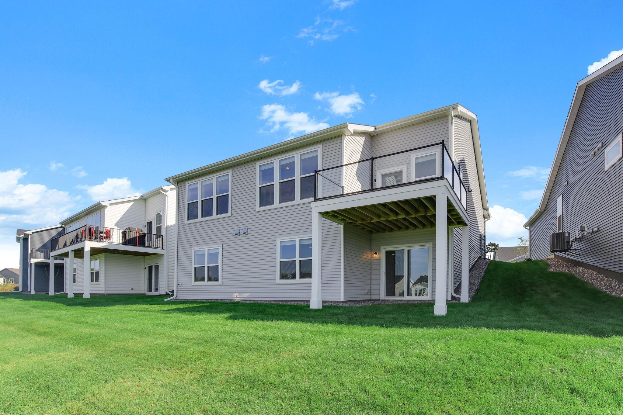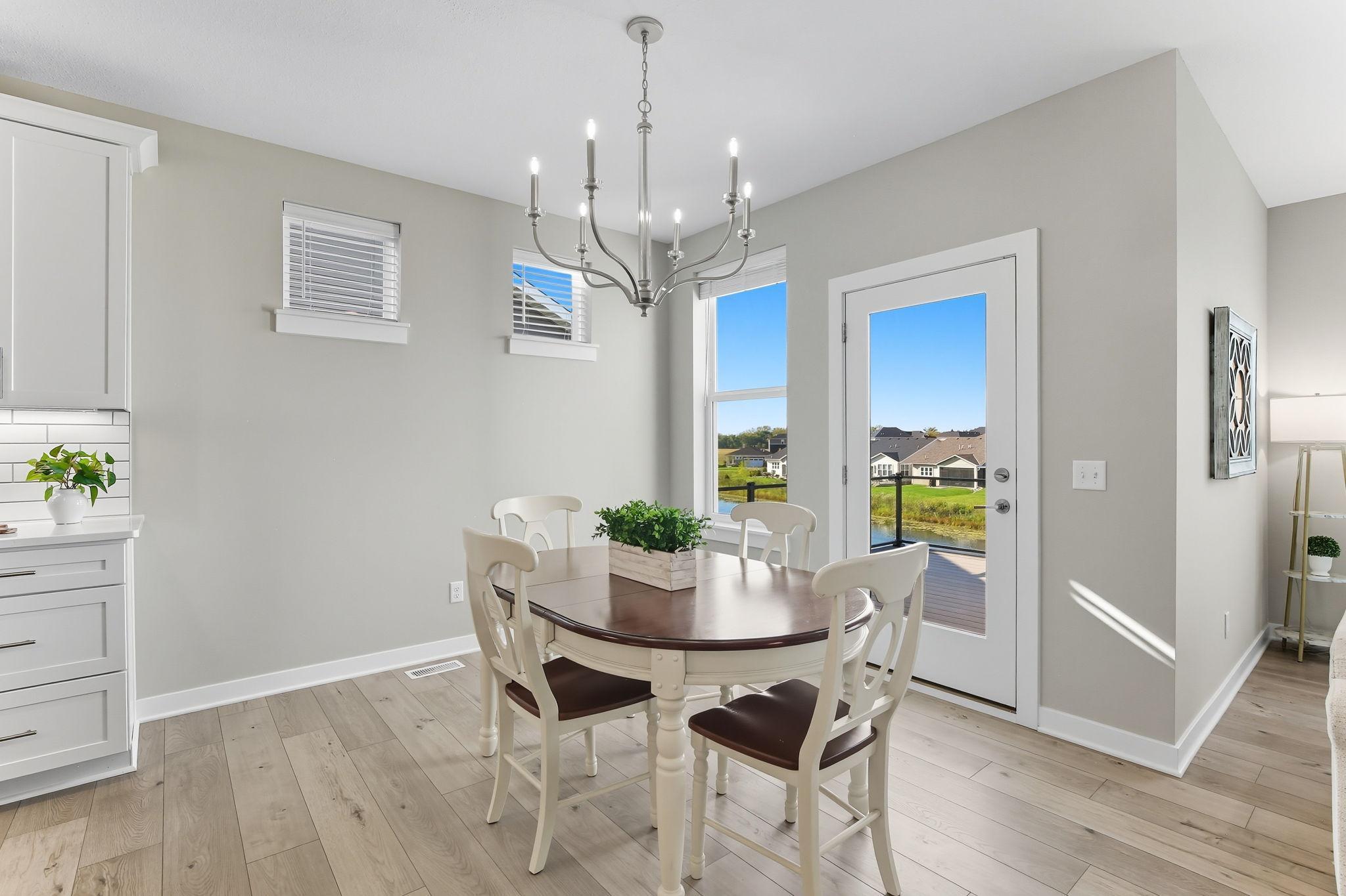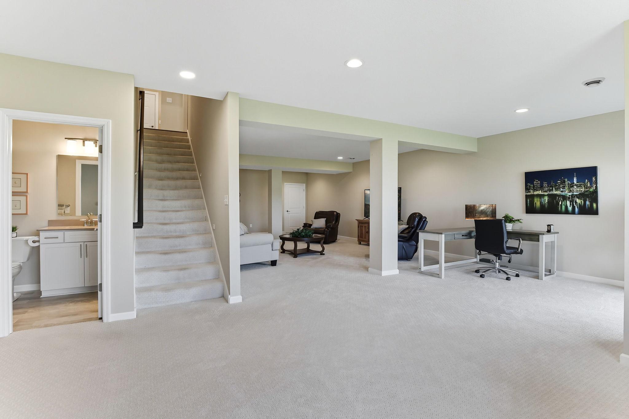 Wonderful 2023 built One level living opportunity nestled in the desirable "Bellwether by Del Webb 55+ Community"! Designed for truly one level easy living, on a premium lot with views of the pond and nature. This spacious Castlerock floor plan offers many upgrades including the stunning kitchen with a built-in beverage wall, a large center island, quartz countertops, abundant cabinetry and pantry, SS appliances and more. The main floor also offers 2 bedrooms, 2 bathrooms and a den, including a lovely primary bedroom with a private bath & walk-in closet and laundry closet across the hall. The oversized finished lower level is a walk out and has a 3rd bedroom & full bath. The large open spaces in the lower level offer many opportunities for gathering, entertaining, a home office or exercise area. Use your imagination and make it your own! This resort style community offers a variety of amenities from lounging by the indoor or outdoor swimming pool, using the fitness center, to playing in a game of pickleball or tennis. The lovely Prairie Club Center community building and surrounding space are a wonderful place to gather and get to know your neighbors by joining a variety of clubs!