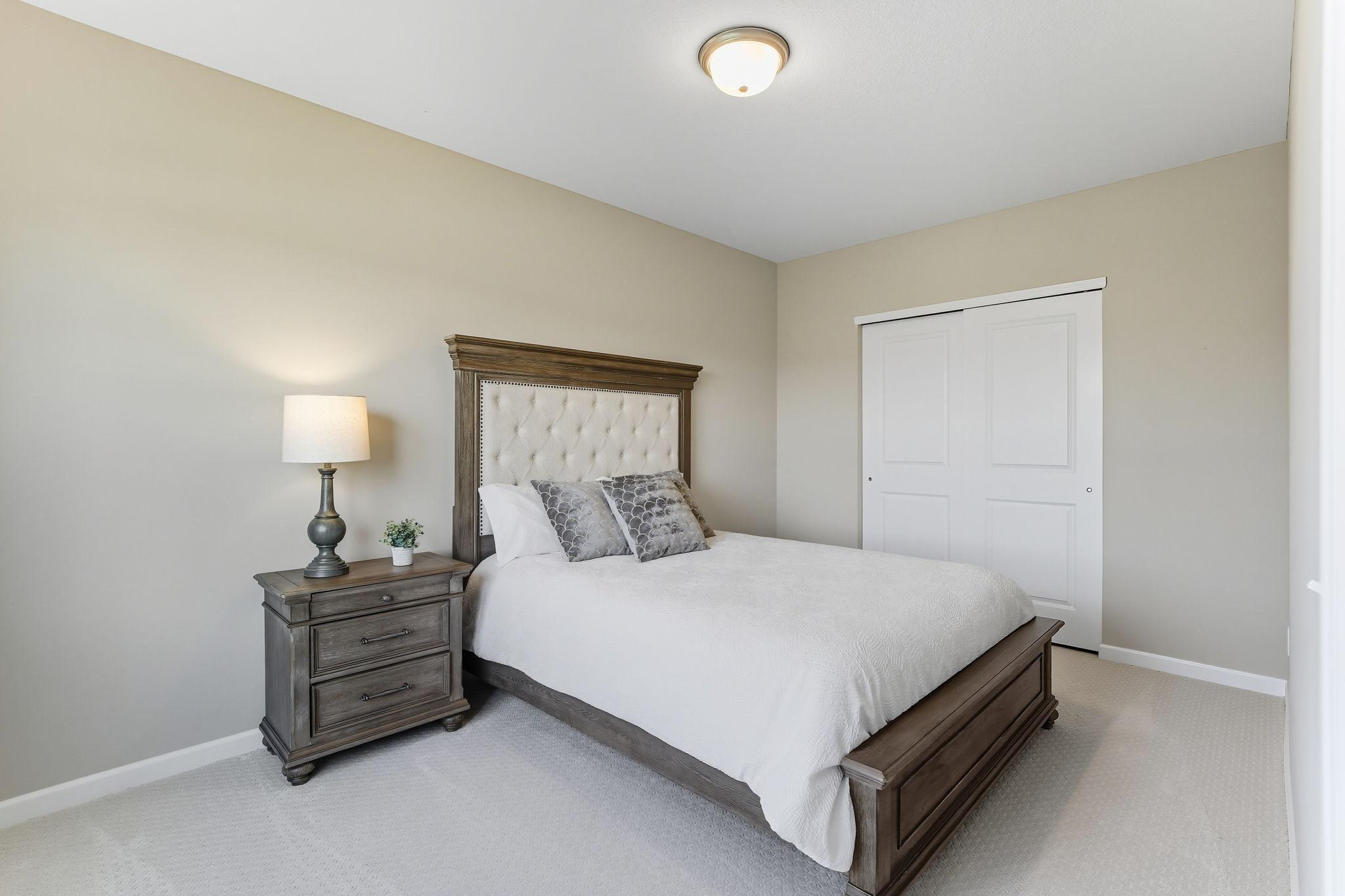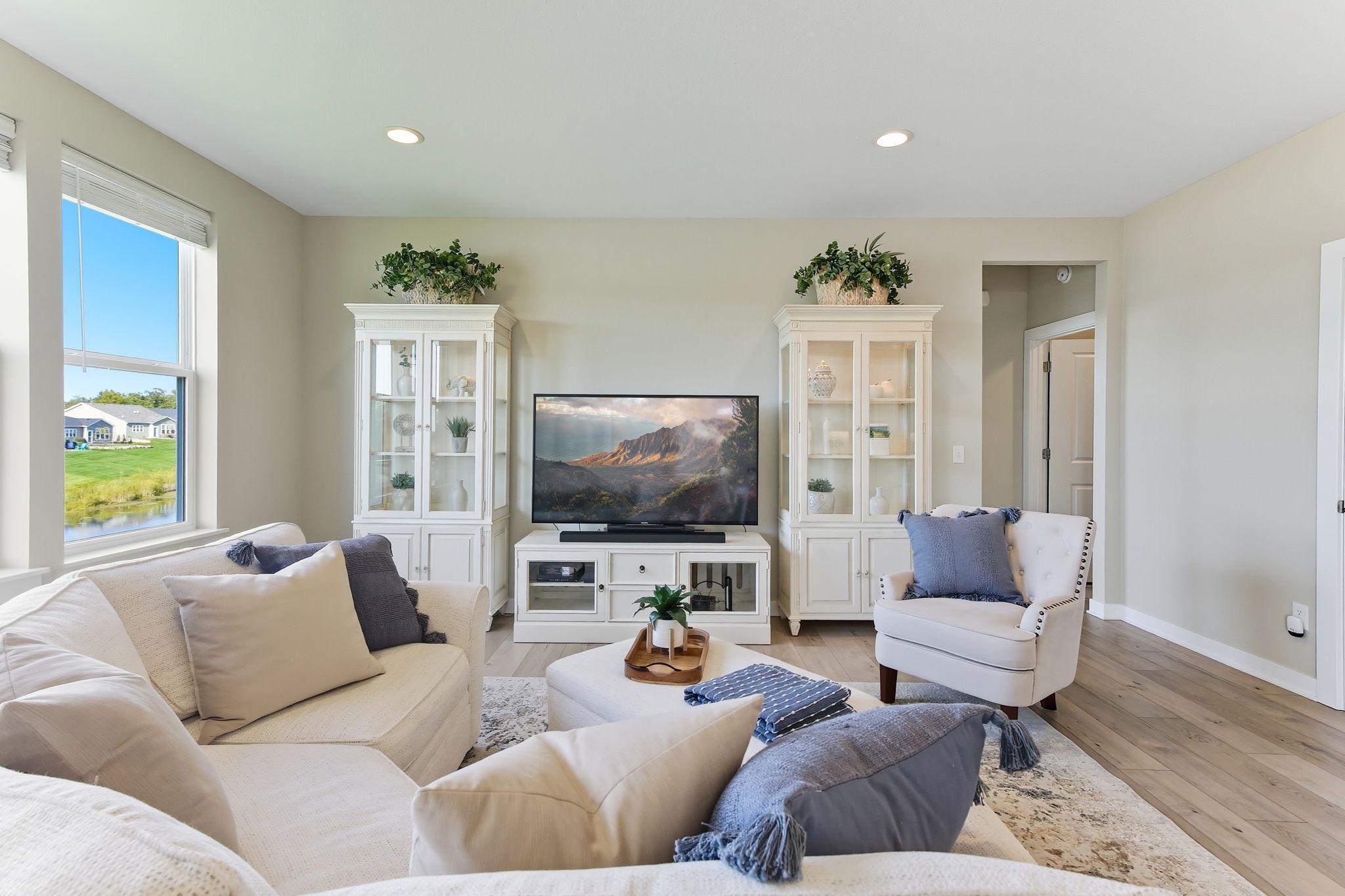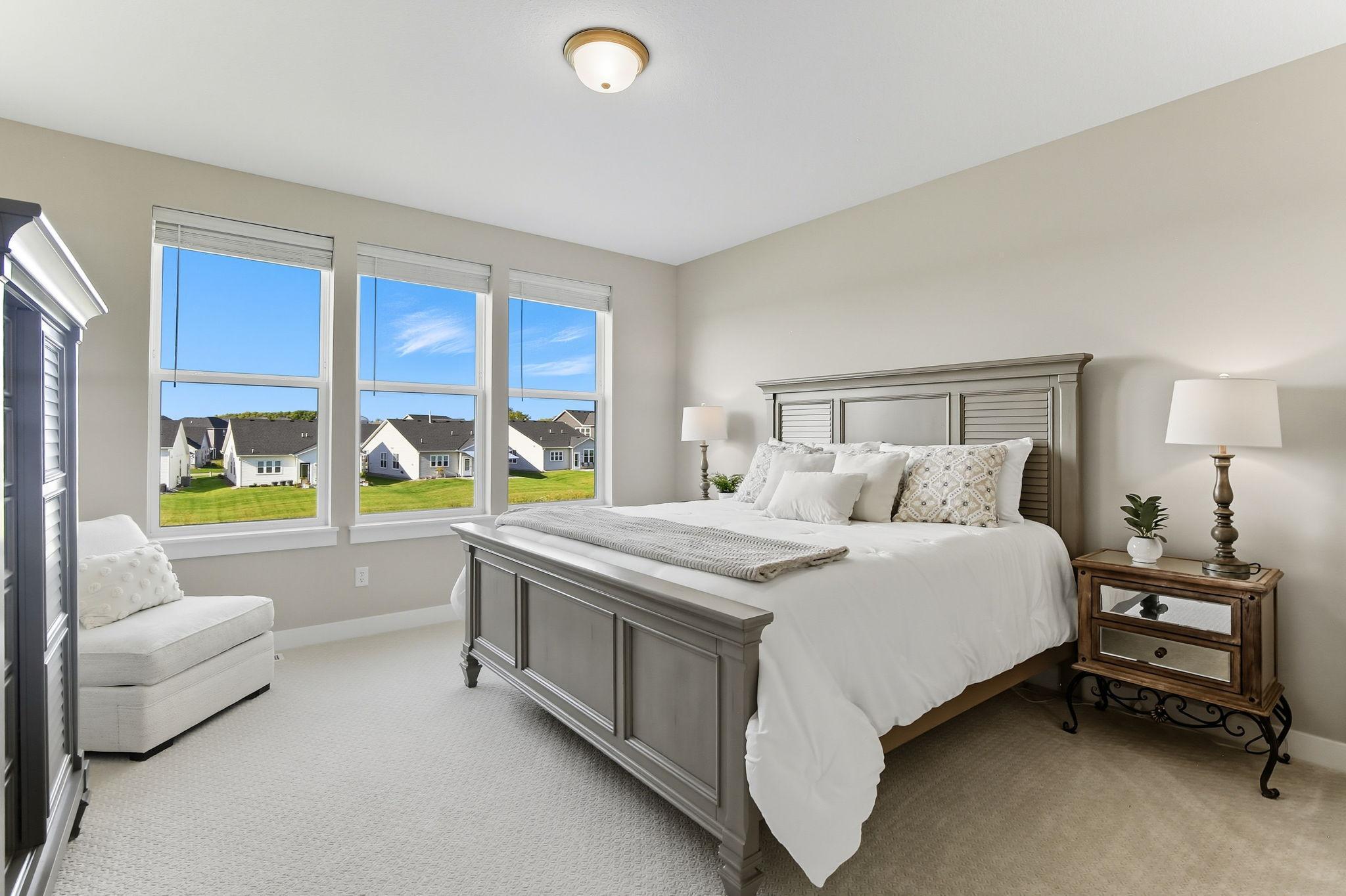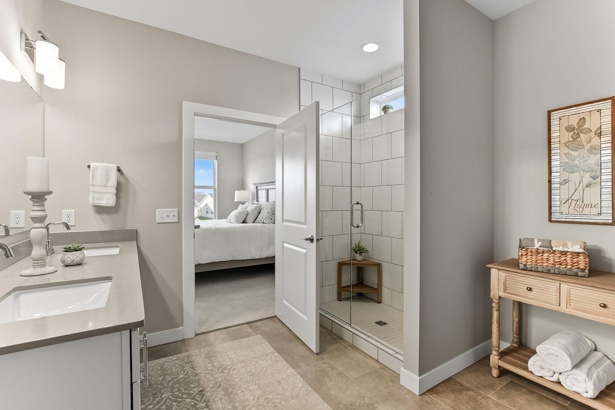 Wonderful 2023 built One level living opportunity nestled in the desirable "Bellwether by Del Webb 55+ Community"! Designed for truly one level easy living, on a premium lot with views of the pond and nature. This spacious Castlerock floor plan offers many upgrades including the stunning kitchen with a built-in beverage wall, a large center island, quartz countertops, abundant cabinetry and pantry, SS appliances and more. The main floor also offers 2 bedrooms, 2 bathrooms and a den, including a lovely primary bedroom with a private bath & walk-in closet and laundry closet across the hall. The oversized finished lower level is a walk out and has a 3rd bedroom & full bath. The large open spaces in the lower level offer many opportunities for gathering, entertaining, a home office or exercise area. Use your imagination and make it your own! This resort style community offers a variety of amenities from lounging by the indoor or outdoor swimming pool, using the fitness center, to playing in a game of pickleball or tennis. The lovely Prairie Club Center community building and surrounding space are a wonderful place to gather and get to know your neighbors by joining a variety of clubs!