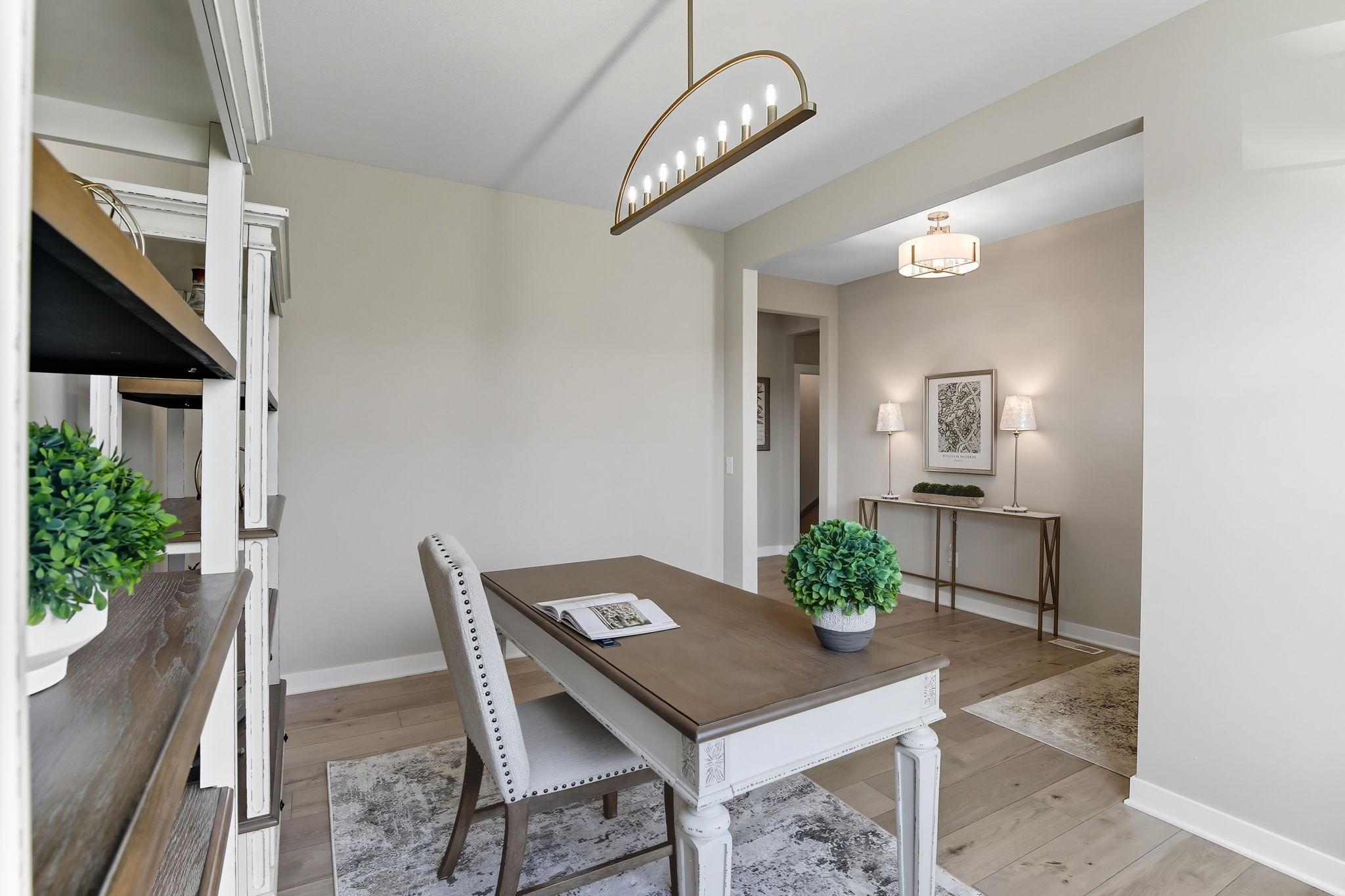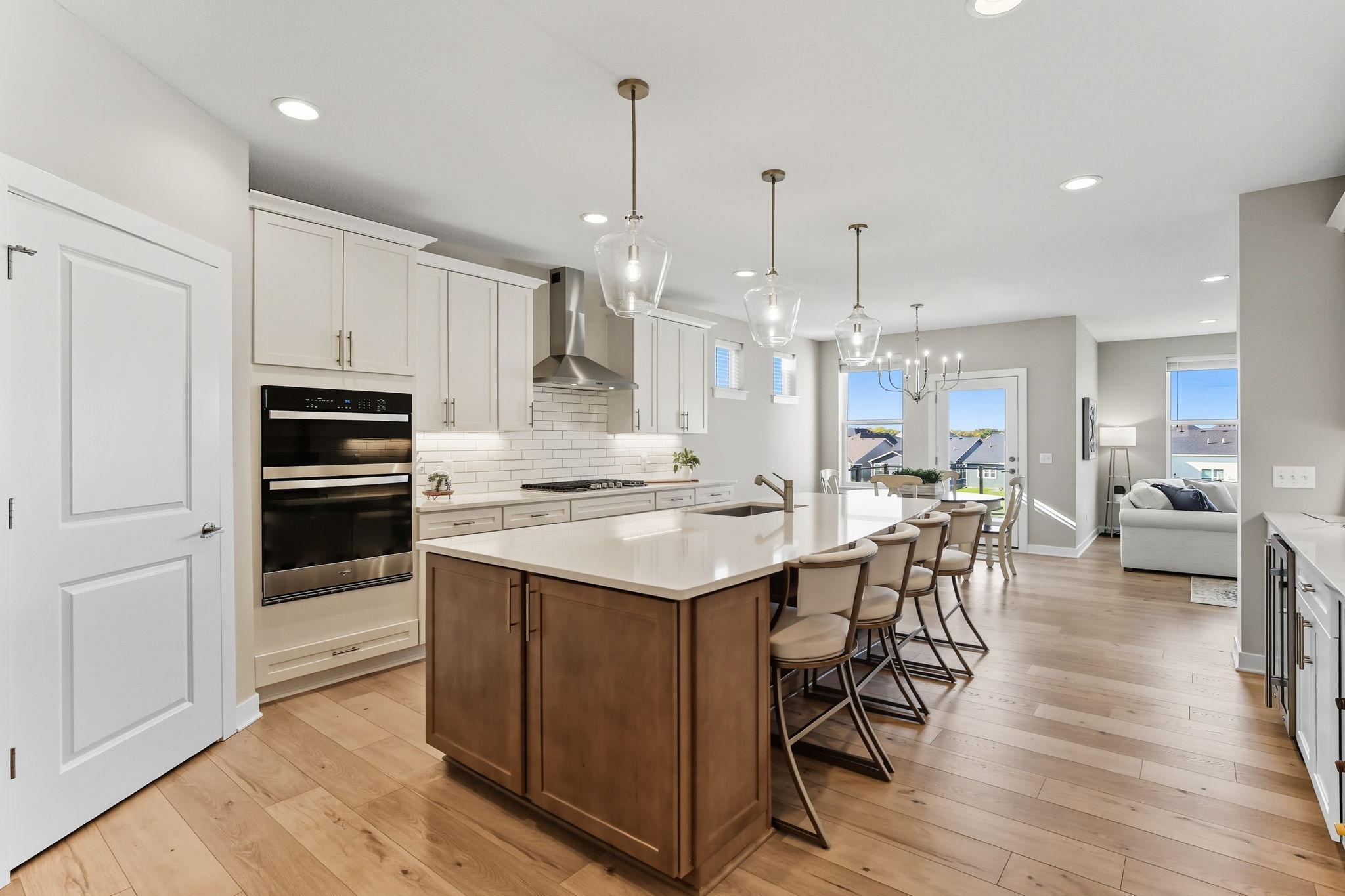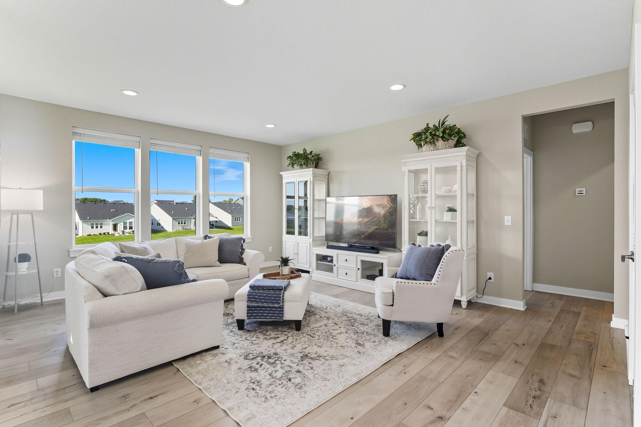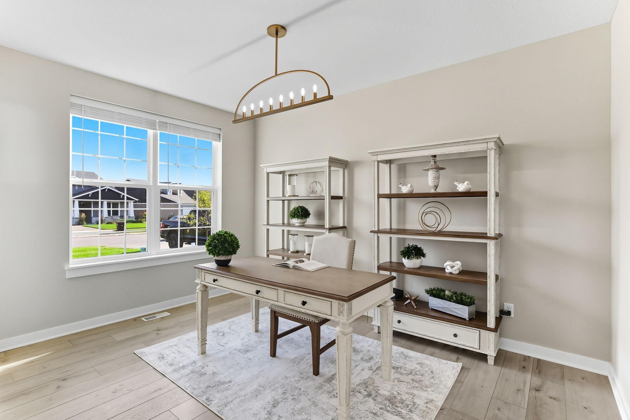 Wonderful 2023 built One level living opportunity nestled in the desirable "Bellwether by Del Webb 55+ Community"! Designed for truly one level easy living, on a premium lot with views of the pond and nature. This spacious Castlerock floor plan offers many upgrades including the stunning kitchen with a built-in beverage wall, a large center island, quartz countertops, abundant cabinetry and pantry, SS appliances and more. The main floor also offers 2 bedrooms, 2 bathrooms and a den, including a lovely primary bedroom with a private bath & walk-in closet and laundry closet across the hall. The oversized finished lower level is a walk out and has a 3rd bedroom & full bath. The large open spaces in the lower level offer many opportunities for gathering, entertaining, a home office or exercise area. Use your imagination and make it your own! This resort style community offers a variety of amenities from lounging by the indoor or outdoor swimming pool, using the fitness center, to playing in a game of pickleball or tennis. The lovely Prairie Club Center community building and surrounding space are a wonderful place to gather and get to know your neighbors by joining a variety of clubs!