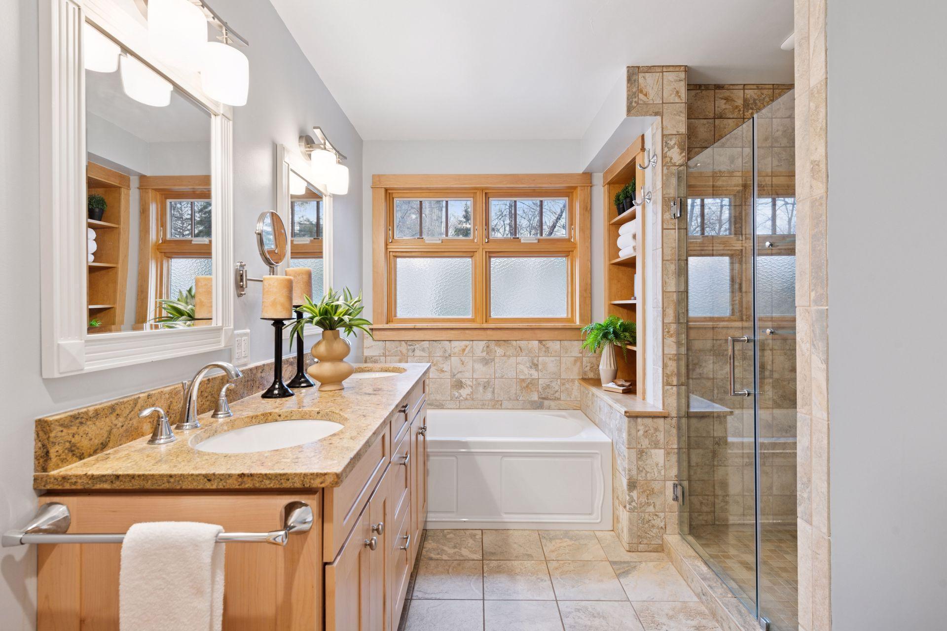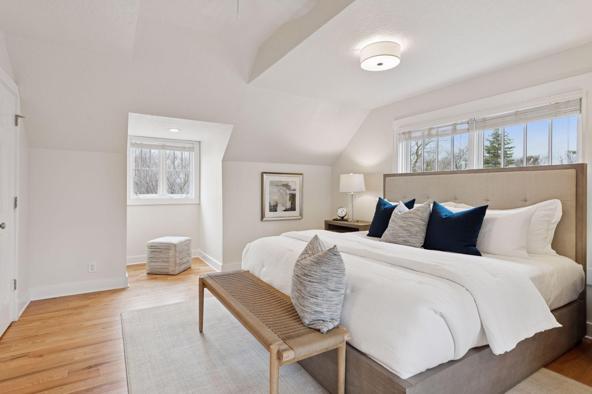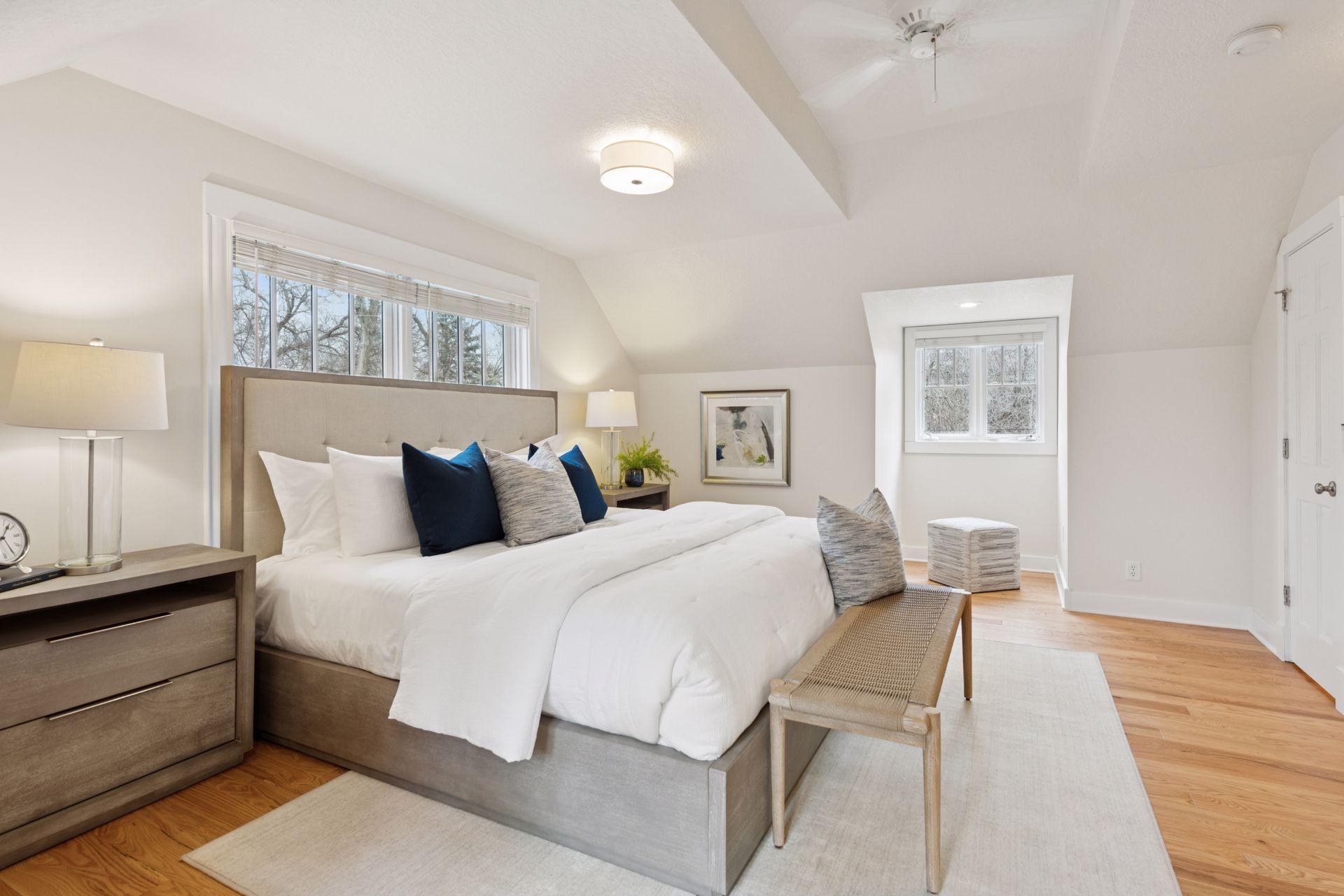 Spectacular Cape Cod influenced masterpiece nestled on a manicured treed yard in the heart of Deephaven! Open main floor features a welcoming foyer with polished oak floors! Informal lounge area with built ins! Grand sized great room with walls of sun-filled windows, built ins, brick wood-burning fireplace and oak floors! Spacious chef’s gourmet kitchen with custom cabinetry, double wall ovens, granite counters, large center island, high-end stainless appliances and a cozy hearth room with gas fireplace! Main floor bedroom suite with walk-in closet and private full bath and jetted jacuzzi tub, finished with upgraded ceramic tile and heated floors! Main floor laundry and mud room with custom built ins and maple cabinetry! The second floor offers an additional spacious bedroom with adjacent loft/sitting room, private double sink bath finished with high-end appointments! Also on the second floor is an additional generously sized bedroom with walk-in closet! The walk-out lower level features a family room with cozy stone fireplace, game area, built ins, exercise room and area with storage lockers! Step outside on the deck, covered porch or blue stone patios to an over a ½ acre of secluded sight lines, with a fenced back yard with numerous hardy perennial gardens and colorful mature blossoming trees! A perfect gardening shed with A/C and a wood shed to supply the two high efficiency wood burning fireplaces! This home has countless upgrades and quality fit and finishes! Double attached garage with new epoxy coated floor! Great low traffic end of the cul-de-sac location! Modern Wi-Fi based tech and energy efficiency of every appliance and mechanical system in the home. Modern well (70 psi delivered to all points of use at one time) and water treatment system. A short distance to Deephaven Elementary and Minnetonka Schools!