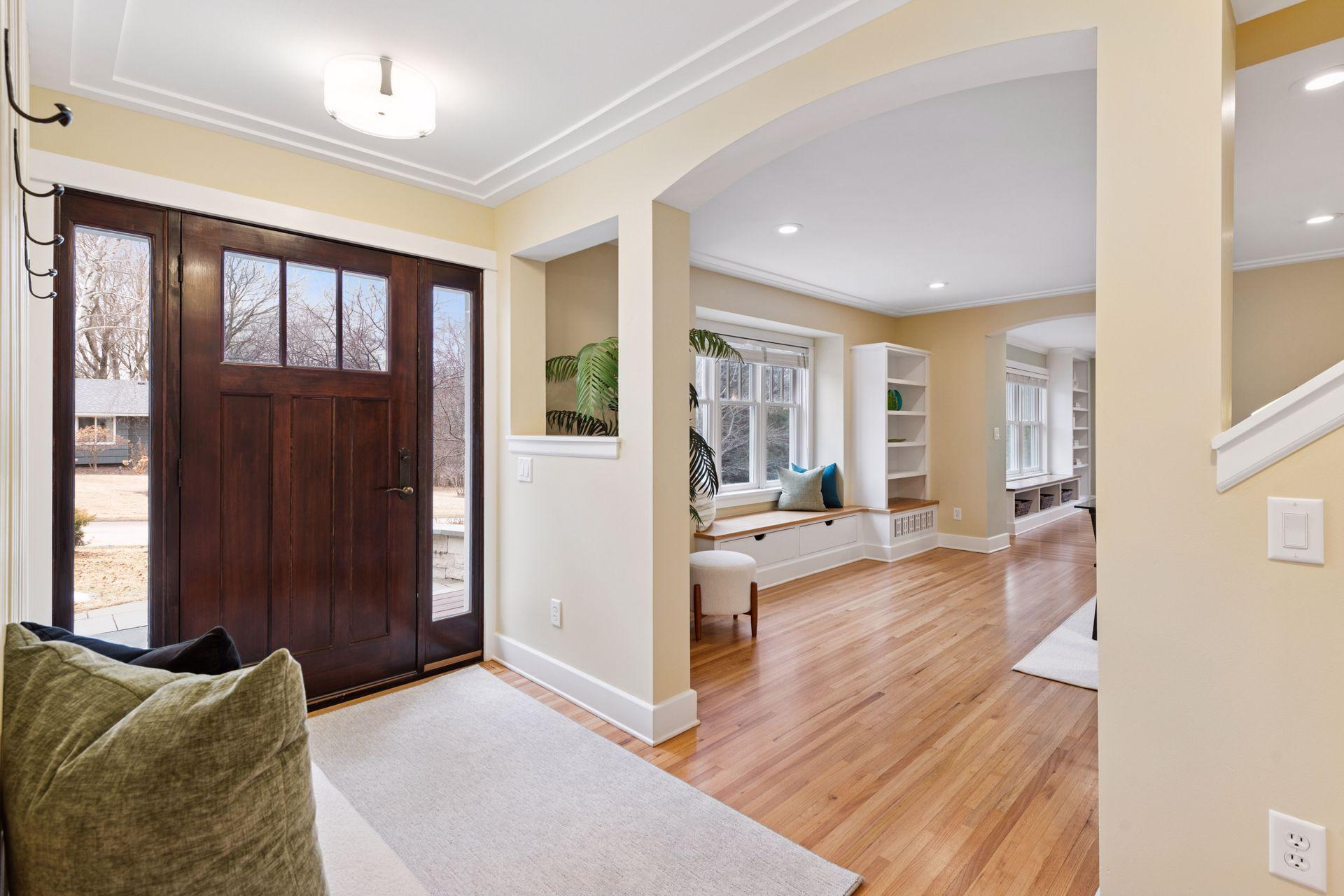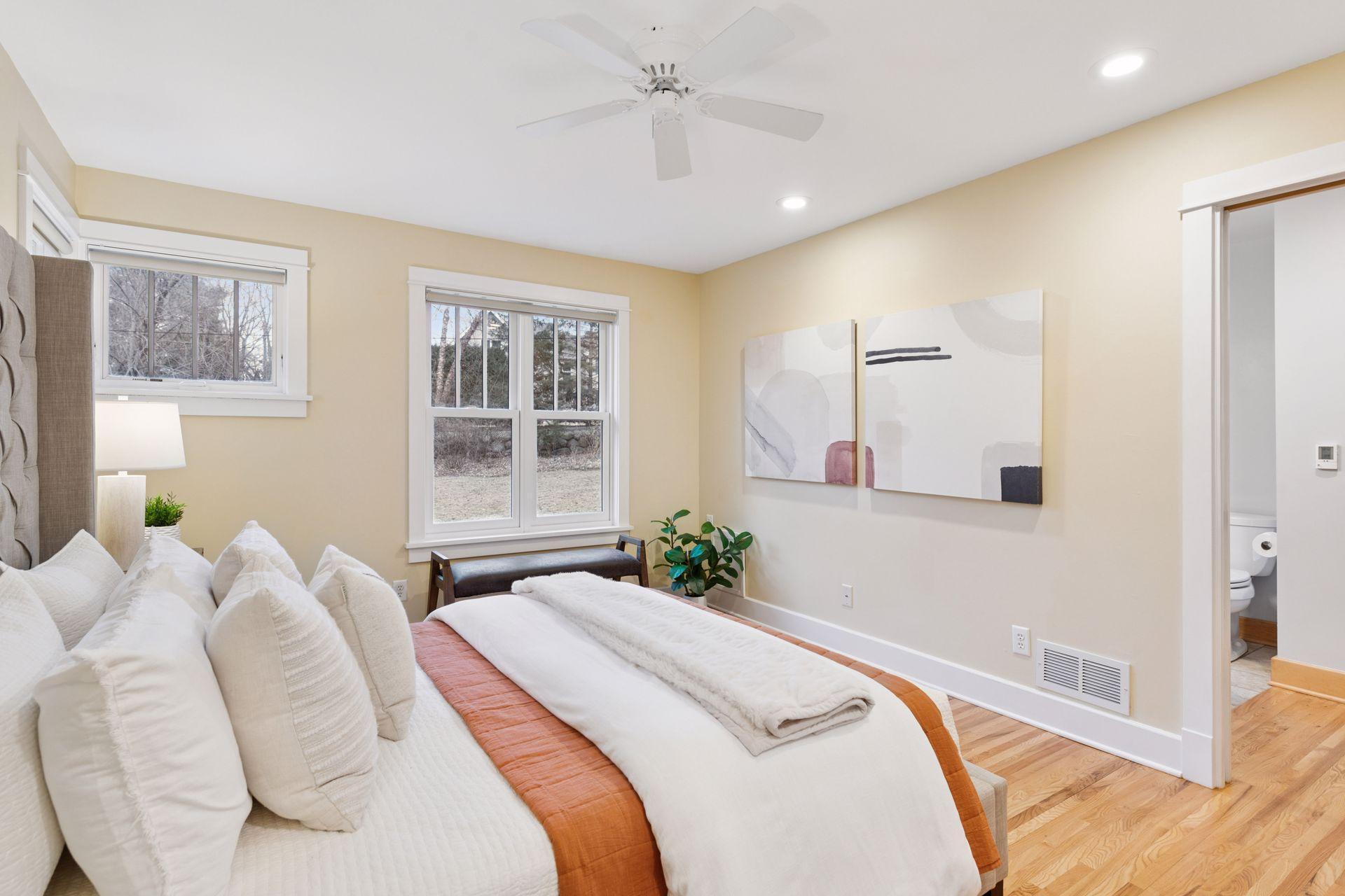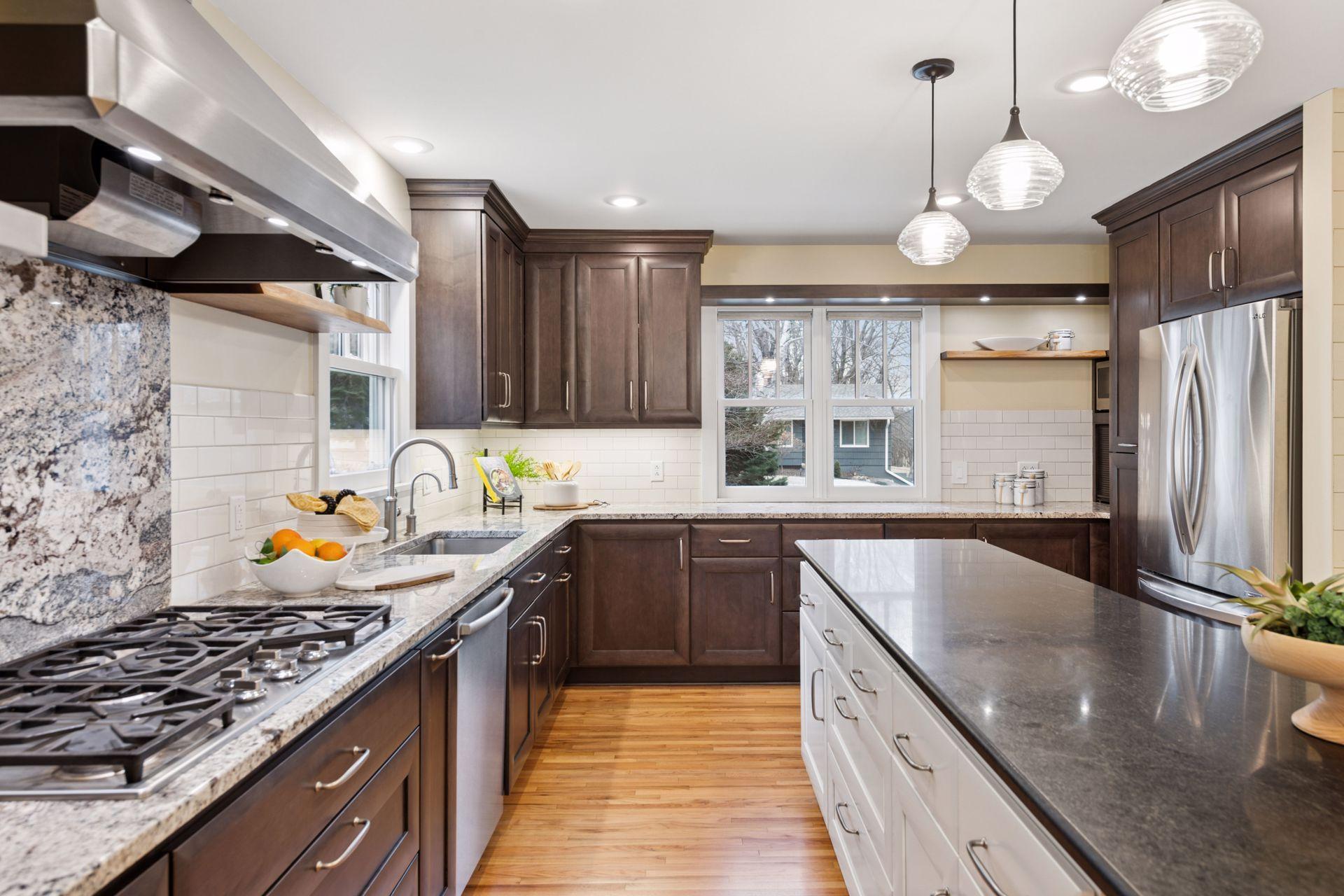 Spectacular Cape Cod influenced masterpiece nestled on a manicured treed yard in the heart of Deephaven! Open main floor features a welcoming foyer with polished oak floors! Informal lounge area with built ins! Grand sized great room with walls of sun-filled windows, built ins, brick wood-burning fireplace and oak floors! Spacious chef’s gourmet kitchen with custom cabinetry, double wall ovens, granite counters, large center island, high-end stainless appliances and a cozy hearth room with gas fireplace! Main floor bedroom suite with walk-in closet and private full bath and jetted jacuzzi tub, finished with upgraded ceramic tile and heated floors! Main floor laundry and mud room with custom built ins and maple cabinetry! The second floor offers an additional spacious bedroom with adjacent loft/sitting room, private double sink bath finished with high-end appointments! Also on the second floor is an additional generously sized bedroom with walk-in closet! The walk-out lower level features a family room with cozy stone fireplace, game area, built ins, exercise room and area with storage lockers! Step outside on the deck, covered porch or blue stone patios to an over a ½ acre of secluded sight lines, with a fenced back yard with numerous hardy perennial gardens and colorful mature blossoming trees! A perfect gardening shed with A/C and a wood shed to supply the two high efficiency wood burning fireplaces! This home has countless upgrades and quality fit and finishes! Double attached garage with new epoxy coated floor! Great low traffic end of the cul-de-sac location! Modern Wi-Fi based tech and energy efficiency of every appliance and mechanical system in the home. Modern well (70 psi delivered to all points of use at one time) and water treatment system. A short distance to Deephaven Elementary and Minnetonka Schools!