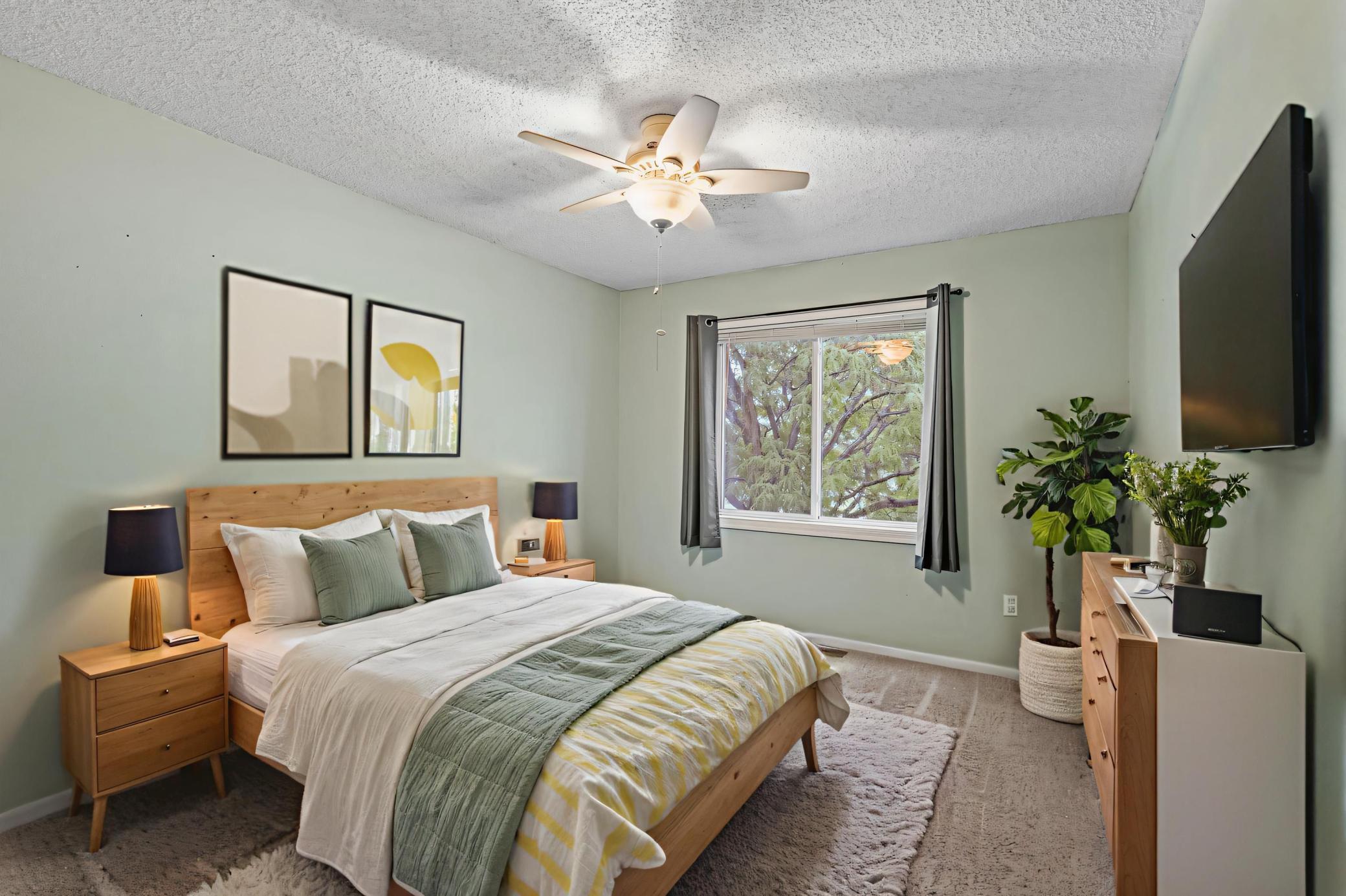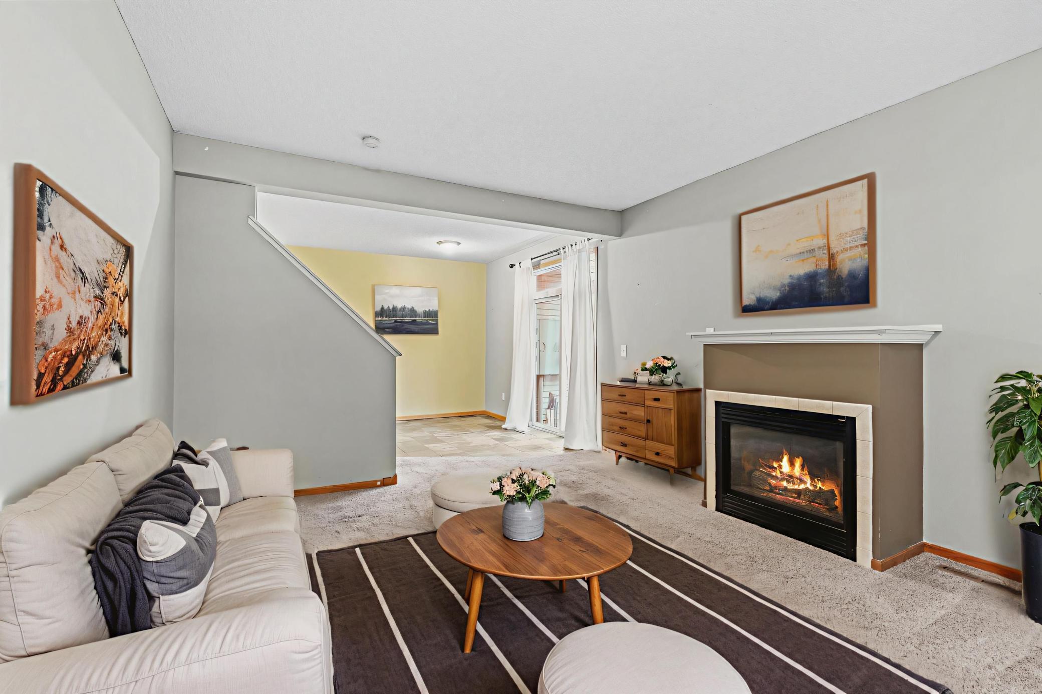 Awesome 3BR/2BA end unit townhome in the heart of town. Located across from a park and walking path, this home features a spacious outdoor patio and side yard, ideal for recreation and entertaining. The kitchen offers generous cabinetry, a breakfast bar, and stainless-steel appliances. The living room includes a gas fireplace, while the upper level hosts three bedrooms - two with walk-in closets - and a conveniently located upstairs laundry. Additional highlights include a two-car garage, ample storage throughout, and a quiet dead-end street with no highway noise. Excellent location with easy access to schools, shopping, parks, and major highways. Move-in ready!