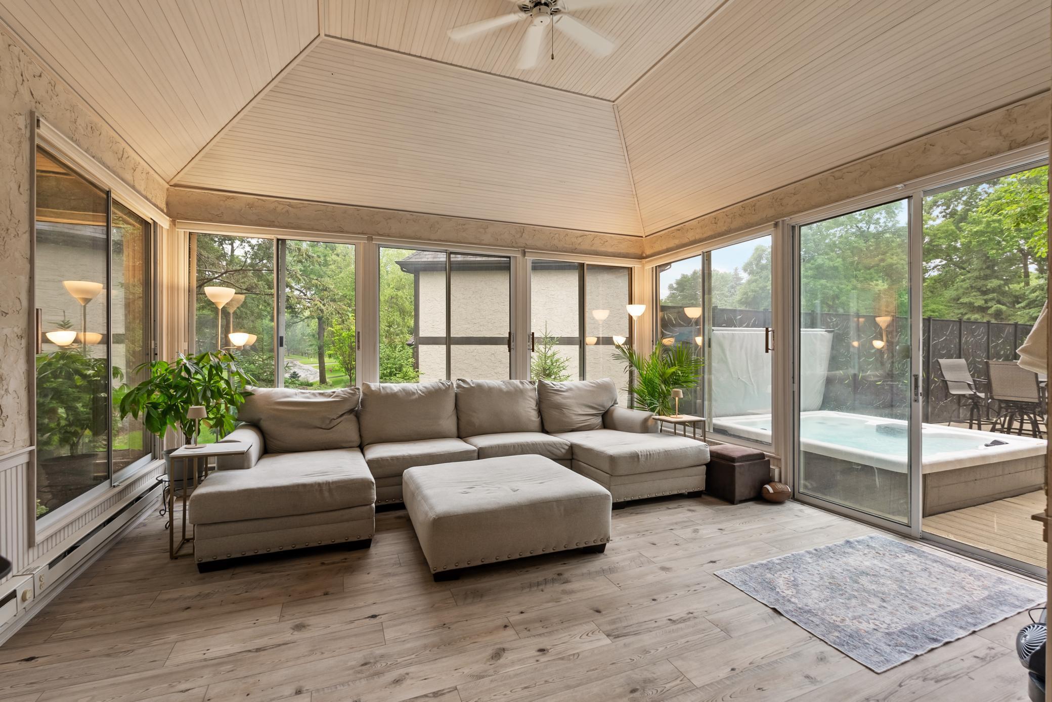 Exceptional Custom Home in Waterford – Excelsior Living at Its Finest Tucked into the sought-after Waterford development, this stunning 2-story home offers luxury, comfort, and space with 5 bedrooms, 6 bathrooms, and thoughtful design throughout. The heart of the home is a spectacular custom kitchen featuring new stainless steel appliances, a spacious island, and seamless flow into the great room with an open flame gas fireplace and elegant coffered ceilings. The main floor also includes a warm and inviting living room, formal dining room, and a sun-drenched 4-season porch with walls of windows and walkout access to the maintenance-free deck—ideal for indoor-outdoor entertaining. A dedicated main floor office provides privacy and quiet away from the central living areas. Upstairs, the magnificent owner's suite is a true retreat with a cozy sitting area, fireplace, and a spa-like ensuite bathroom. Four upper-level bedrooms offer abundant storage and comfort for family or guests. The finished lower level is built for entertaining with a spacious family room, 5th bedroom, and an impressive bar and game area. The newly epoxy-coated 3-stall garage and sealed driveway add a fresh, polished look. Step outside to enjoy a fully fenced backyard oasis complete with a luxurious hot tub and plenty of mature trees for natural privacy. Located in the award-winning Minnetonka School District, this home blends timeless elegance with modern amenities—an absolute must-see!
