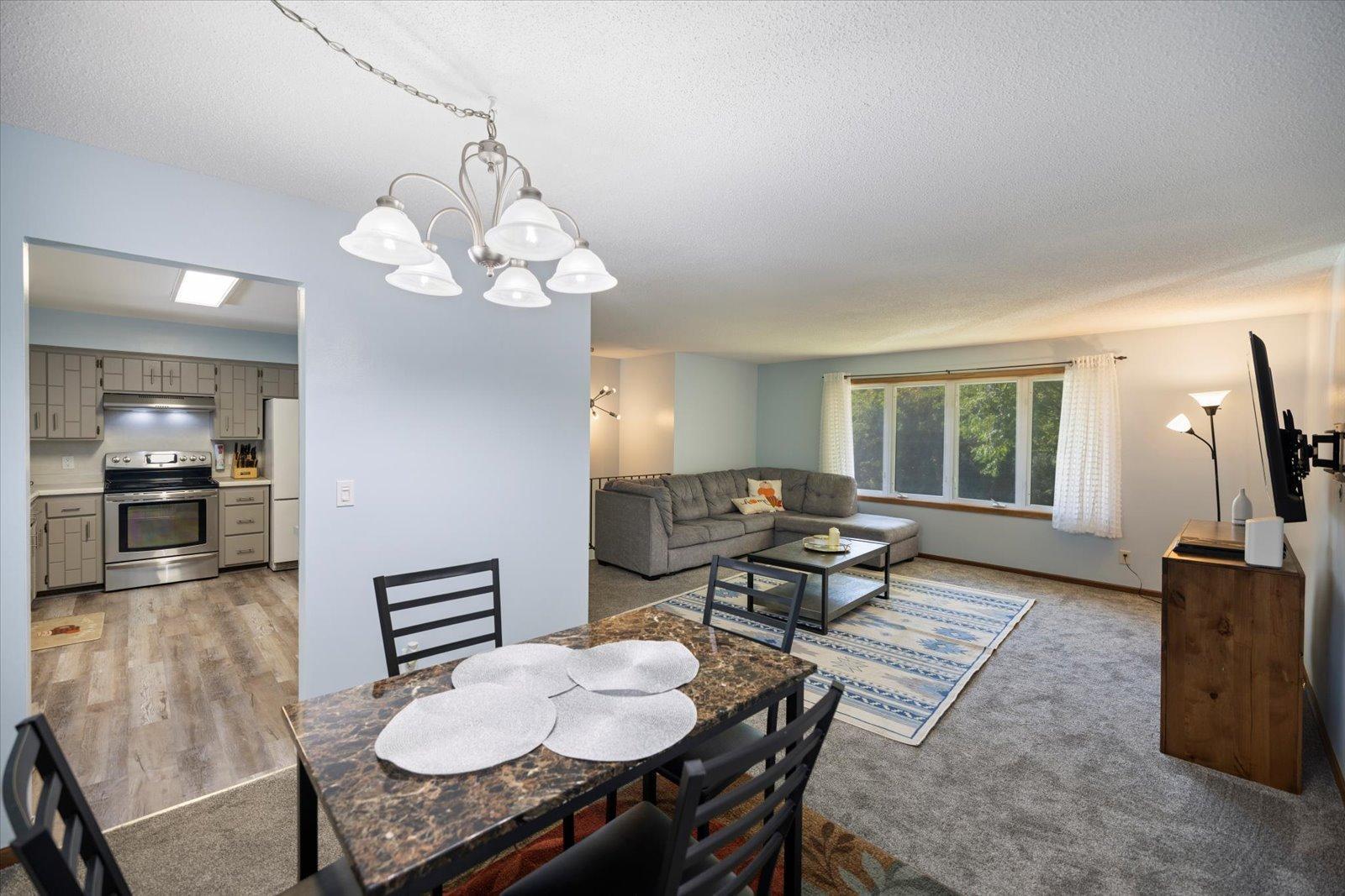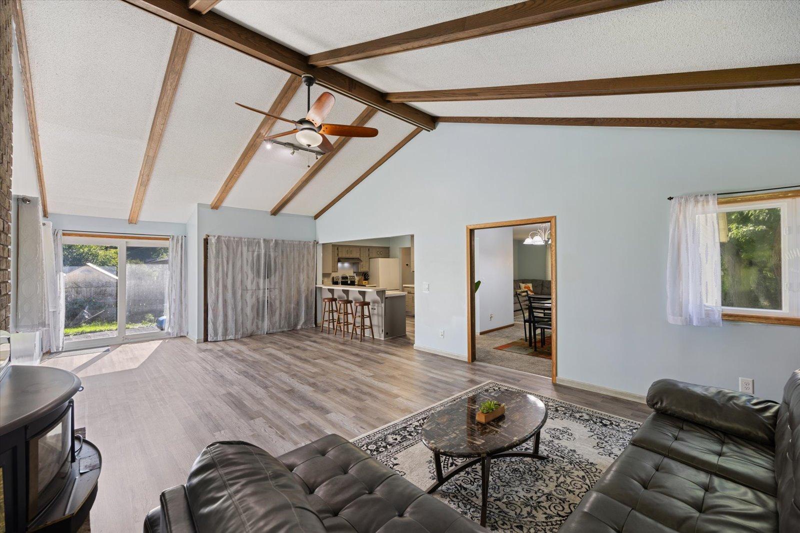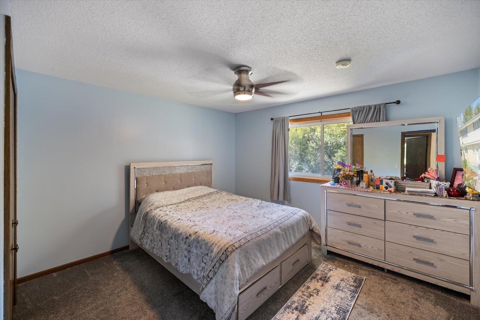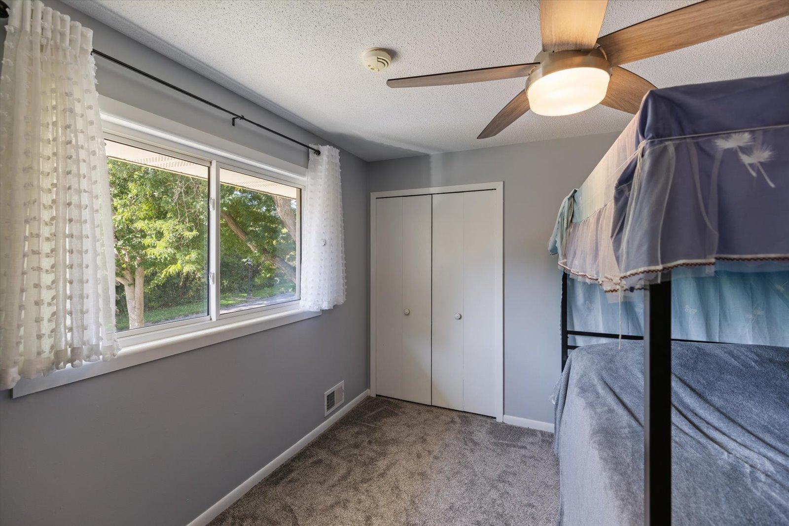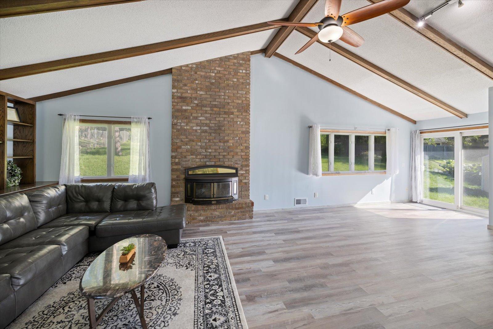 This 4-bedroom, 2-bath home in the sought-after Battle Creek area offers comfort, space, and beautiful views overlooking Battle Creek Park. All main living is on the main floor, featuring a spacious great room with a cozy fireplace, convenient main-level laundry, and three bedrooms. The large lower-level flex room provides versatility as a fourth bedroom or an additional living/entertainment space. Recent updates include brand-new LVP flooring, rebuilt walls, new insulation, windows, and roof, along with fresh paint and new carpet throughout. The large fenced-in backyard makes this home move-in ready and perfect for both relaxation and entertaining.