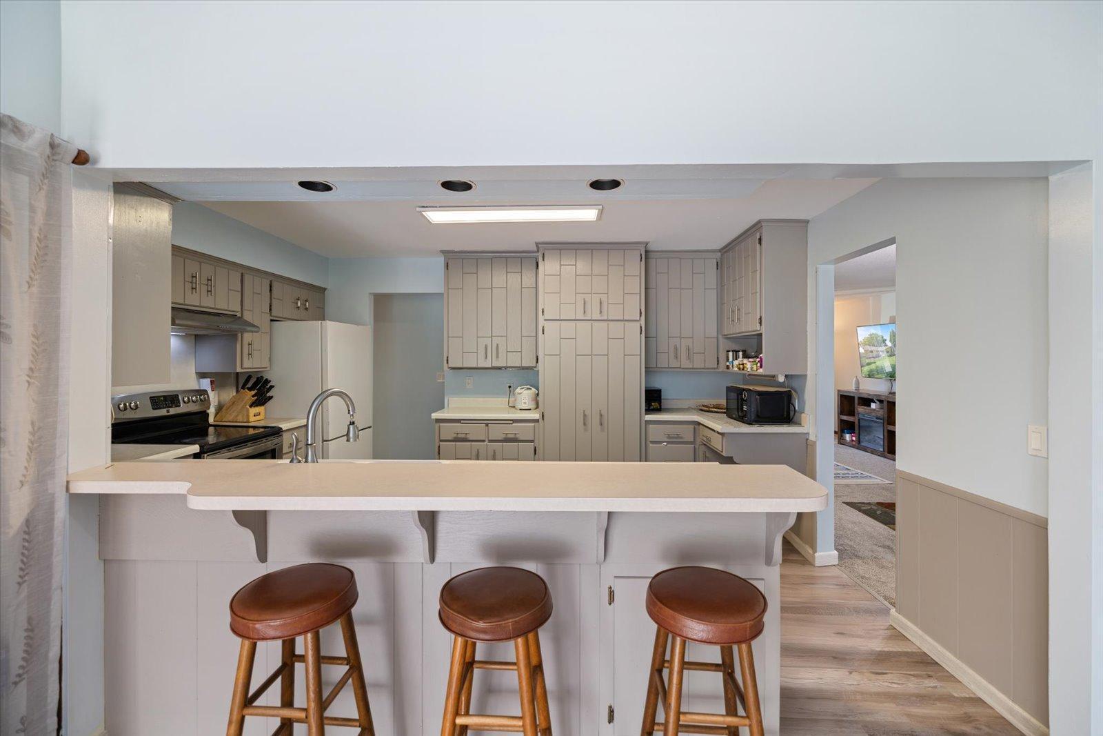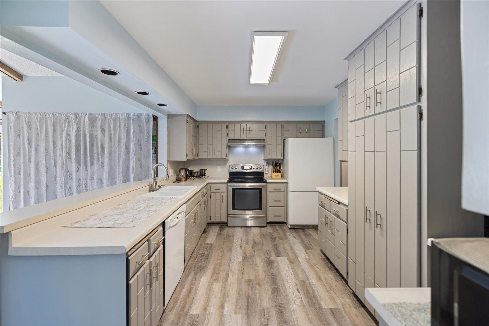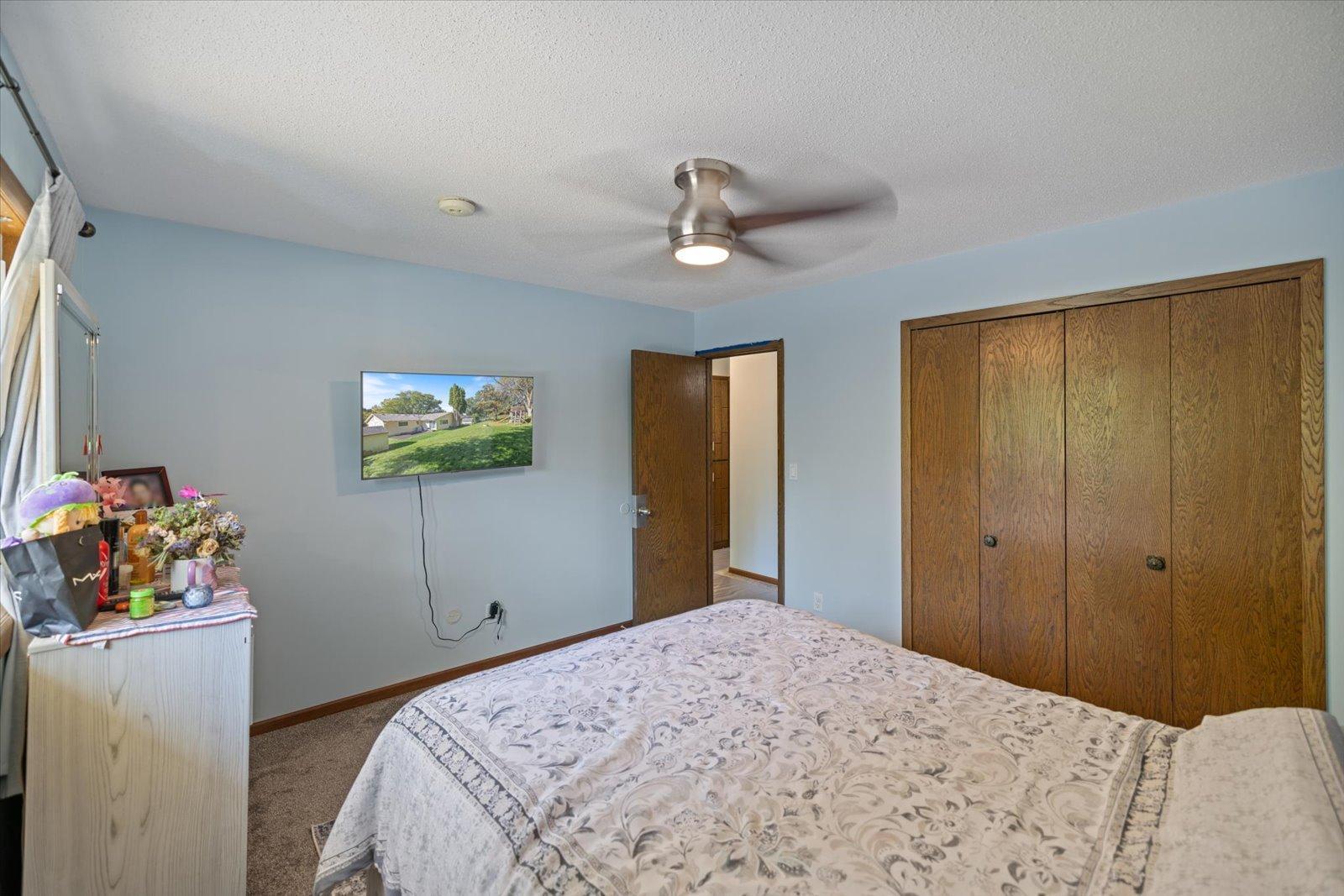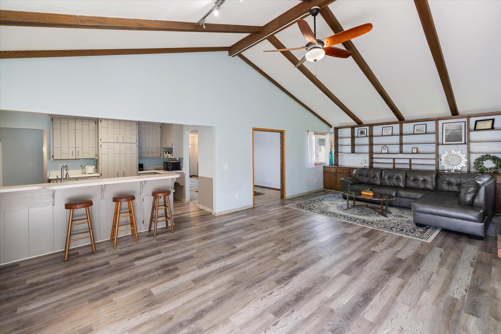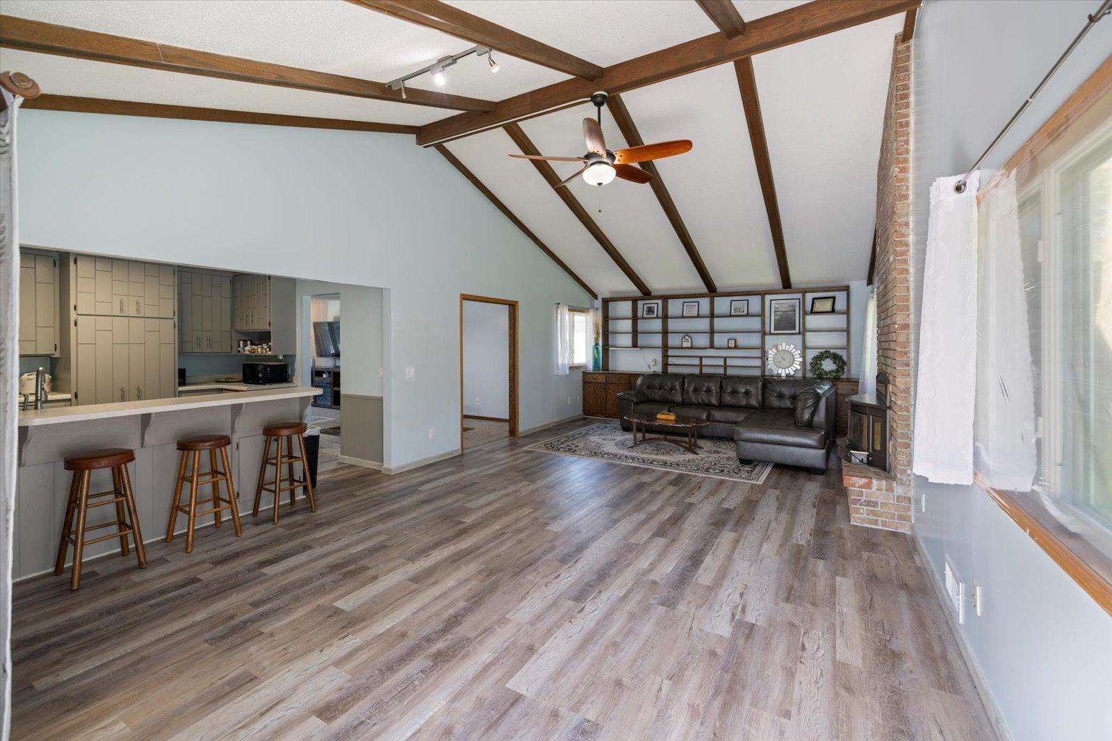 This 4-bedroom, 2-bath home in the sought-after Battle Creek area offers comfort, space, and beautiful views overlooking Battle Creek Park. All main living is on the main floor, featuring a spacious great room with a cozy fireplace, convenient main-level laundry, and three bedrooms. The large lower-level flex room provides versatility as a fourth bedroom or an additional living/entertainment space. Recent updates include brand-new LVP flooring, rebuilt walls, new insulation, windows, and roof, along with fresh paint and new carpet throughout. The large fenced-in backyard makes this home move-in ready and perfect for both relaxation and entertaining.