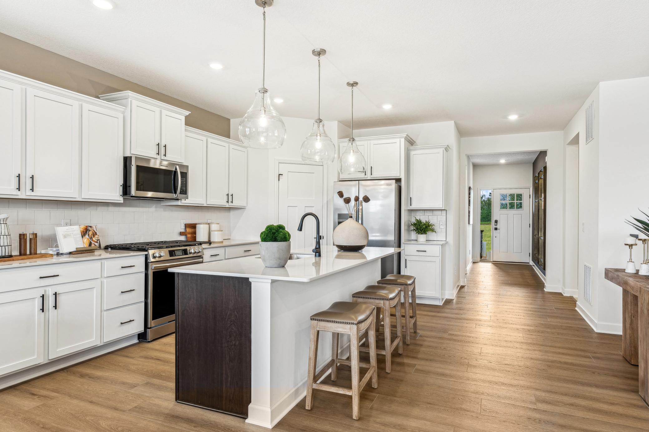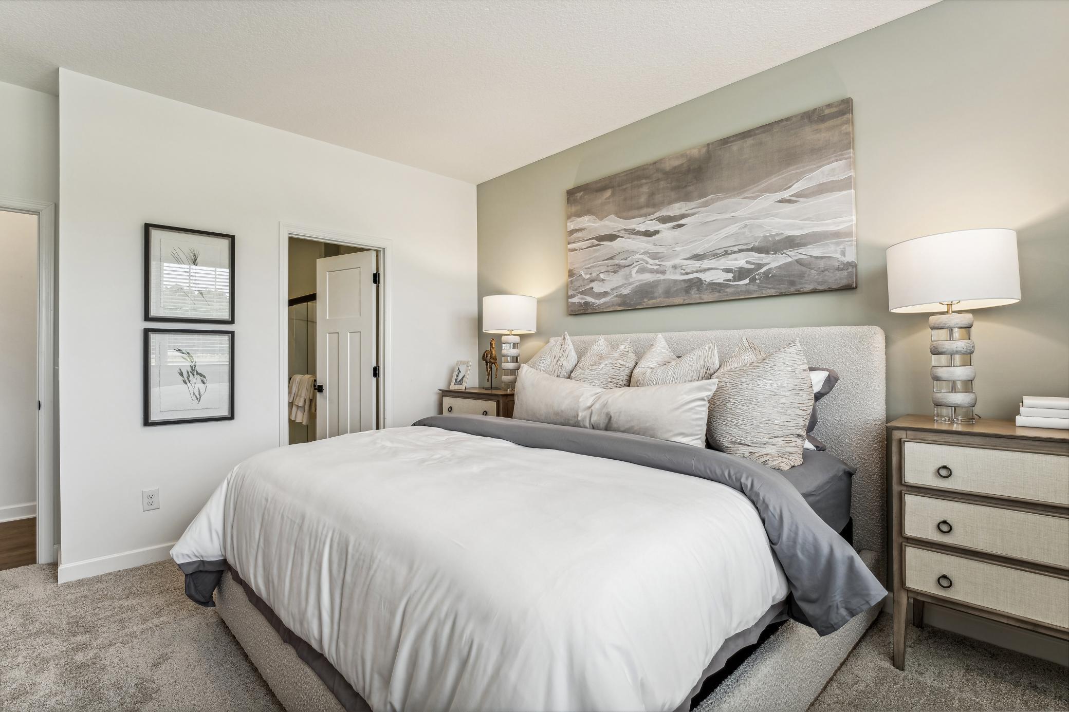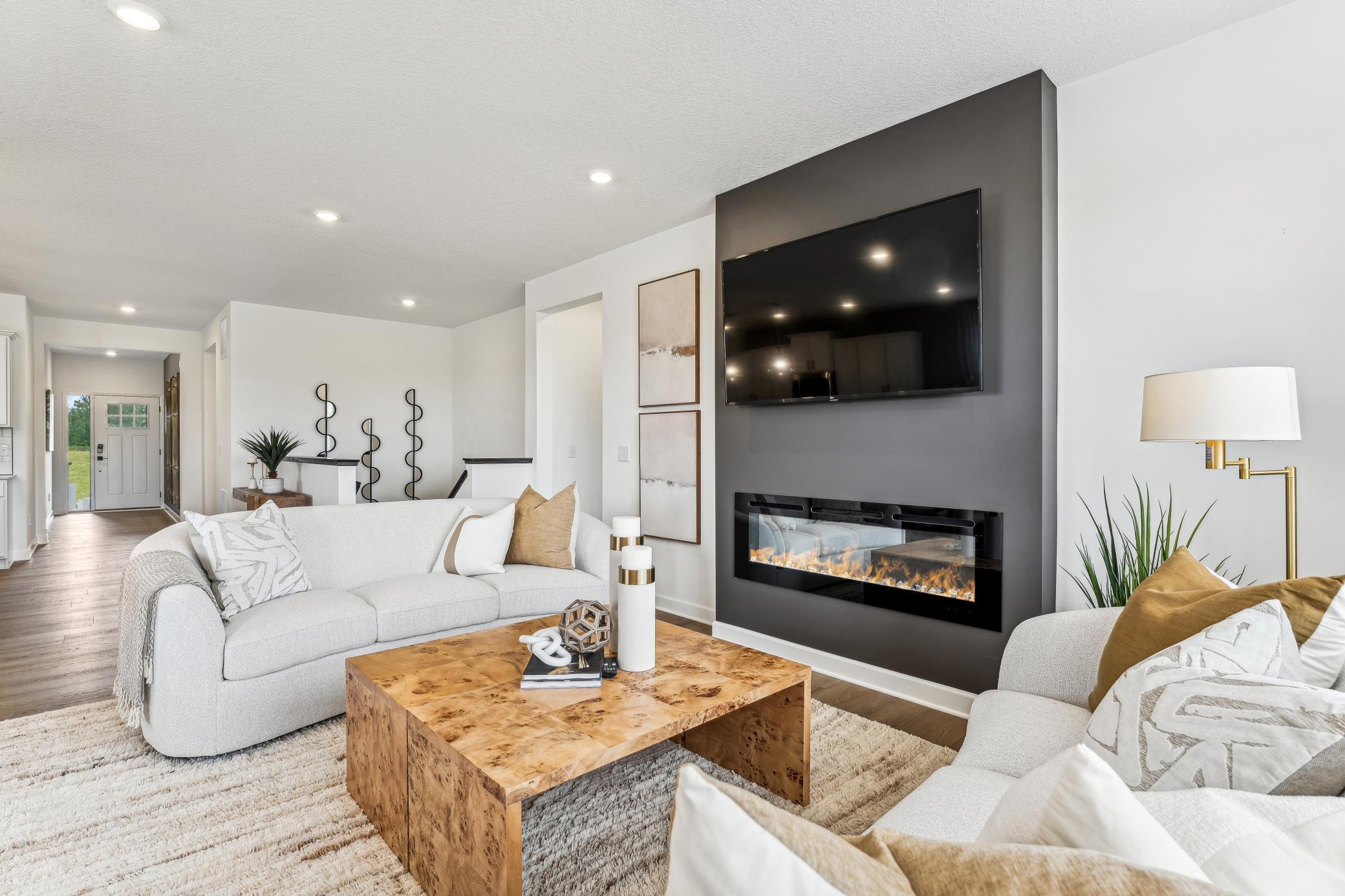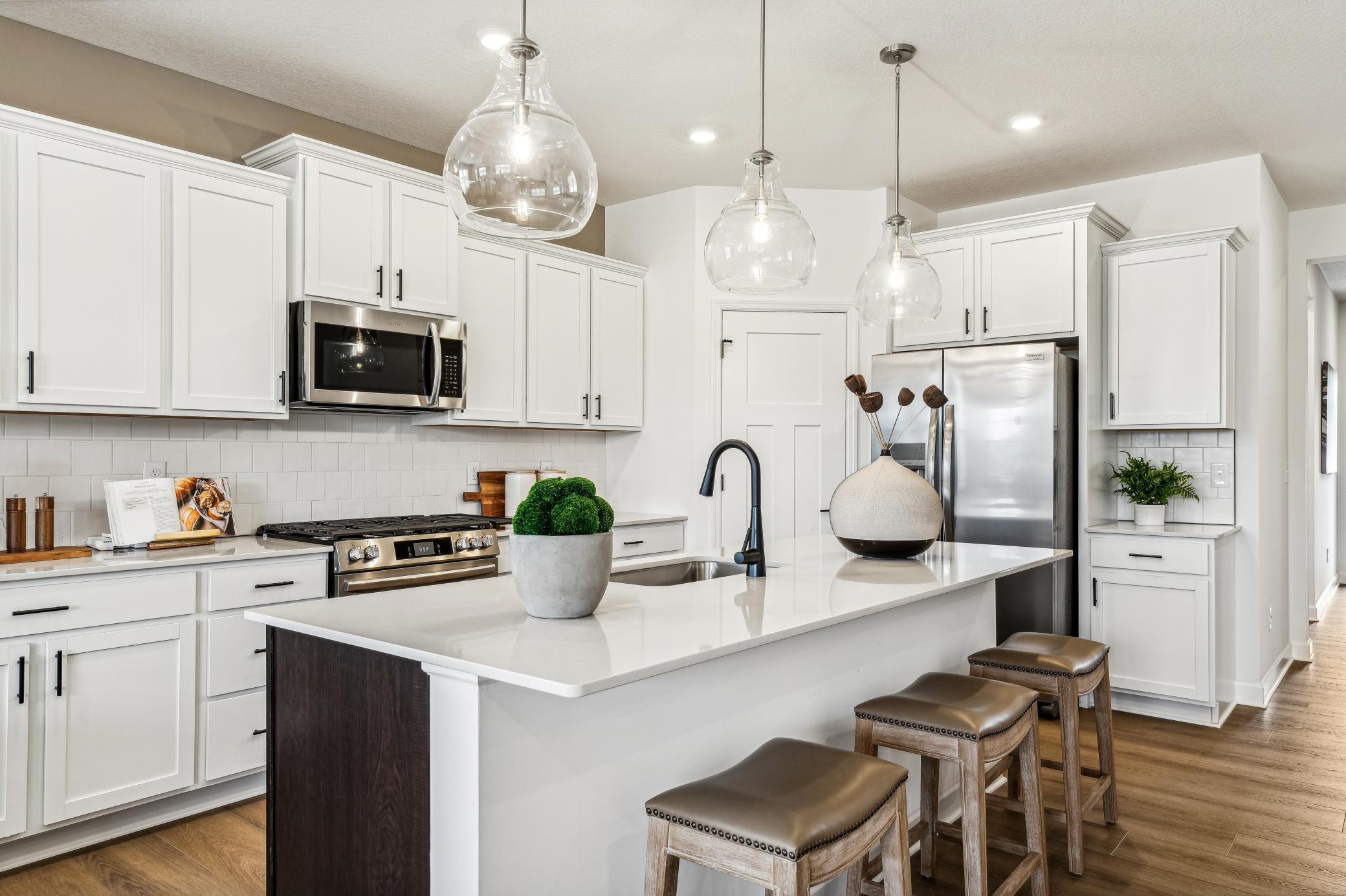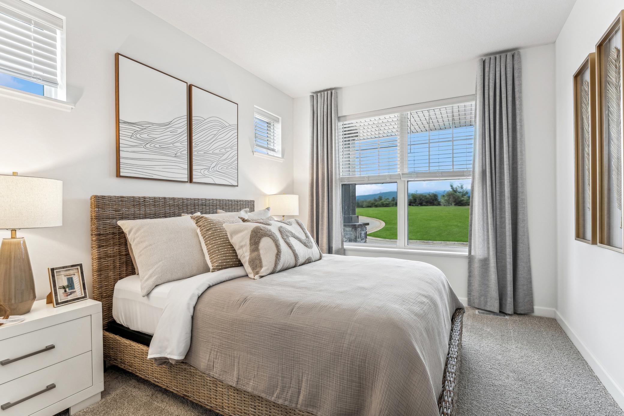 Introducing the stunning Aster twinhome, designed for easy one-level living and featuring a charming four-season porch. This home includes an attached two-car garage and a bright, open-concept layout filled with natural light, creating an inviting atmosphere for both everyday living and entertaining. The modern kitchen and bathrooms are finished with quartz countertops, while the kitchen also boasts a walk-in pantry and stainless steel appliances, including a refrigerator. A cozy fireplace adds warmth and character to the main living space. The finished lower level further expands the home, offering a spacious recreation room, a third bedroom, and an additional full bathroom, perfect for guests, hobbies, or family gatherings. Nestled in the vibrant Tavera community, this home is ideal for families, professionals, or anyone seeking a stylish, low-maintenance urban retreat.