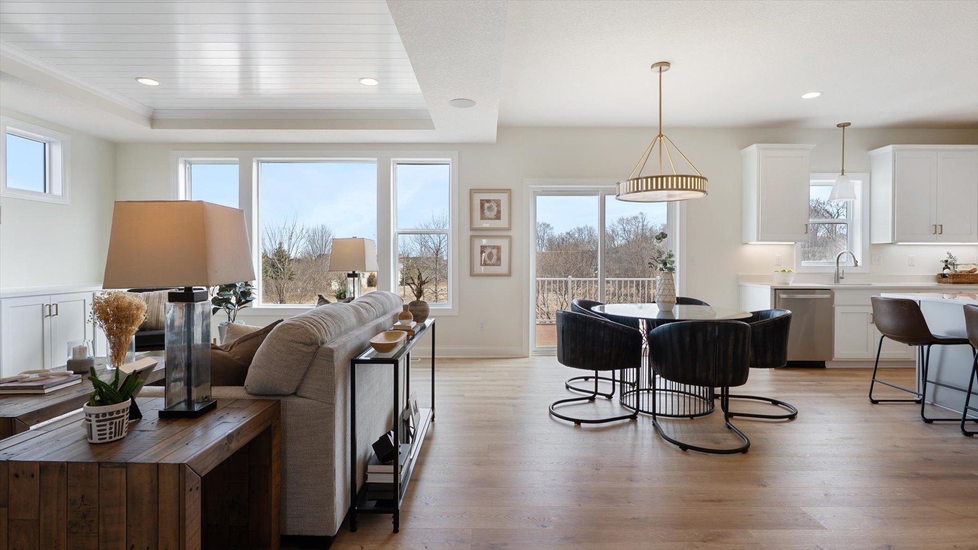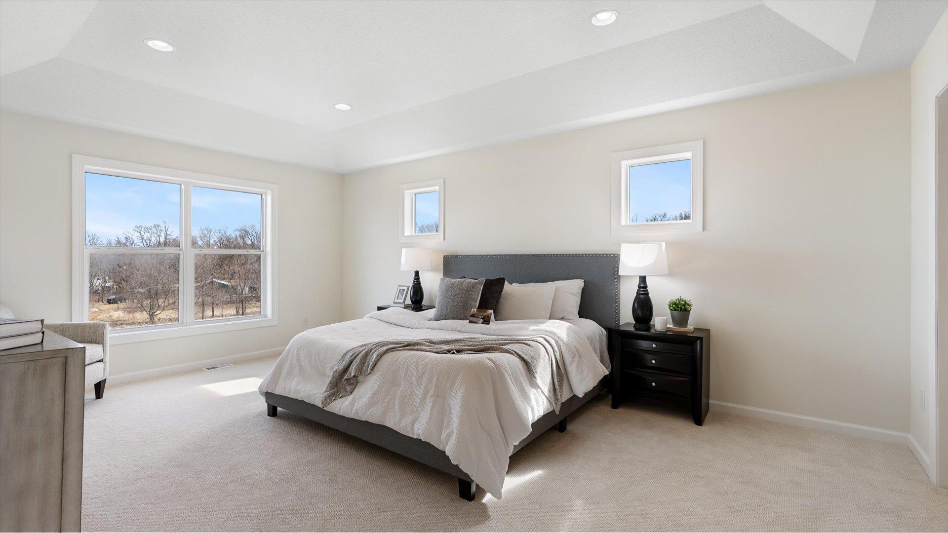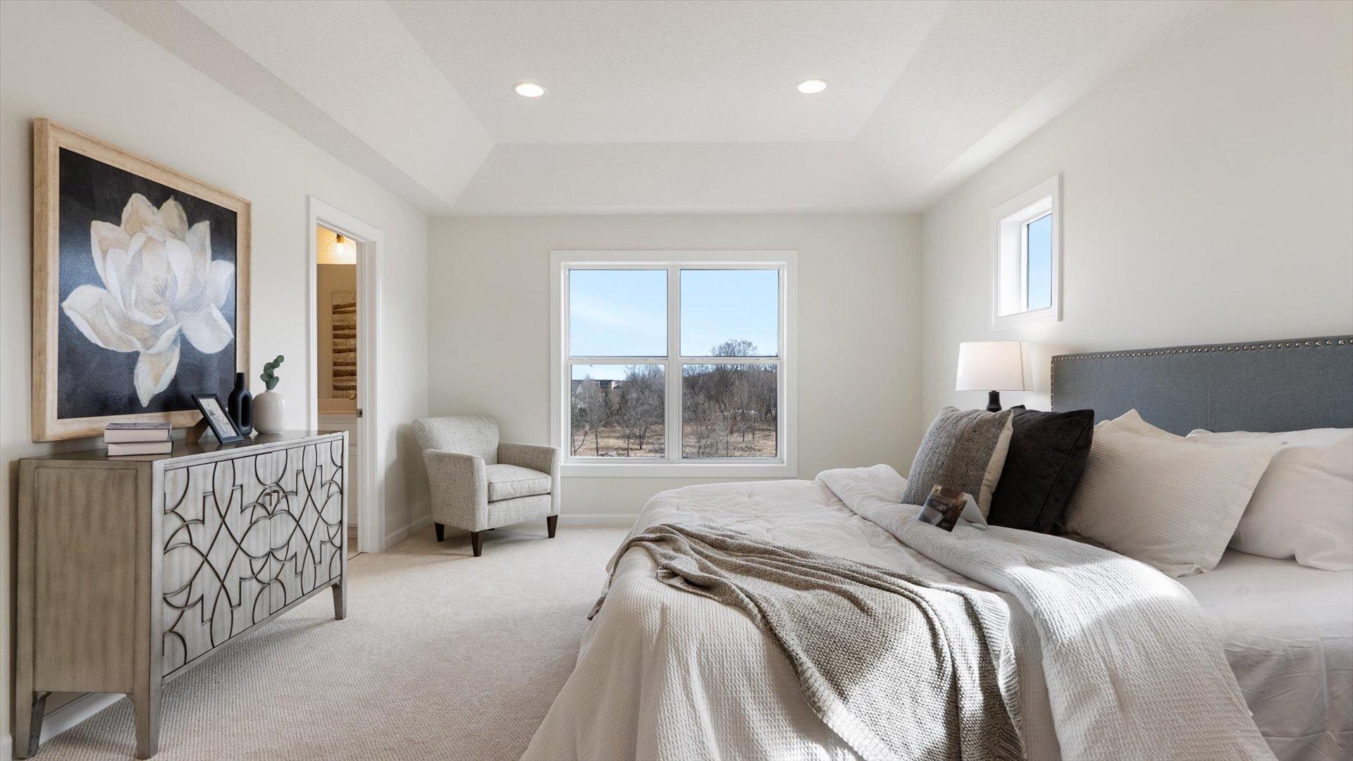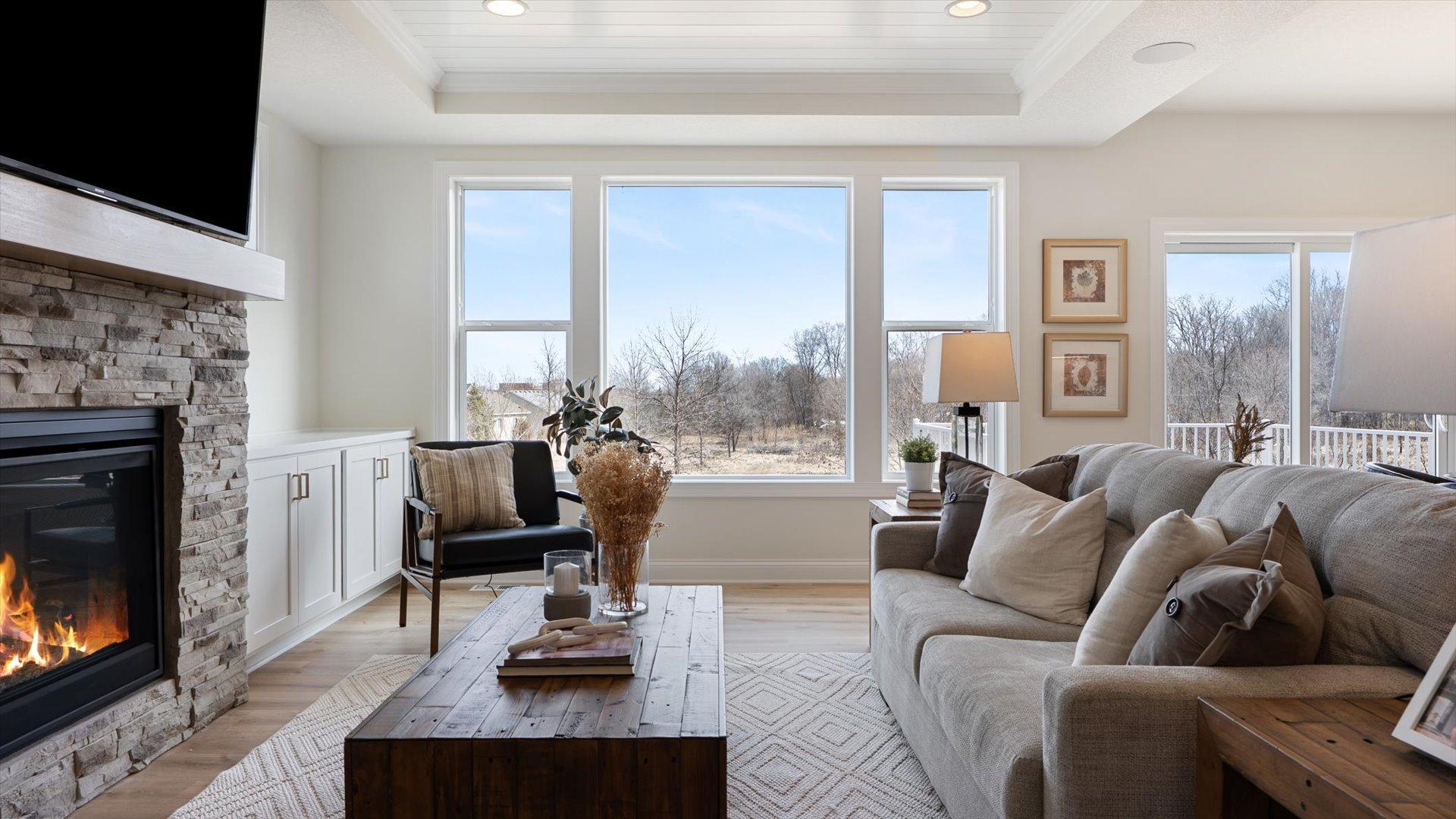Welcome to Donnay Homes' newest community in the heart of Shakopee! This Meadowood Model offers 2,151 sq.ft. of expertly crafted living space, situated of a premium lot with serene wooded views. Inside, you'll find a bright, open foyer and a main-floor office-ideal for remote work or study. The spacious great room features build-in cabinetry and a cozy fireplace, creating a warm and inviting atmosphere. The gourmet kitchen is a perfect for entertaining, with a large quartz island and an open-concept dining area that flows seamlessly into the living space. Upstairs, enjoy four generously sized bedrooms and two full bathrooms. The luxurious primary suite includes a tray ceiling, walk-in closets, and a spa-inspired bathroom. A second bedroom features its own private en-suite bath. The conveniently located upper-level laundry includes a laundry tub for added function. The walkout basement offers endless possibilities-ready for your finishing touches. This new single-family home community features 17 expansive lots, including walk-out, look-out, and split-entry options. Home packages start in the $500s Don't miss this prime Shakopee location-just minutes from shopping, dining, and a major highway access. Build your dream home today! Pictures are of a similar finish and model home.