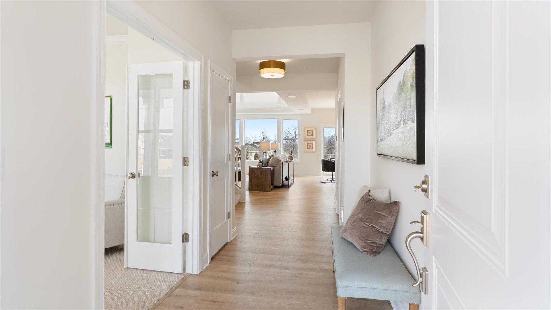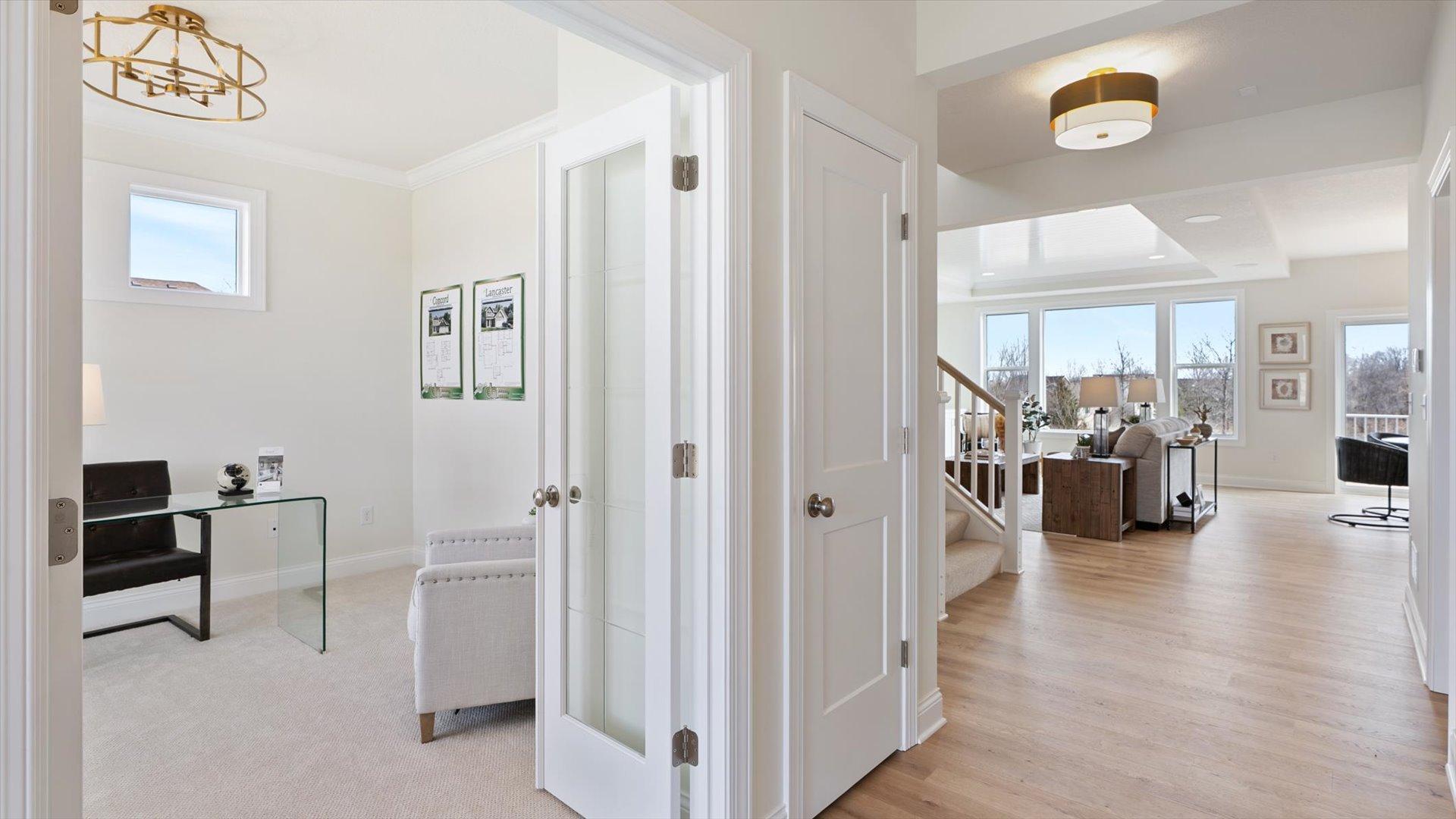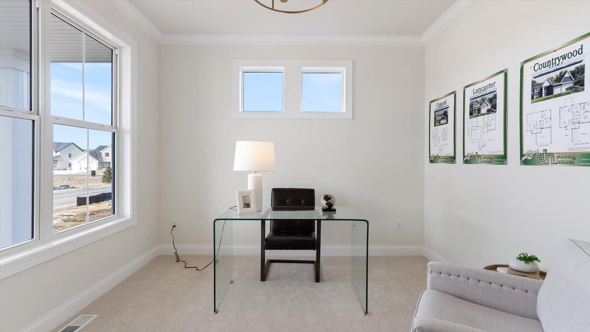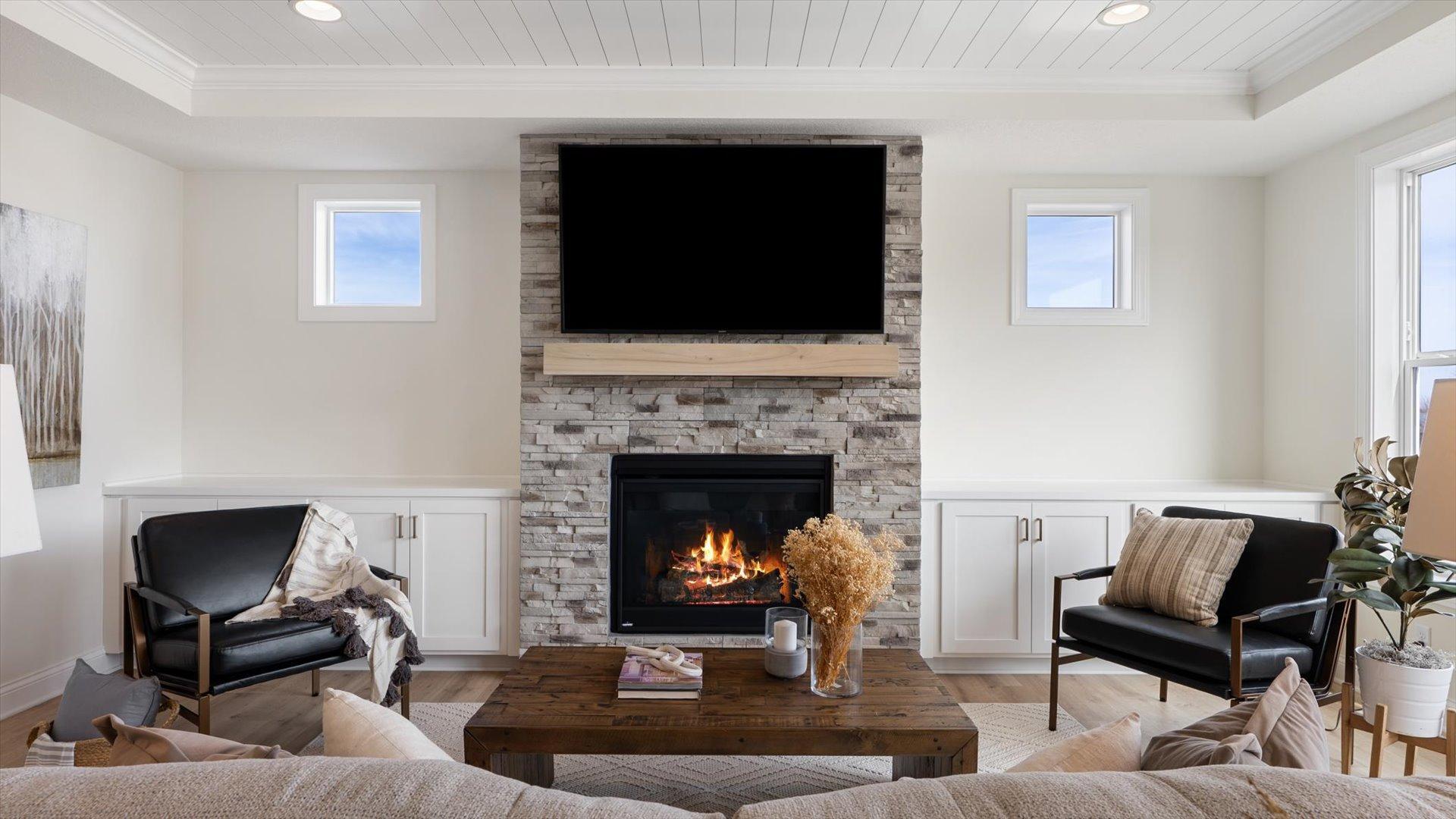 Welcome to Donnay Homes' newest community in the heart of Shakopee! This Meadowood Model offers 2,151 sq.ft. of expertly crafted living space, situated of a premium lot with serene wooded views. Inside, you'll find a bright, open foyer and a main-floor office-ideal for remote work or study. The spacious great room features build-in cabinetry and a cozy fireplace, creating a warm and inviting atmosphere. The gourmet kitchen is a perfect for entertaining, with a large quartz island and an open-concept dining area that flows seamlessly into the living space. Upstairs, enjoy four generously sized bedrooms and two full bathrooms. The luxurious primary suite includes a tray ceiling, walk-in closets, and a spa-inspired bathroom. A second bedroom features its own private en-suite bath. The conveniently located upper-level laundry includes a laundry tub for added function. The walkout basement offers endless possibilities-ready for your finishing touches. This new single-family home community features 17 expansive lots, including walk-out, look-out, and split-entry options. Home packages start in the $500s Don't miss this prime Shakopee location-just minutes from shopping, dining, and a major highway access. Build your dream home today! Pictures are of a similar finish and model home.