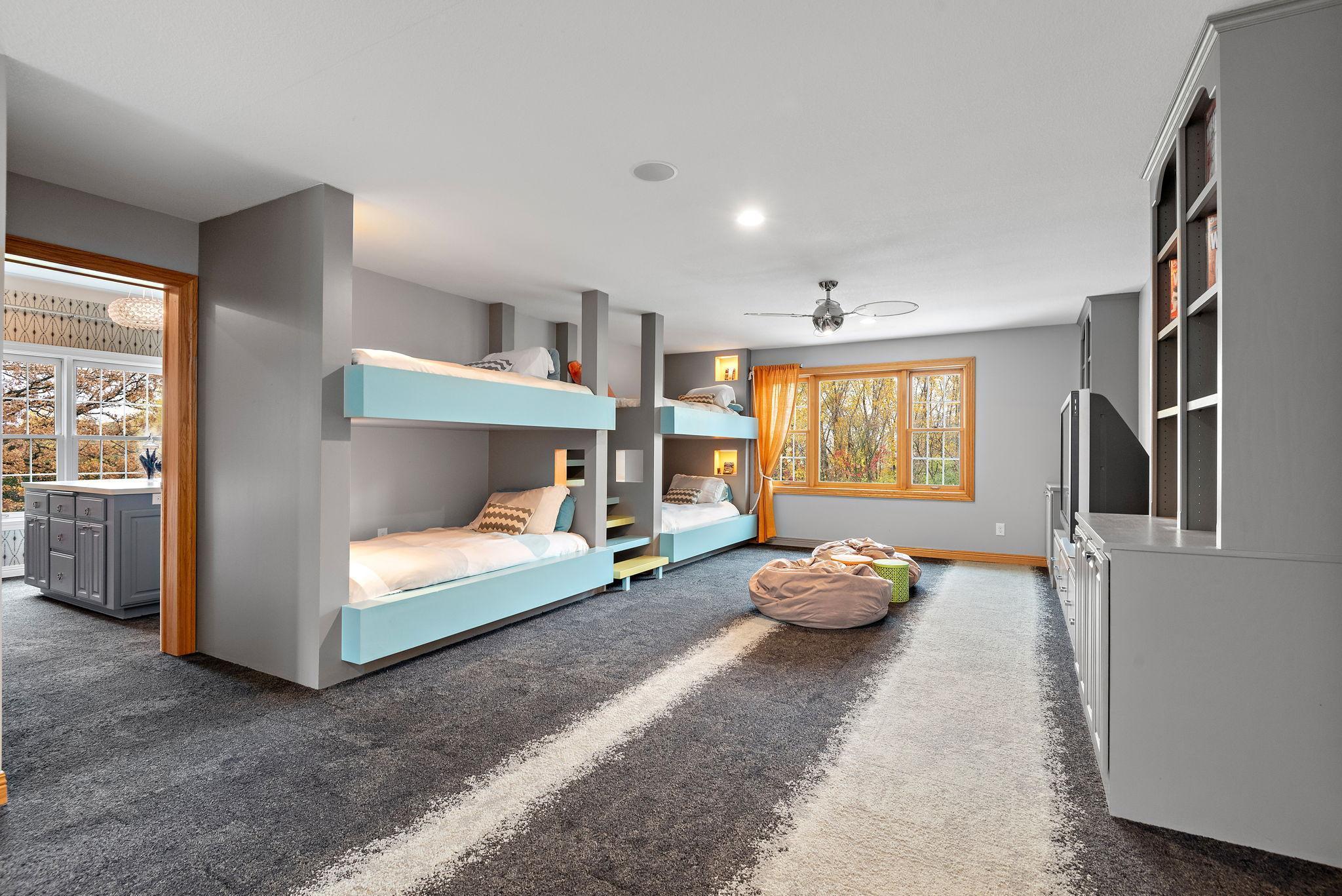 Breathtaking grand center stairway, a stunning architectural focal point that sets the tone for the refined interior. The main level is thoughtfully designed for both formal occasions and relaxed gatherings. You can find a formal dining room perfect for dinner parties, a spacious family room ideal for unwinding, and two dedicated offices for seamless work-from-home capabilities. The inviting four-season porch offers a tranquil space to enjoy the changing seasons. The gourmet kitchen is a chef's delight, boasting ample storage with two large pantries, including a cleverly hidden one for a streamlined aesthetic, along with a dedicated mudroom and a convenient butler's pantry. A Resort-Style Outdoor Oasis-Prepare to be captivated as you step outside from the lower level into a spectacular resort-style oasis. An outdoor kitchen makes al fresco dining a breeze, while the sparkling pool, relaxing hot tub, and sports court provide endless opportunities for recreation and leisure. Sharpen your short game on the private putting green, enjoy serene moments by the tranquil pond, or gather around the fire pit for cozy evenings under the stars. This extraordinary property offers a lifestyle of unparalleled luxury, comfort, and entertainment, both indoors and out. An Entertainer's Dream-the lower level is an entertainer's paradise, boasting a custom-designed bar perfect for crafting cocktails and hosting gatherings. An amusement room provides endless opportunities for fun, while a generously sized and fully equipped exercise room ensures your wellness goals are always within reach. The convenience continues outdoors with a lower garage specifically designed for housing lawn and pool equipment Luxurious Private Spaces and Unique touches- The upper level features an expansive primary bedroom suite, his and her closets, and a pristine, spa-like bath for ultimate relaxation. A private junior en suite provides a comfortable haven for guests, while two additional bedrooms share a well-appointed hall bath. You'll be delighted by the creative and practical bunk room (bedroom 4), offering a fun and flexible space, alongside a dedicated gift wrap room, adding a thoughtful touch to this exceptional home. The superior location puts you just minutes away from the TCO Performance Center, MSP International Airport, and both downtowns.