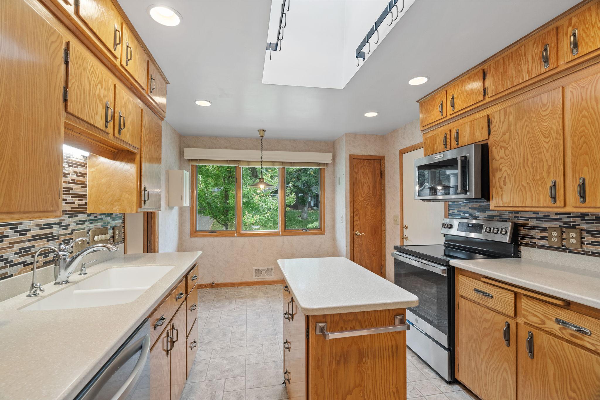 This charming walkout rambler offers timeless appeal with a stately brick and pillar exterior and a fenced backyard for added privacy. Inside, hardwood floors flow through the main level, where you’ll find a sun-filled living room anchored by a cozy fireplace and an inviting sunroom.? The oversized private ensuite features ¾ bath, while the walkout lower level provides a large family room with a second fireplace, ideal for gatherings or relaxing nights in. An 11×11 workshop is conveniently attached to the garage, the perfect space for hobbies or projects.? Enjoy the sought-after Westwood Hills neighborhood, known for its mature trees, quiet streets, and close proximity to nature trails, parks, and golf.