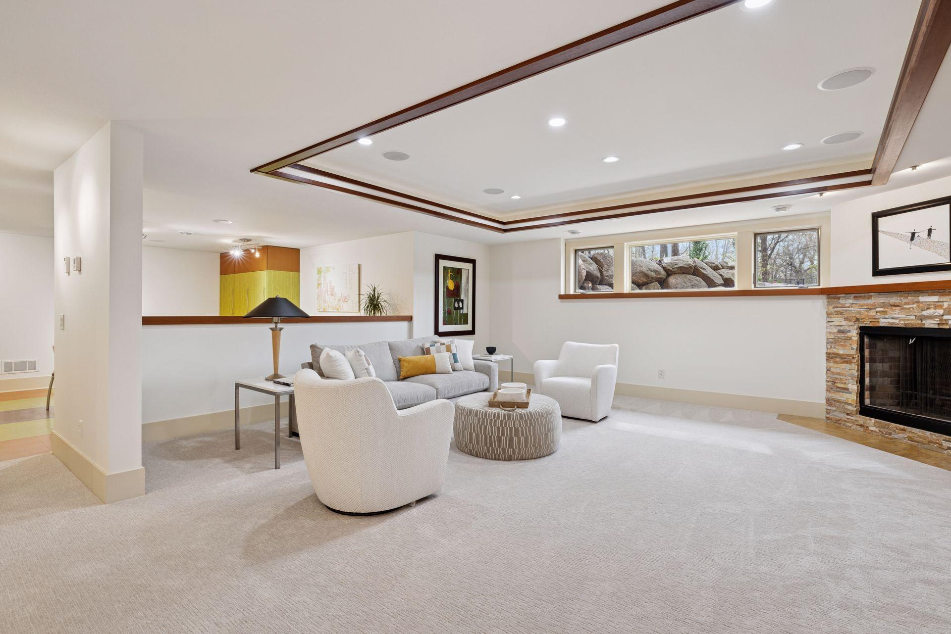 Basement Details: Daylight/Lookout Windows, Drain Tiled, Egress Window(s), Finished, Full, Concrete, Storage Space, Sump Pump, Tray Ceiling(s), Walkout,