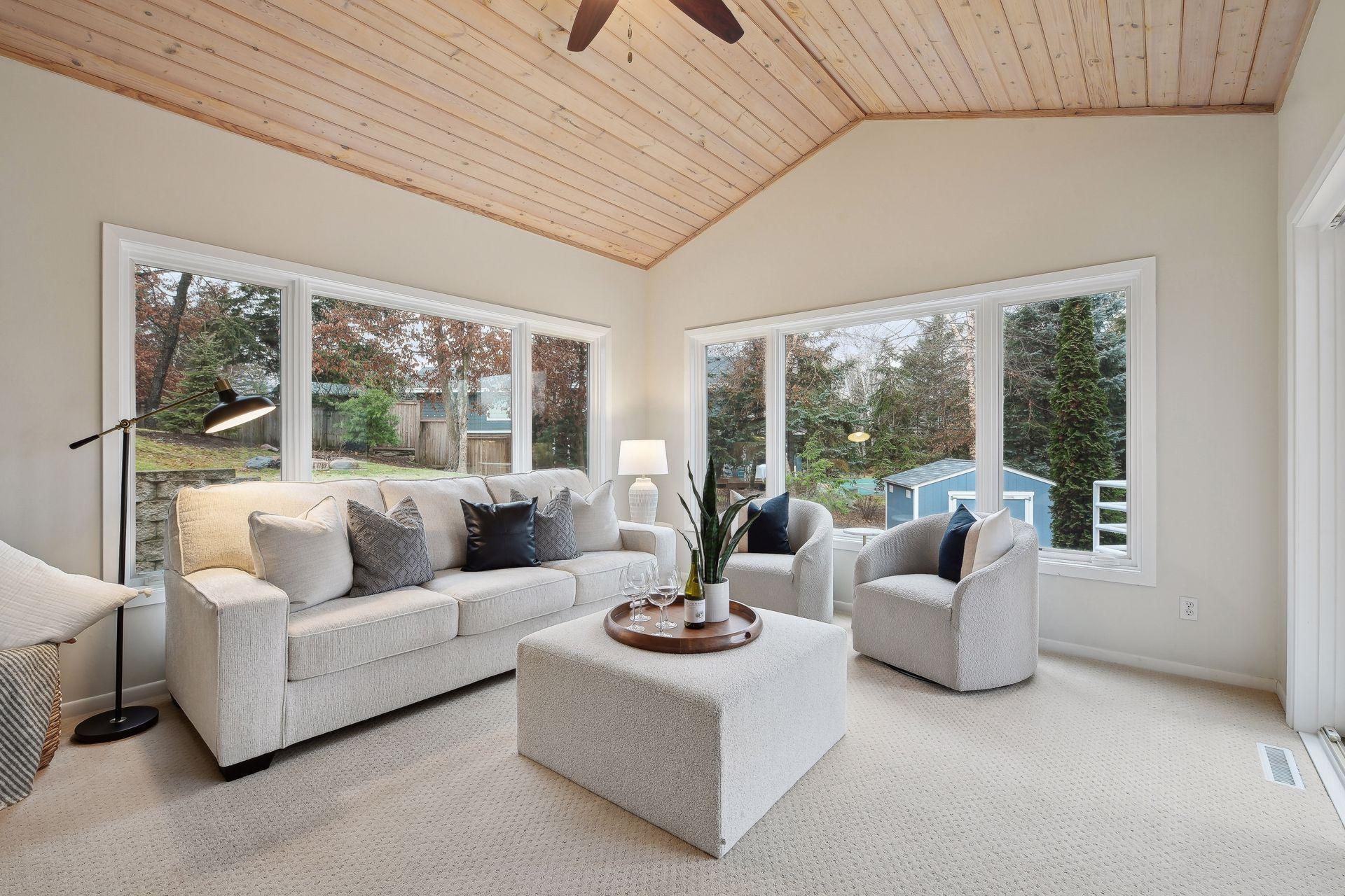 Nestled on a cul-de-sac, half-acre lot in the Hilloway neighborhood, this exceptional home offers the perfect blend of privacy and convenience. Walking distance to Ridgedale and a short drive to downtown, it combines peaceful retreat with easy access to amenities. The updated, turnkey home features a bright, airy design with a two-story foyer, hardwood floors, and a spacious living room. The open kitchen with a center island and walk-in pantry flows into the family room, sunroom, and maintenance-free deck. Private primary suite has walk-in closets and a spa-like bath. 2 additional bedrooms with a full bath provide 3 bedrooms on one level. The finished walkout lower level offers 2 more bedrooms, a sauna, living area, and flex space. Outdoors, enjoy a patio and firepit. Additional features include a 3-car garage, new roof, gutters, doors, windows, and freshly painted interior. Located in the Wayzata School District, this home is a must-see for those seeking luxury in a coveted location.