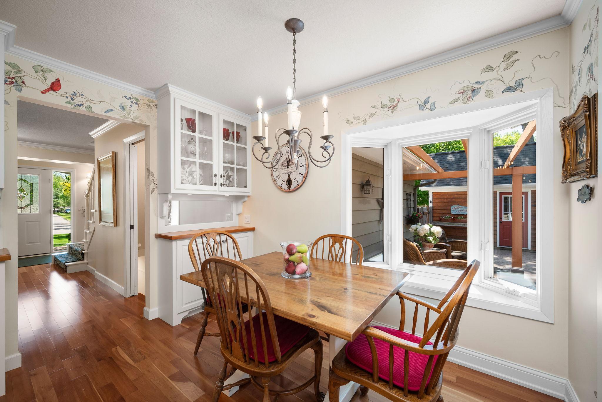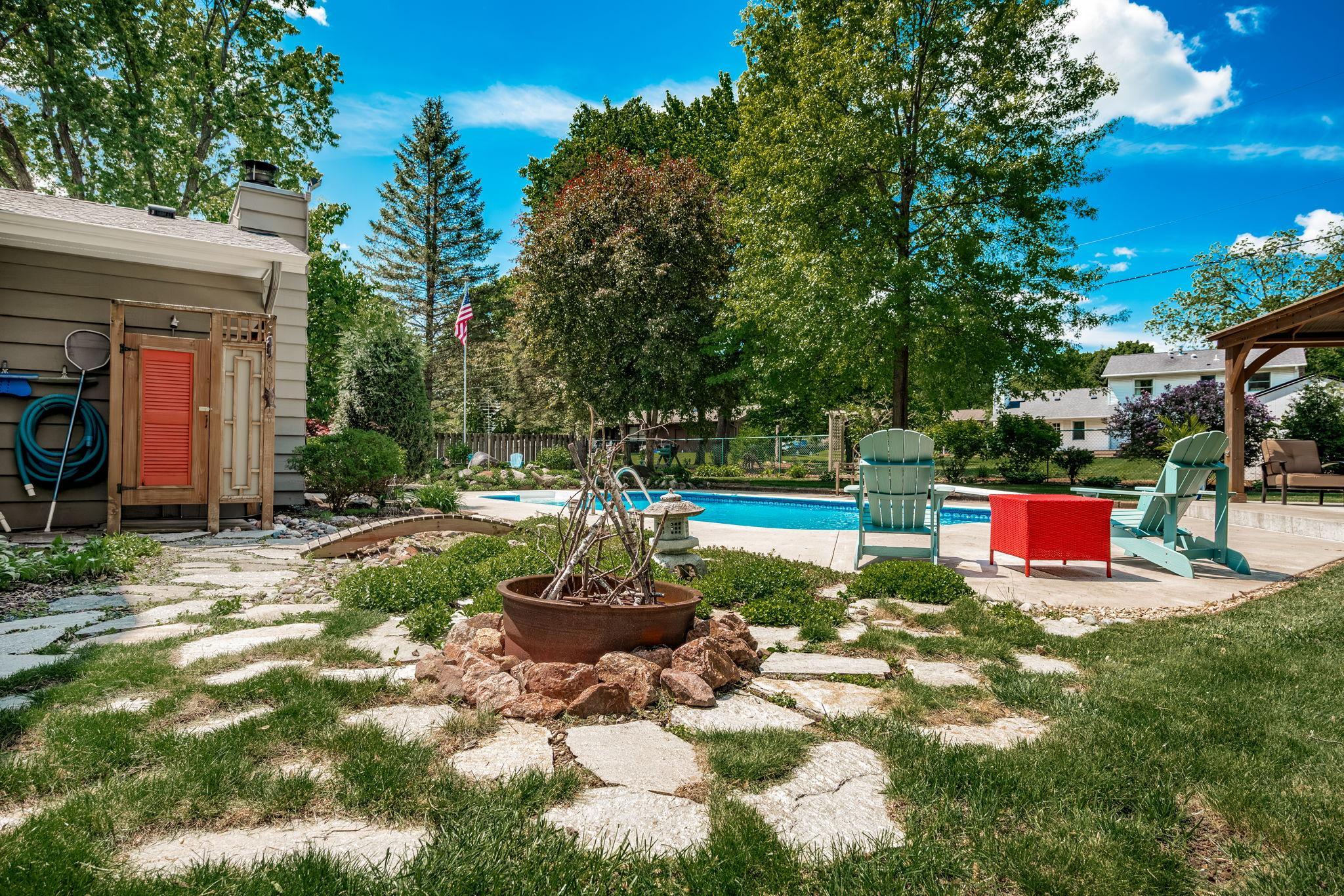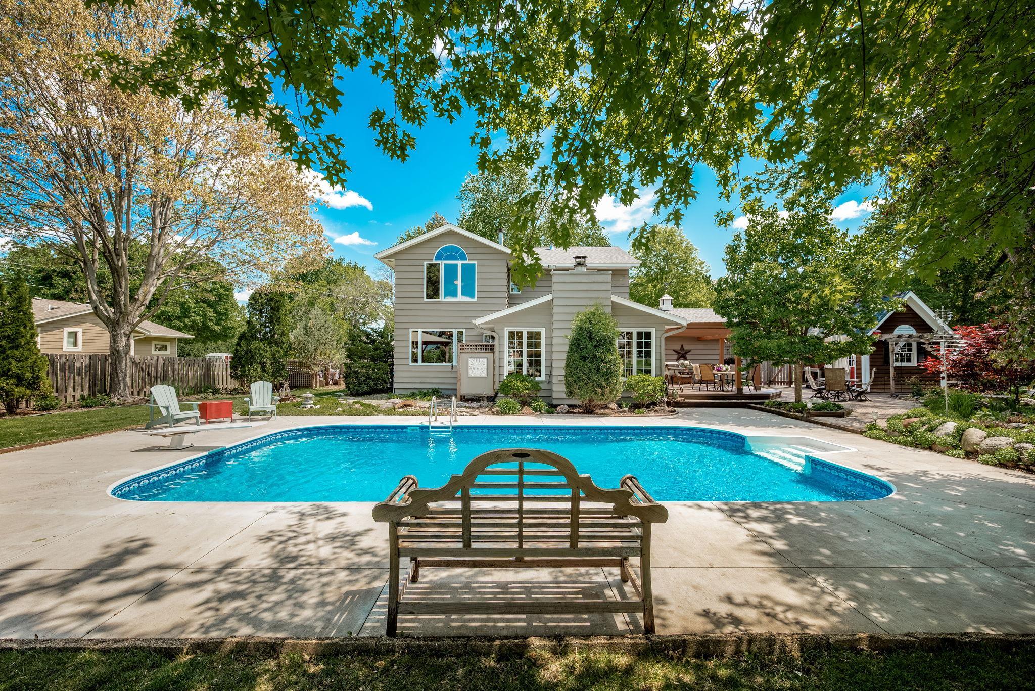 Welcome to this charming 2 story home located in Imperial Hills and in the Wayzata School District. The 1/2 acre wooded lot is spectacular. The rear yard is just like a park with an inground pool, paver walkways, extensive gardens, a deck, a shed and a gazebo. The home has so much character with its gleaming hardwood floors, custom white cabinetry, crown molding and white woodwork throughout. Special features include an added family room with a wood burning fireplace, custom mantel, red oak floors and a service bar. The open style kitchen/dinette overlooks the family room. It has custom cabinetry with some glass front doors, unique hardware, gorgeous granite counters and wood floors. Other added features are the enlarged foyer and the enlarged primary suite with an arched window. This bedroom has a fireplace, 3/4 bath, walk in closet and a vanity area. The upper level flex room is a beautiful office with some built in cabinets and hardwood floors. This level includes 2 more bedrooms and a full bath. The lower level has an amusement room, laundry room and a woodworker's dream shop. This home is a gem and has been very well maintained and lovingly cared for by the current owners.