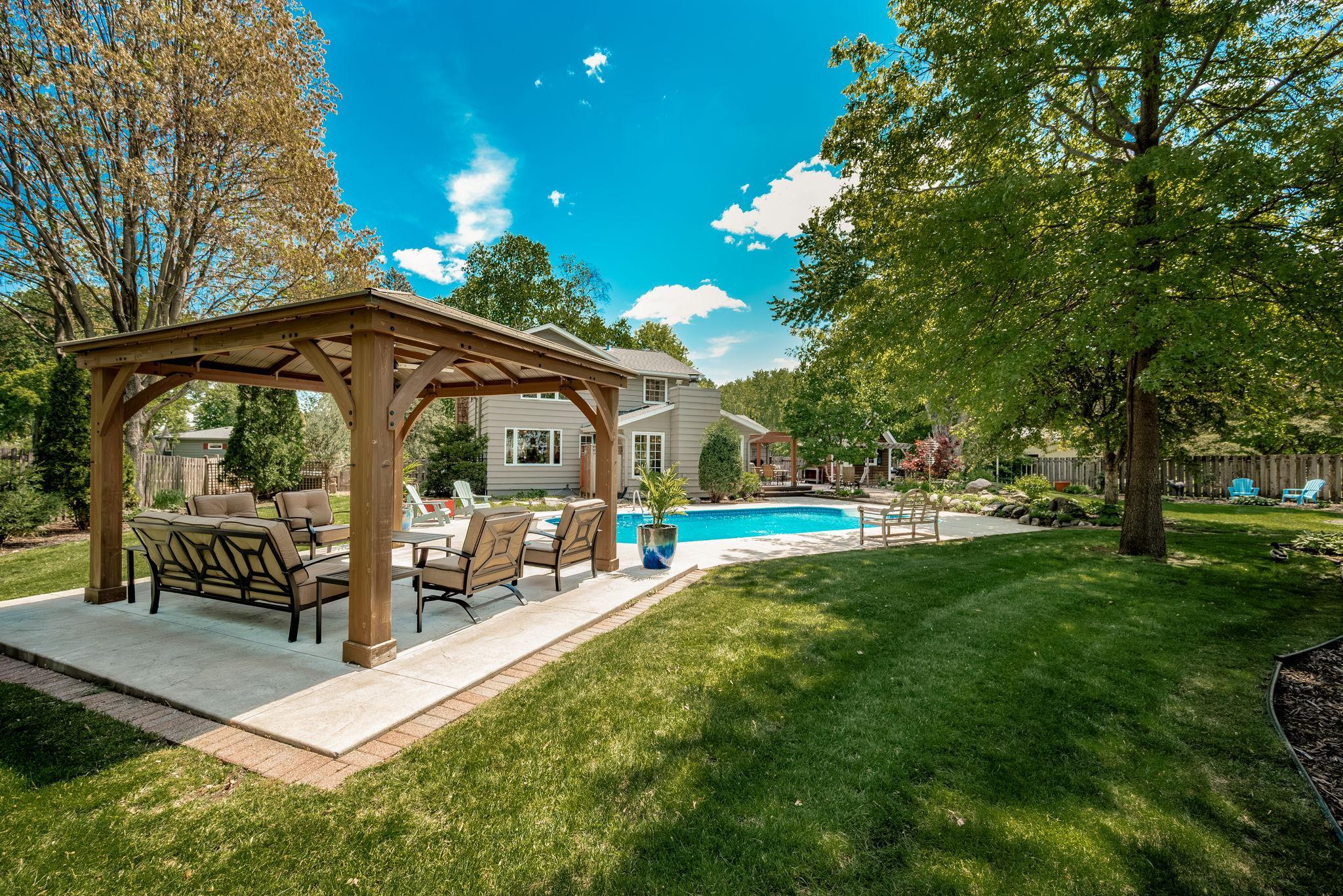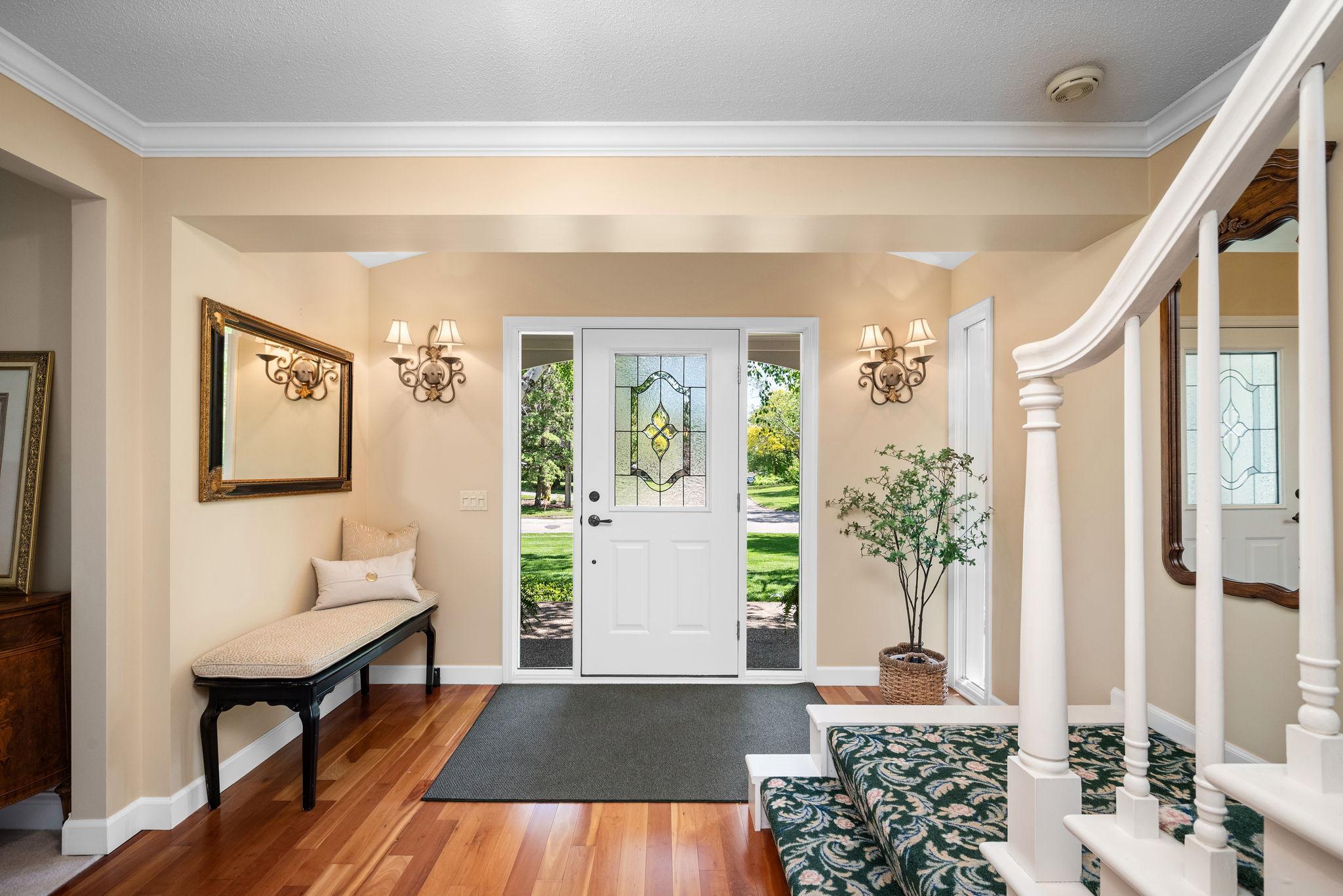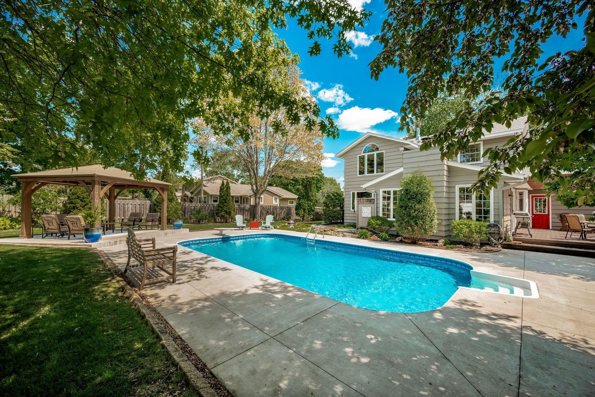 Welcome to this charming 2 story home located in Imperial Hills and in the Wayzata School District. The 1/2 acre wooded lot is spectacular. The rear yard is just like a park with an inground pool, paver walkways, extensive gardens, a deck, a shed and a gazebo. The home has so much character with its gleaming hardwood floors, custom white cabinetry, crown molding and white woodwork throughout. Special features include an added family room with a wood burning fireplace, custom mantel, red oak floors and a service bar. The open style kitchen/dinette overlooks the family room. It has custom cabinetry with some glass front doors, unique hardware, gorgeous granite counters and wood floors. Other added features are the enlarged foyer and the enlarged primary suite with an arched window. This bedroom has a fireplace, 3/4 bath, walk in closet and a vanity area. The upper level flex room is a beautiful office with some built in cabinets and hardwood floors. This level includes 2 more bedrooms and a full bath. The lower level has an amusement room, laundry room and a woodworker's dream shop. This home is a gem and has been very well maintained and lovingly cared for by the current owners.