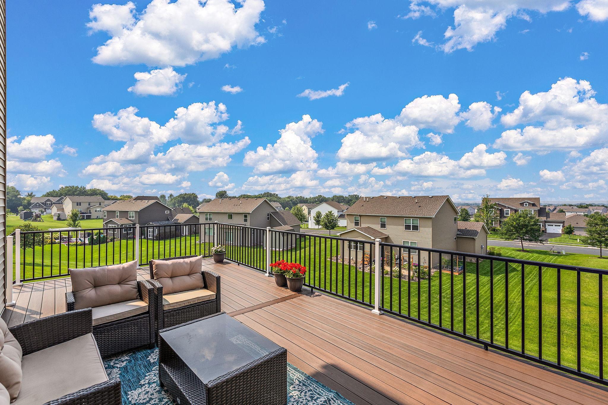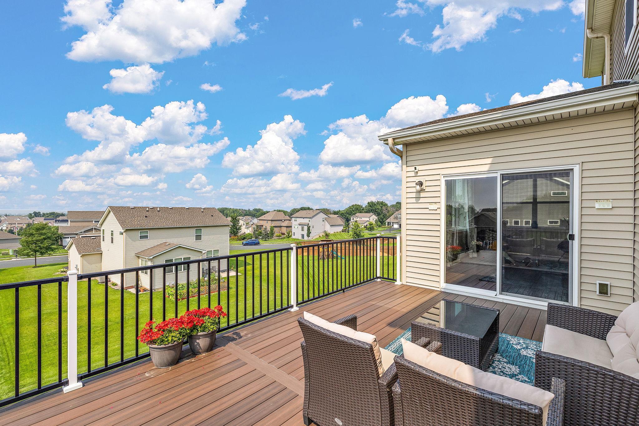 • 5 bedrooms, 4 baths, ~3,800 sq ft • Bright open-concept layout with abundant sunlight • Cozy gas fireplace + finished basement • Quiet cul-de-sac with no through traffic • Wooded front views, valley backyard views & sunsets/fireworks from deck • Enjoy the rare openness of a half-acre lot with plenty of space between neighbors • Real Hardwood Flooring: Timeless durability and warmth Welcome to this stunning 5BR/4BA home with 3,800 finished sq ft, beautifully set on a quiet cul-de-sac in a desirable neighborhood. This newer two-story home, completed in December 2016, offers a spacious open-concept layout filled with natural light and thoughtful design throughout. The main level features a large living room, a gourmet kitchen with stainless steel appliances, granite countertops, a center island, and a bright Morning Room that opens to the backyard—perfect for casual dining or entertaining. A versatile flex room on the main floor can be used as a home office, formal dining room, or playroom. Upstairs, the expansive primary suite welcomes you with elegant double doors and a vaulted ceiling, creating a true retreat. It includes a private bath, walk-in closet, and a separate alcove perfect for a crib, reading nook, or dressing area. Three additional bedrooms and a full bath complete the upper level. The fully finished basement adds even more space with a large family/rec room, fifth bedroom, and full bath—ideal for guests, a home gym, or a media area. Step outside to enjoy a composite deck (approx. 12x24 ft)—ideal for outdoor entertaining and relaxation. Set on an elevated lot, the deck offers sweeping sunset views, a seasonal view of Valleyfair, and even fireworks on summer nights. The front yard faces a peaceful wooded area, adding to the home’s sense of privacy and natural beauty. Enjoy the outdoors with a large front yard and backyard, offering plenty of space for play, gardening, or gathering with friends. Additional highlights include a 3-car garage, energy-efficient systems, and convenient access to parks, trails, and shopping. Don’t miss this move-in-ready home that blends space, style, and comfort—schedule your showing today!