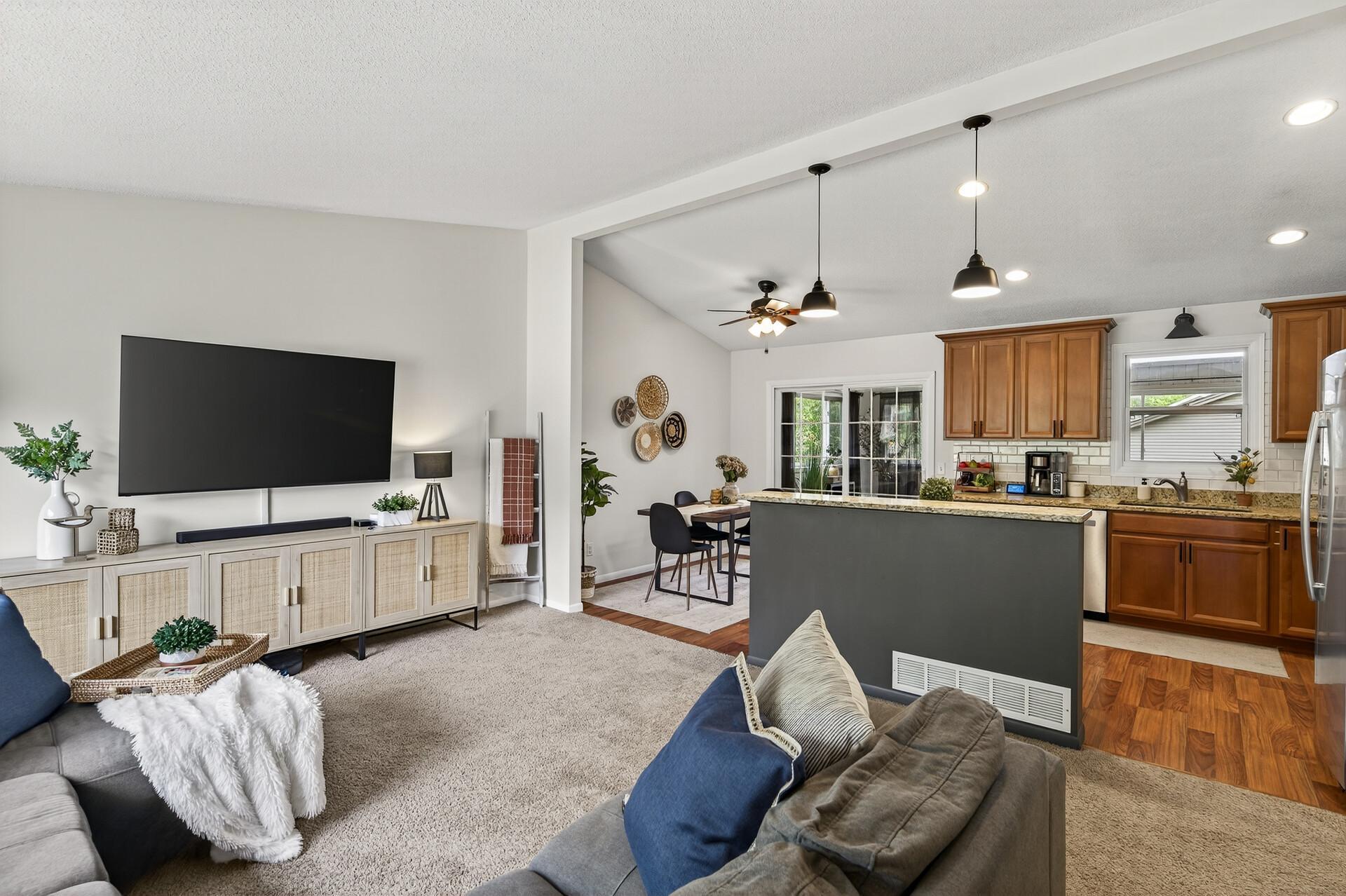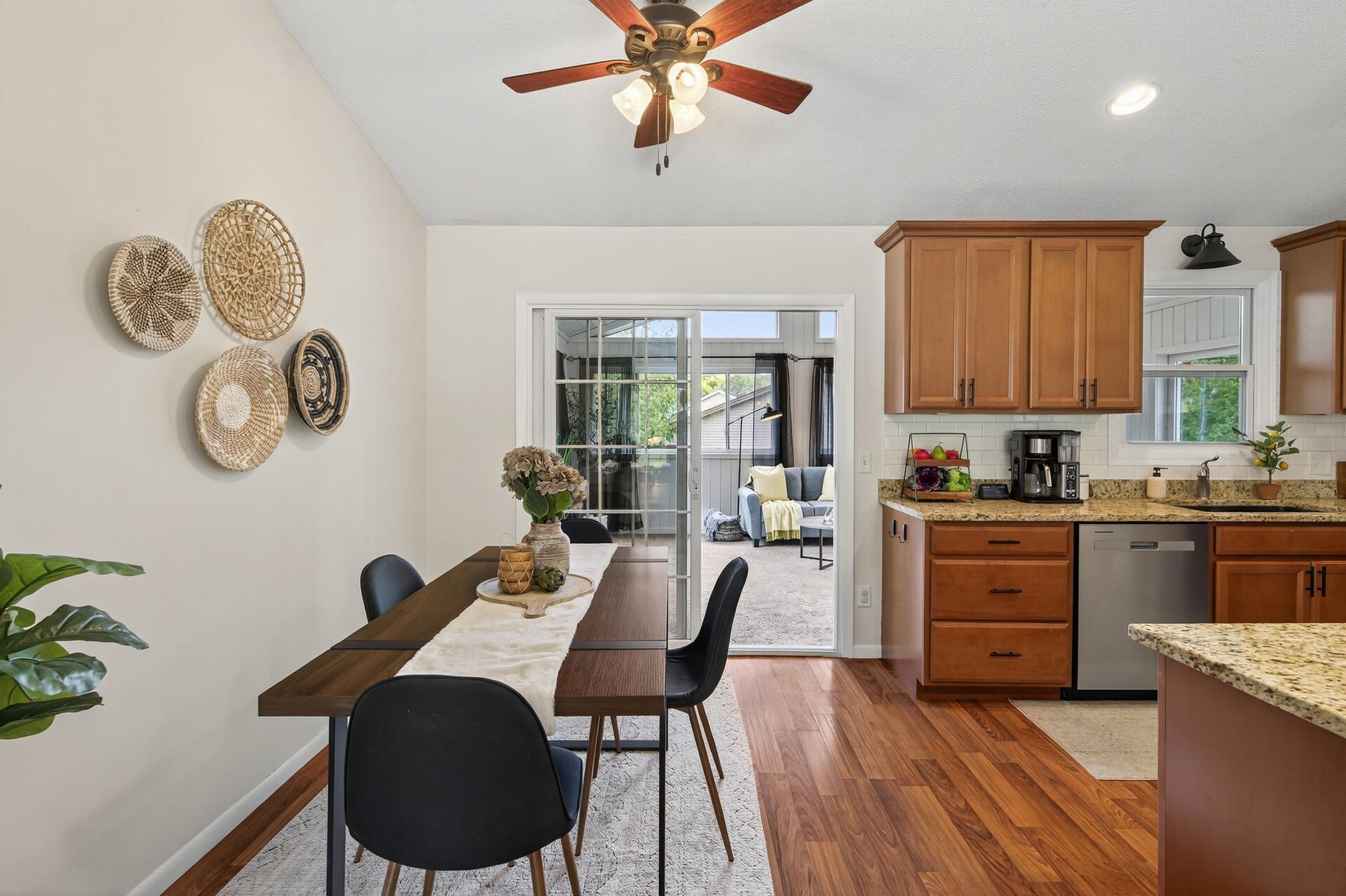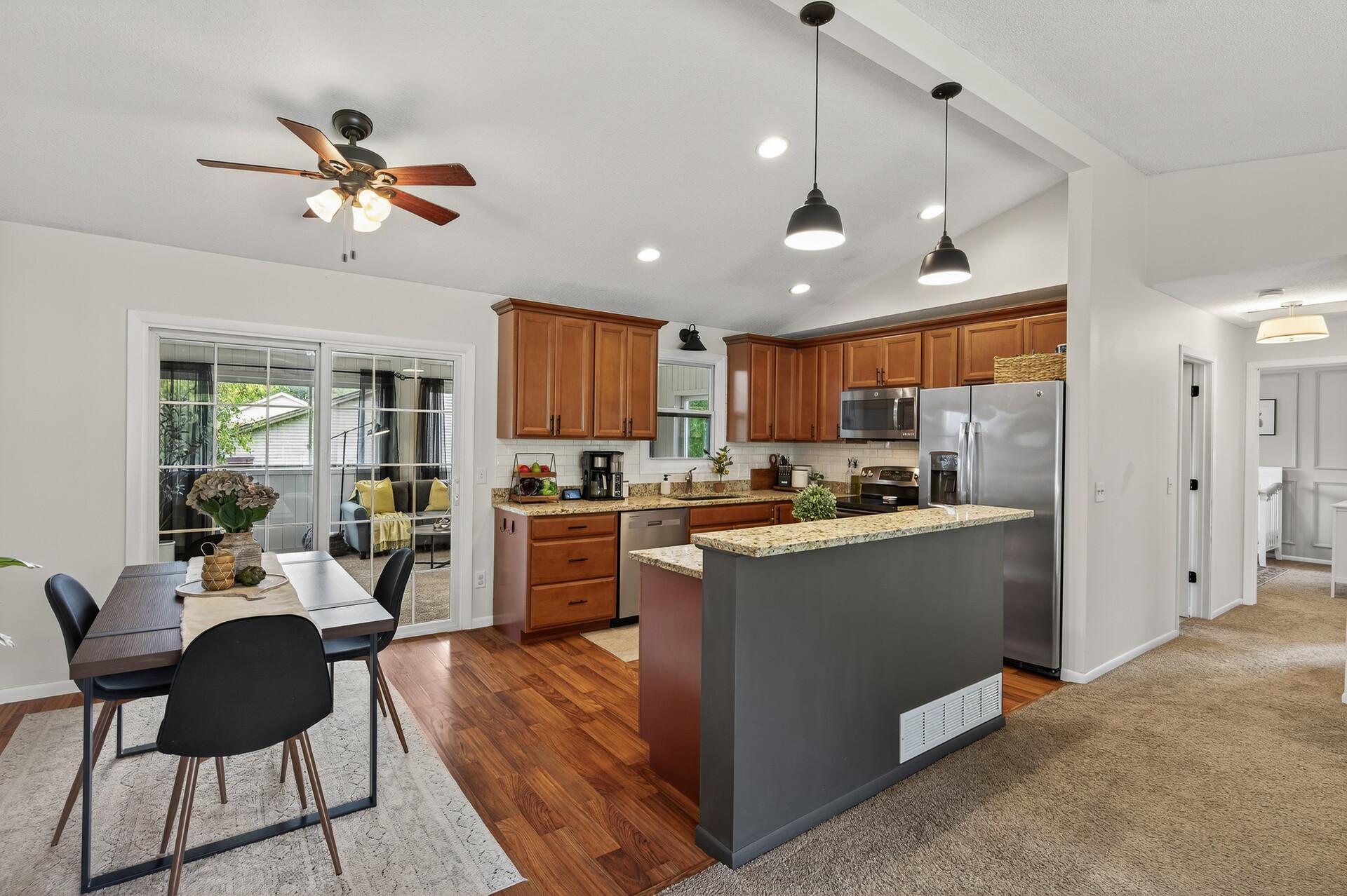 Welcome to this beautifully updated, turn-key open floor plan home on a quiet corner in the heart of Oakdale! This property offers both privacy and convenience. There is a park just down the street and all the best shopping and clinics are within a 10 min drive. The spacious 3-season room will be your happy place. It offers an abundance of natural light, a connection to nature and a large composite deck. The kitchen is stocked with abundant storage, stainless steel appliances, granite countertops, easy flow, and a great spot to pull up a chair at the breakfast bar with a connection to the spacious vaulted ceiling living room. The bright and sunny family room in the lower level provides space for everyone to have a space including room for exercise equipment to keep your fitness goals on track. With numerous updates, modern updates and a thoughtful design, this home is ready and for its next chapter. The friendly neighbors can't wait to meet you!