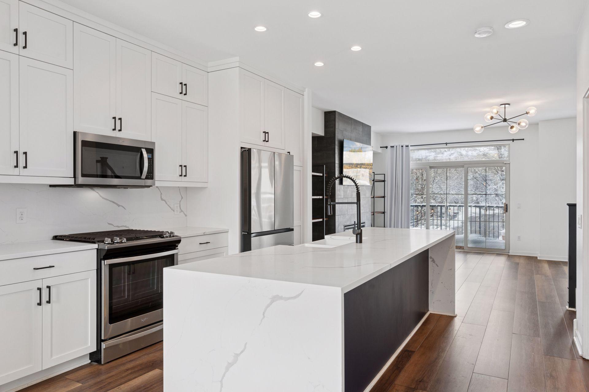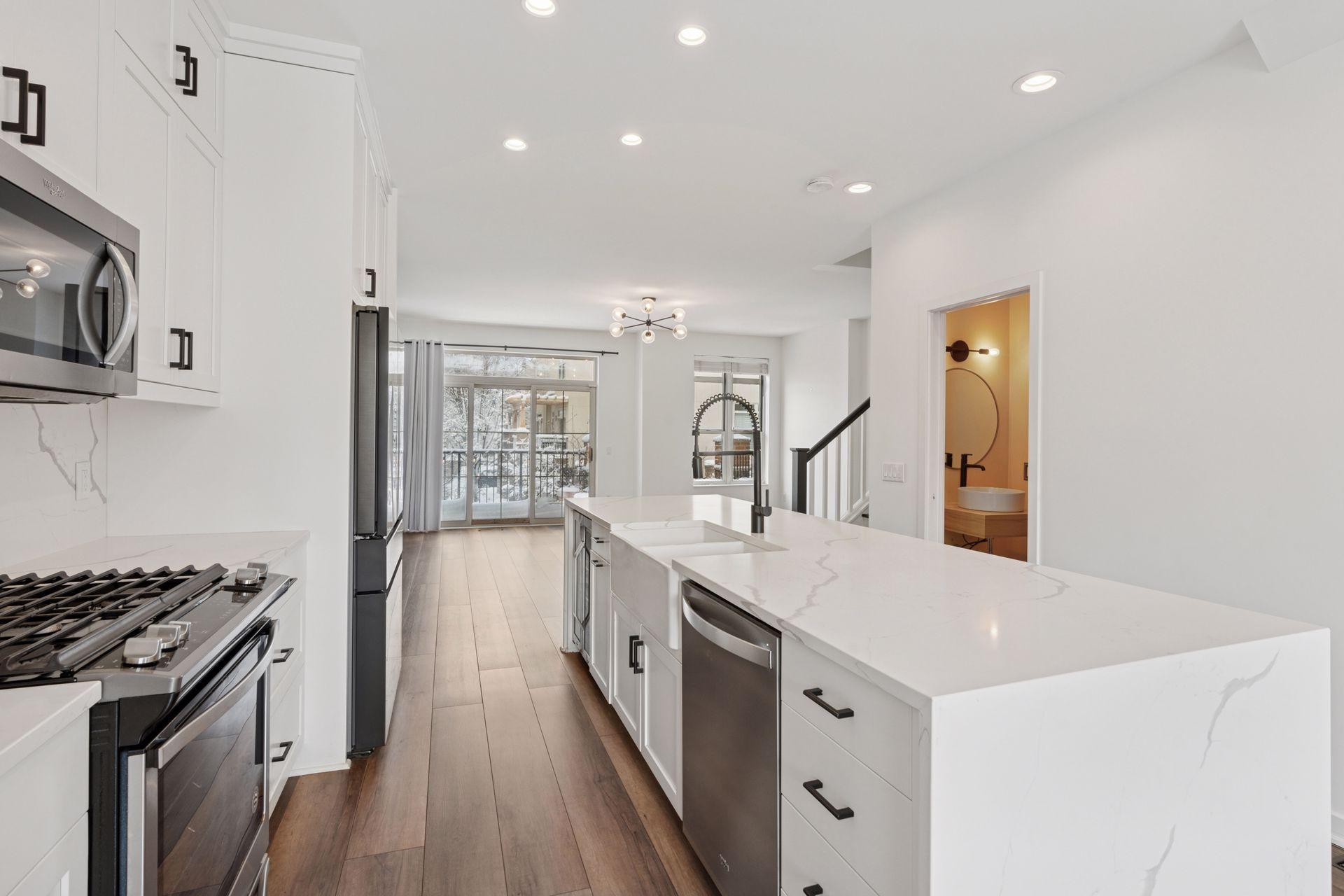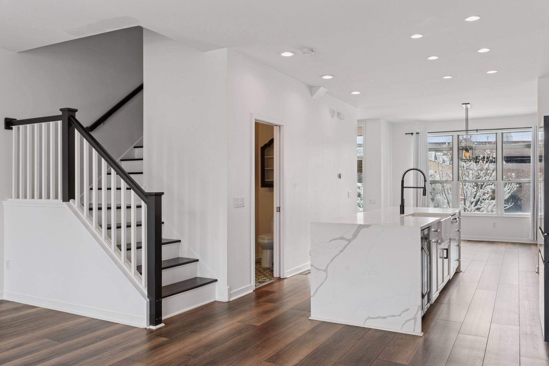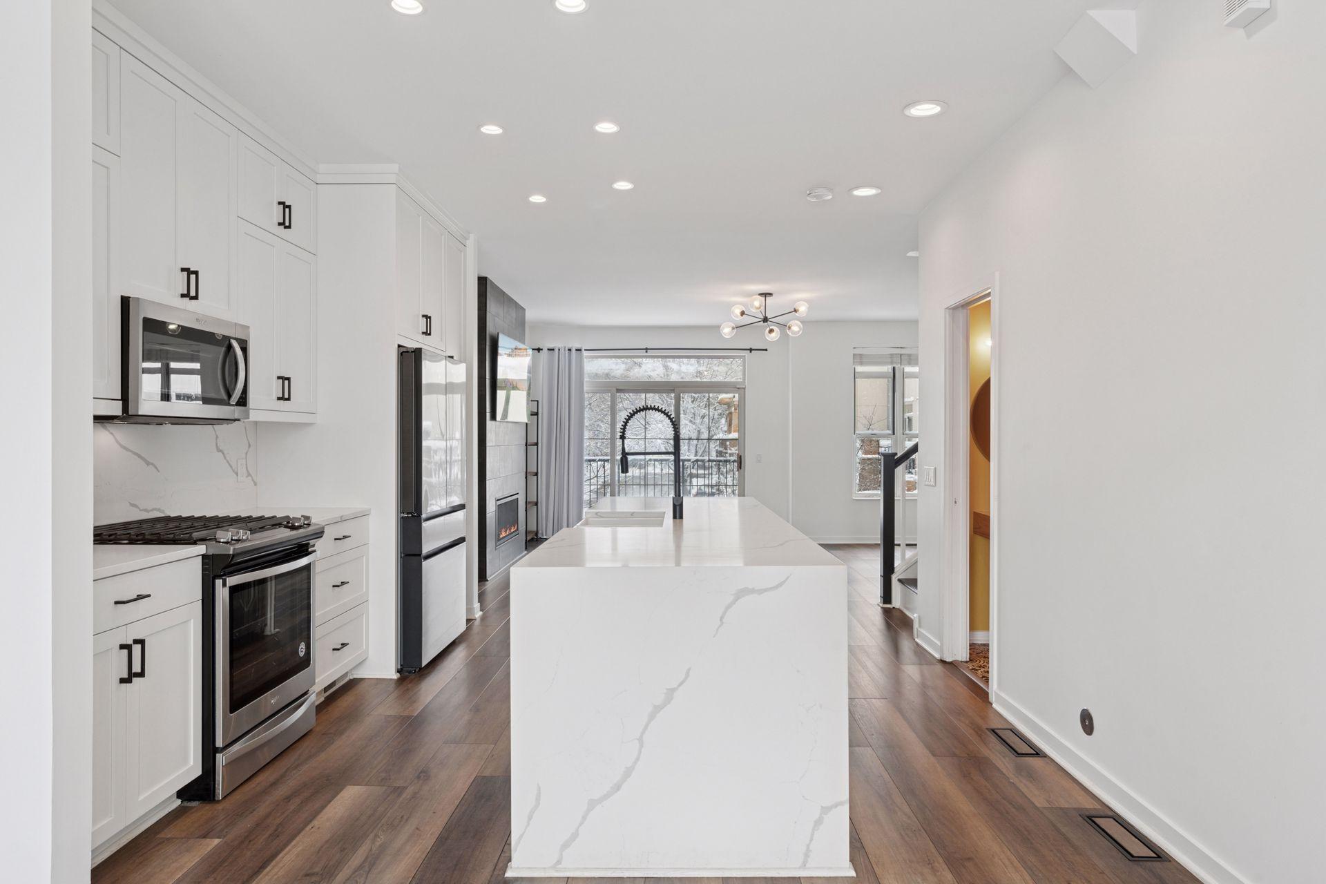 This meticulously renovated townhome, located in the highly sought-after St. Anthony Main neighborhood, is just one block from the picturesque Mississippi River trails and the historic Stone Arch Bridge. Steps to Lunds, Surdyks and so many attractions. Upon entry, you are greeted by new luxury flooring throughout the main and upper levels, complemented by a refreshed modern entryway and powder room. A newly tiled fireplace adds a sophisticated touch to the living area. The custom-designed, open-concept kitchen is truly exceptional, featuring a farmhouse sink, a spacious Quartz island with striking waterfall edges, and brand-new smart refrigerator and wine fridge. Upstairs, you will find two generously sized bedrooms, each with its own ensuite bathroom. The master suite offers a spacious walk-in closet with custom shelving, while the fully updated master bath serves as a private oasis, complete with a handcrafted custom vanity, high-end finishes, a freestanding soaker tub, and a rainfall shower. Additional highlights include a two-car garage with extra storage space, and the potential to convert one garage space into a third bedroom or den. This exceptionally updated townhome combines modern luxury with an unbeatable location, making it the perfect place to call home.