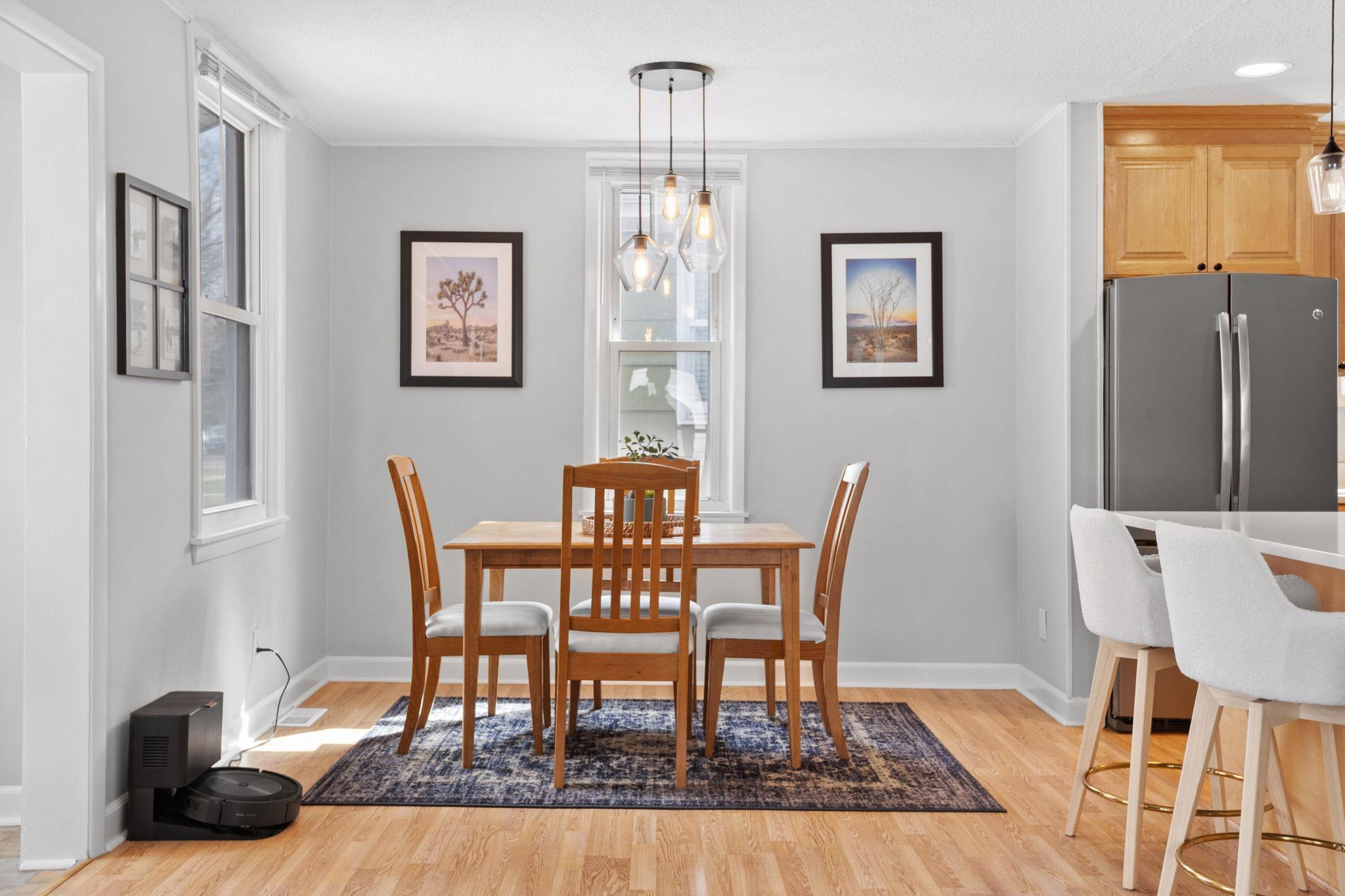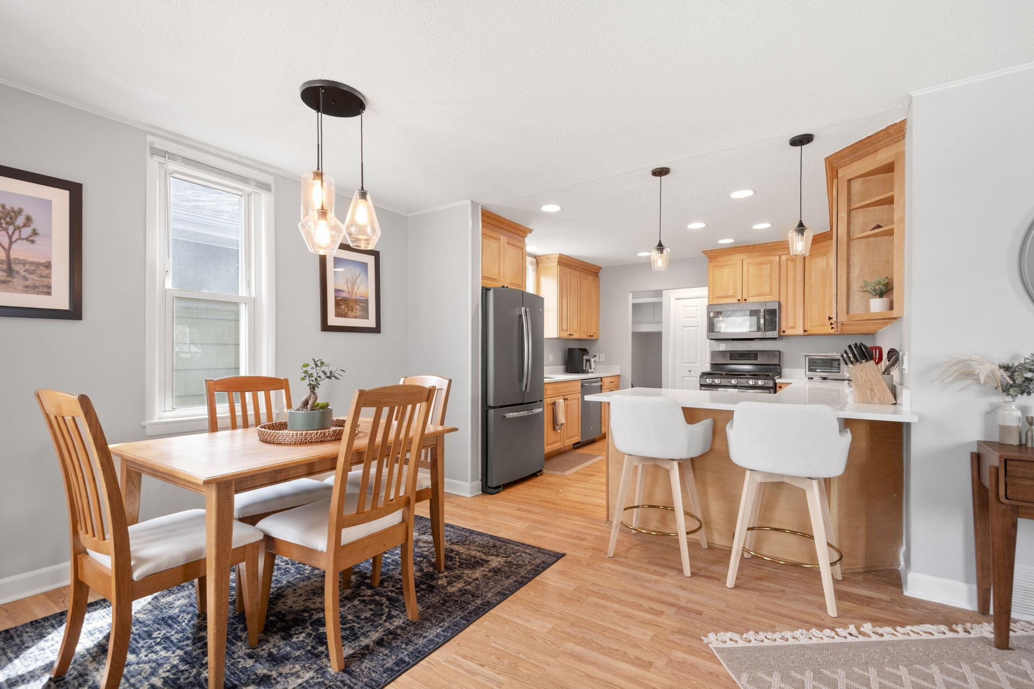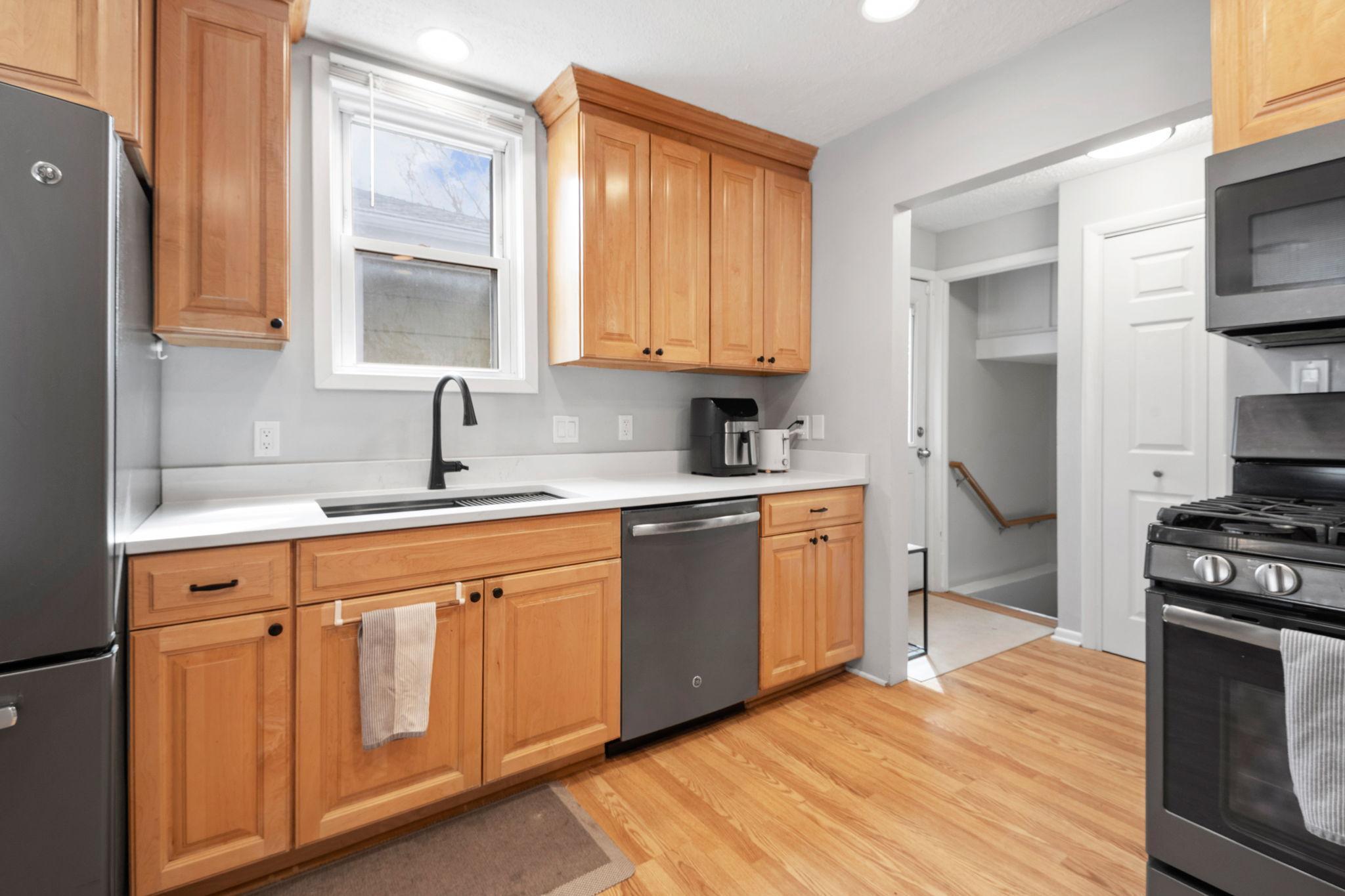 Welcome to this charming and bright home, thoughtfully updated to combine comfort and style! The spacious kitchen is a chef’s dream, featuring brand-new quartz countertops (2025), a deep stainless steel sink (2025), beautiful maple cabinets, sleek stainless steel appliances, and ample counter space for meal prep. The open main floor layout creates a warm and inviting atmosphere, perfect for hosting gatherings or enjoying everyday life. Two generously sized upstairs bedrooms with carpeting provide cozy retreats, complemented by a full, tastefully updated bathroom. The lower level expands your living options with a family room ideal for movie nights or play area, an additional bedroom, a versatile exercise or storage room, and a second full bathroom for convenience. Step outside to a thoughtfully landscaped yard offering privacy and tranquility, complete with a charming patio and fire pit—perfect for summer evenings and entertaining guests. And for peace of mind, enjoy the brand-new roof (2024) and siding (2024) that add curb appeal and long-lasting value. Its location could not be better: walking distance from quaint downtown Hopkins, a short drive from downtown Minneapolis, and centrally located between highways 494 and 169. This home has easy access to schools, shopping, and parks, including Maetzold Field next door. This spectacular property offers the perfect blend of comfort, functionality, and lifestyle.