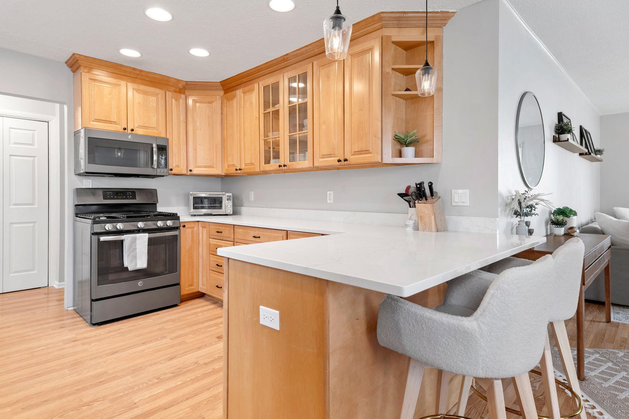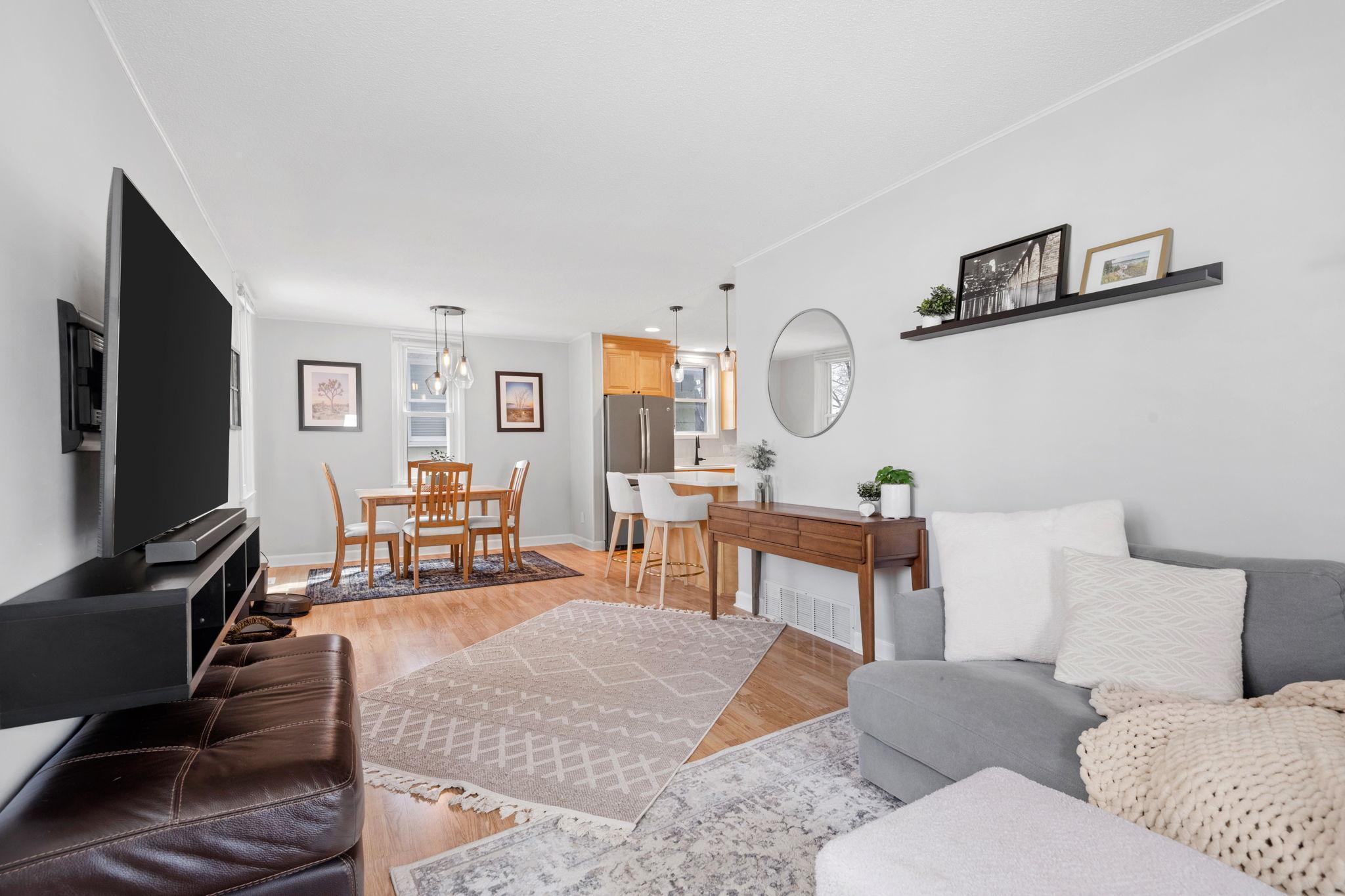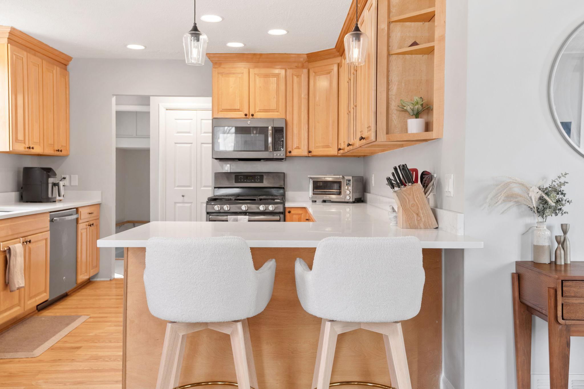 Welcome to this charming and bright home, thoughtfully updated to combine comfort and style! The spacious kitchen is a chef’s dream, featuring brand-new quartz countertops (2025), a deep stainless steel sink (2025), beautiful maple cabinets, sleek stainless steel appliances, and ample counter space for meal prep. The open main floor layout creates a warm and inviting atmosphere, perfect for hosting gatherings or enjoying everyday life. Two generously sized upstairs bedrooms with carpeting provide cozy retreats, complemented by a full, tastefully updated bathroom. The lower level expands your living options with a family room ideal for movie nights or play area, an additional bedroom, a versatile exercise or storage room, and a second full bathroom for convenience. Step outside to a thoughtfully landscaped yard offering privacy and tranquility, complete with a charming patio and fire pit—perfect for summer evenings and entertaining guests. And for peace of mind, enjoy the brand-new roof (2024) and siding (2024) that add curb appeal and long-lasting value. Its location could not be better: walking distance from quaint downtown Hopkins, a short drive from downtown Minneapolis, and centrally located between highways 494 and 169. This home has easy access to schools, shopping, and parks, including Maetzold Field next door. This spectacular property offers the perfect blend of comfort, functionality, and lifestyle.