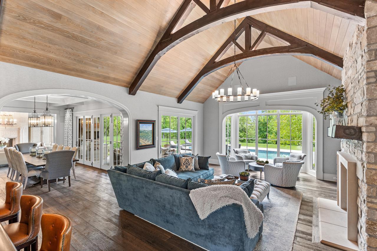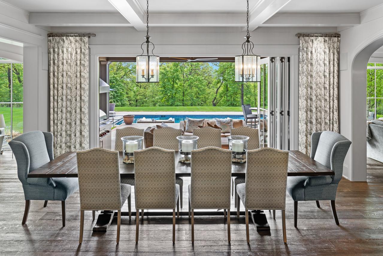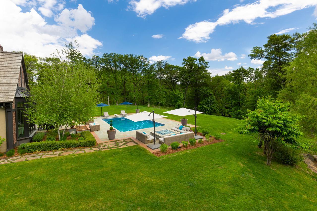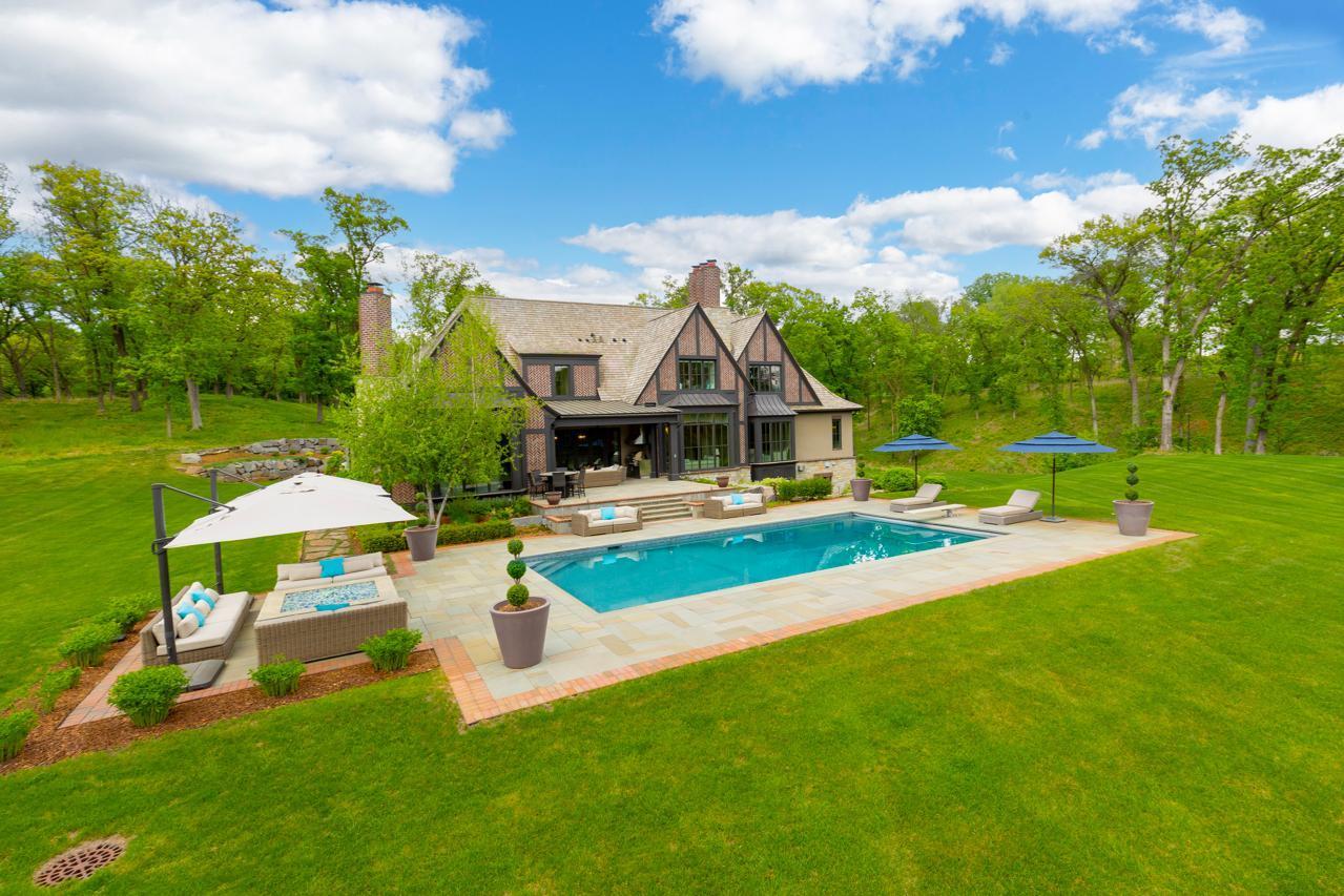 Exquisite Sunfish Lake estate thoughtfully designed by Peter Eskuche and beautifully built by Nor-Son! This breathtaking residence offers an open flowing floorplan showcasing endless nature views at every turn. Enjoy the great room with vaulted ceiling + wood beam accents; spacious gourmet kitchen with dining area & wall of folding glass doors that open to the porch (phantom screens + heaters) and out to the pool. The prep kitchen is ideal for entertaining with additional appliances and window that opens to the bar and great room! Main-level primary suite with spa-like bath (steam shower, heated floor, fireplace) and upper-level offering three junior suites. The lower-level features an additional guest suite; theater area; wet bar; exercise room and sport court! Tranquil backyard retreat with saltwater pool and built-in firepit all surrounded by soaring mature trees. Additional features: Heated extra deep 3-car garage; space for a golf simulator and whole house generator. The carriage house offers a family room, game area, beverage bar, fireplace, ½ bath and additional 4-car heated garage! Private 10.5 acre setting adjacent to Musser Park for additional privacy. Truly a must-see!