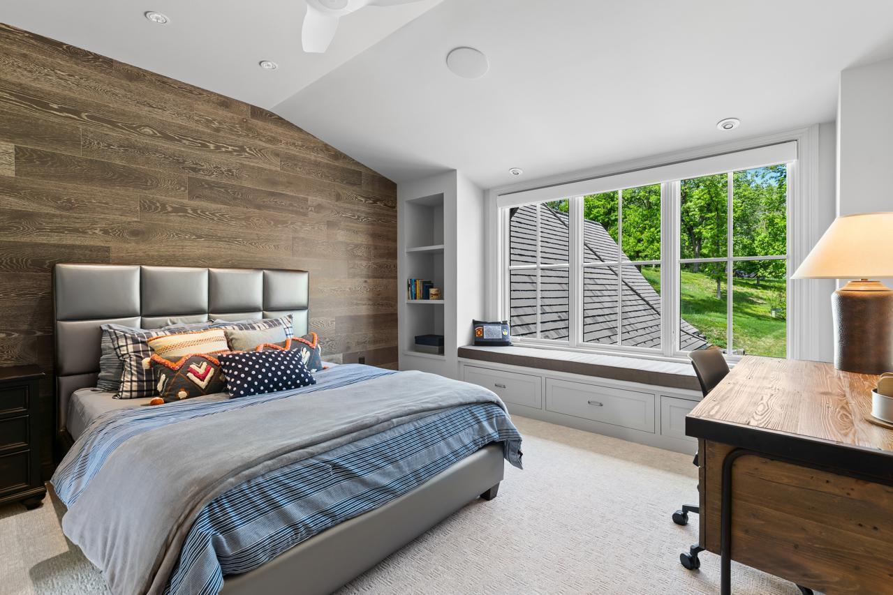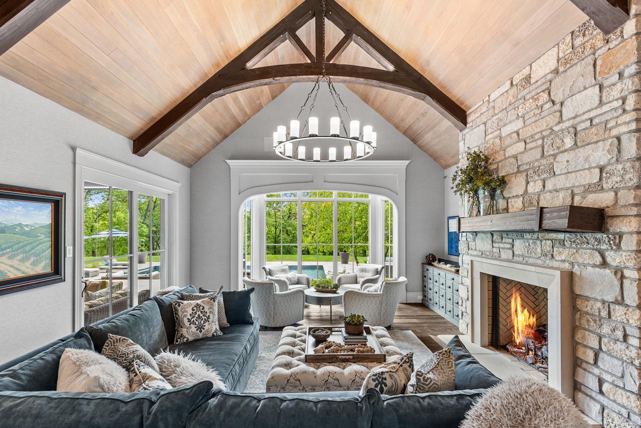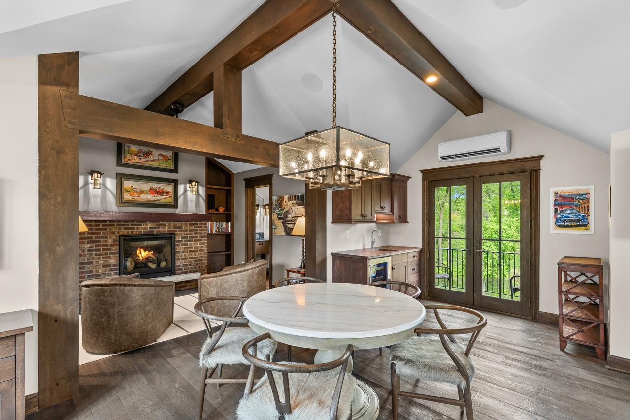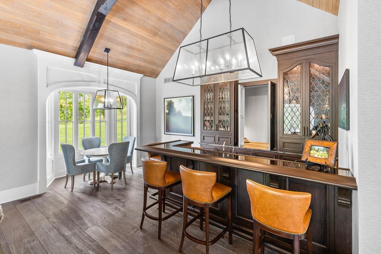 Exquisite Sunfish Lake estate thoughtfully designed by Peter Eskuche and beautifully built by Nor-Son! This breathtaking residence offers an open flowing floorplan showcasing endless nature views at every turn. Enjoy the great room with vaulted ceiling + wood beam accents; spacious gourmet kitchen with dining area & wall of folding glass doors that open to the porch (phantom screens + heaters) and out to the pool. The prep kitchen is ideal for entertaining with additional appliances and window that opens to the bar and great room! Main-level primary suite with spa-like bath (steam shower, heated floor, fireplace) and upper-level offering three junior suites. The lower-level features an additional guest suite; theater area; wet bar; exercise room and sport court! Tranquil backyard retreat with saltwater pool and built-in firepit all surrounded by soaring mature trees. Additional features: Heated extra deep 3-car garage; space for a golf simulator and whole house generator. The carriage house offers a family room, game area, beverage bar, fireplace, ½ bath and additional 4-car heated garage! Private 10.5 acre setting adjacent to Musser Park for additional privacy. Truly a must-see!