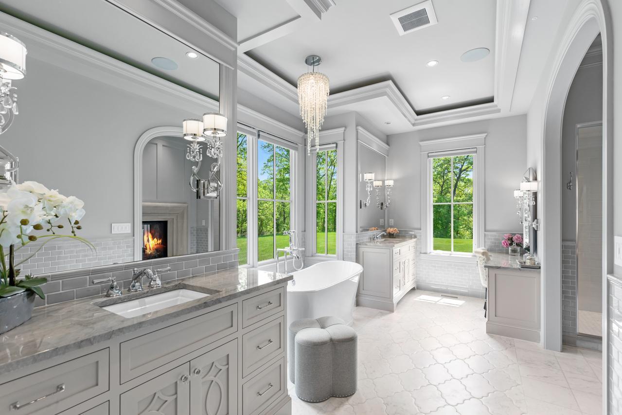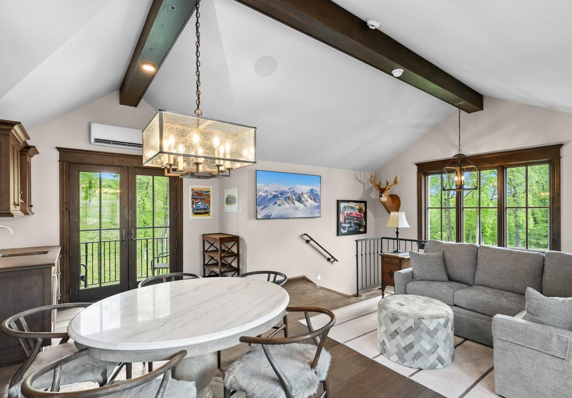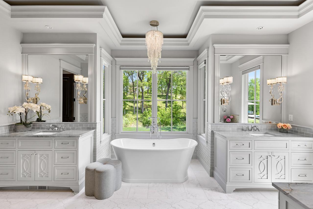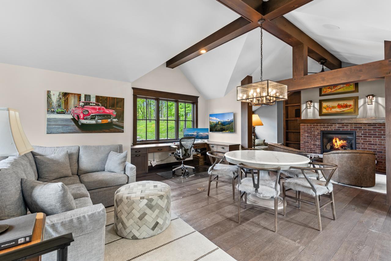 Exquisite Sunfish Lake estate thoughtfully designed by Peter Eskuche and beautifully built by Nor-Son! This breathtaking residence offers an open flowing floorplan showcasing endless nature views at every turn. Enjoy the great room with vaulted ceiling + wood beam accents; spacious gourmet kitchen with dining area & wall of folding glass doors that open to the porch (phantom screens + heaters) and out to the pool. The prep kitchen is ideal for entertaining with additional appliances and window that opens to the bar and great room! Main-level primary suite with spa-like bath (steam shower, heated floor, fireplace) and upper-level offering three junior suites. The lower-level features an additional guest suite; theater area; wet bar; exercise room and sport court! Tranquil backyard retreat with saltwater pool and built-in firepit all surrounded by soaring mature trees. Additional features: Heated extra deep 3-car garage; space for a golf simulator and whole house generator. The carriage house offers a family room, game area, beverage bar, fireplace, ½ bath and additional 4-car heated garage! Private 10.5 acre setting adjacent to Musser Park for additional privacy. Truly a must-see!